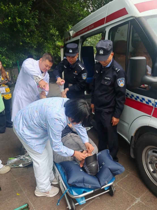 安保之外,民警辅警还积极为参赛选手和观众提供服务保障,俨然一个贴心的“后勤队”。他们耐心提供赛事信息咨询、清晰指引路线,为奔跑的身影送上鼓励与支持。比赛中,一名选手突然抽筋倒地,正在执勤的四公里派出所民警迅速反应,协同医护人员对其进行救治,帮助其尽快恢复状态。行动虽小,但暖人心,南岸公安民警辅警们用点滴瞬间的温暖铸就守护之“盾”。
