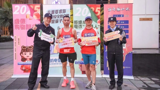 在起点、补给站、赛道外,南岸公安巧妙地将反诈宣传融入赛事全过程,醒目的展板、“营养”丰富的传单,向参赛选手和观众传递着反诈知识。“捂紧钱袋子”的反诈意识伴随着奔跑的节奏,源源不断地播撒到市民朋友心间。轻松愉悦的宣传方式,让反诈知识如补给般“能量满满”。参赛选手王女士感慨:“跑一场马,学一程防诈,这样的体验既特别又实用。”