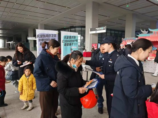 2月9日,南岸区公安分局走进重庆东站,开展了以“平安春运•交警同行”为主题的安全宣传活动,通过写新春对联、送福字、套圈抽奖等接地气、聚人气的宣传形式让交通安全知识、反诈知识入脑入心。