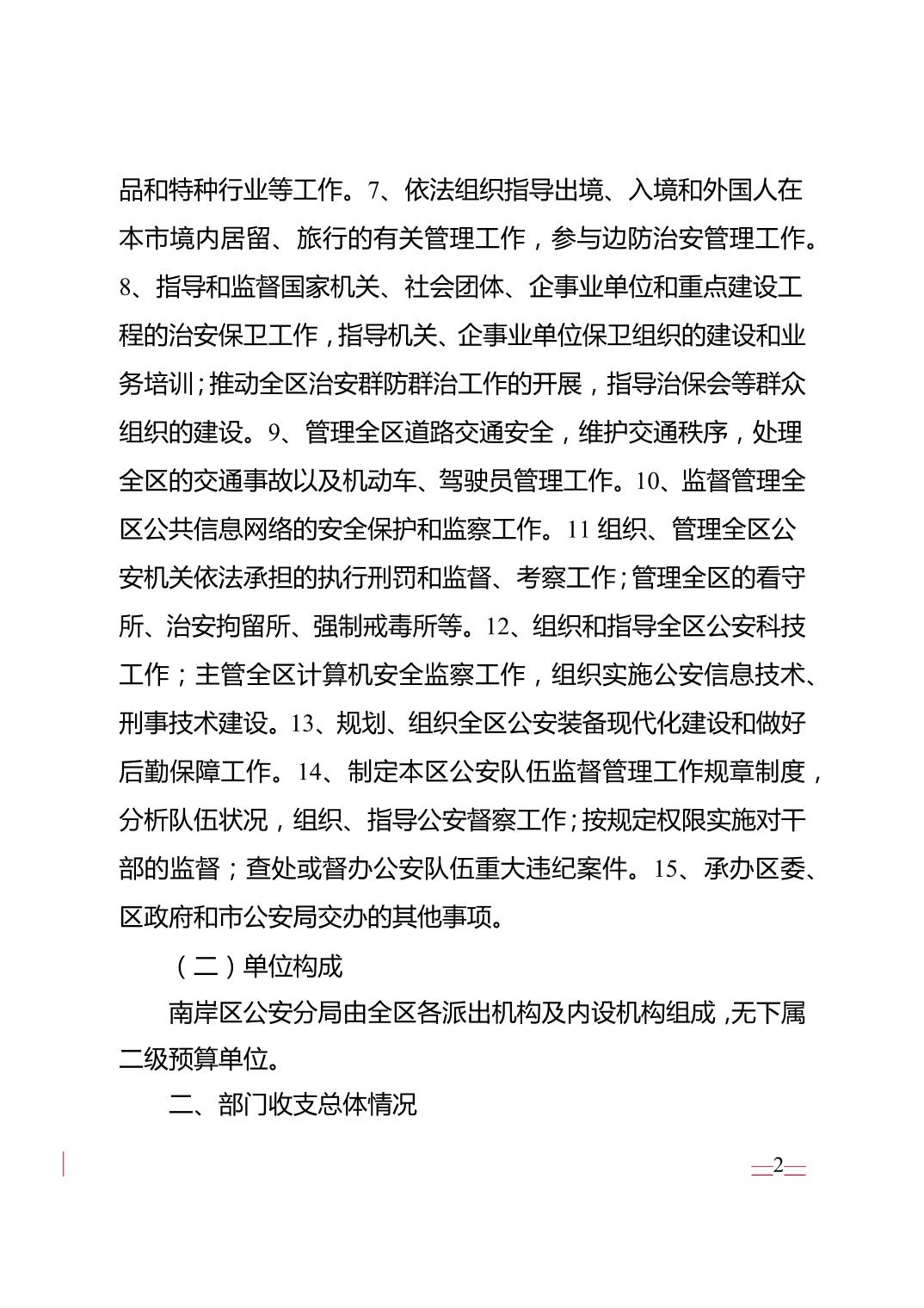 重庆市公安局南岸区分局2026年部门预算情况说明