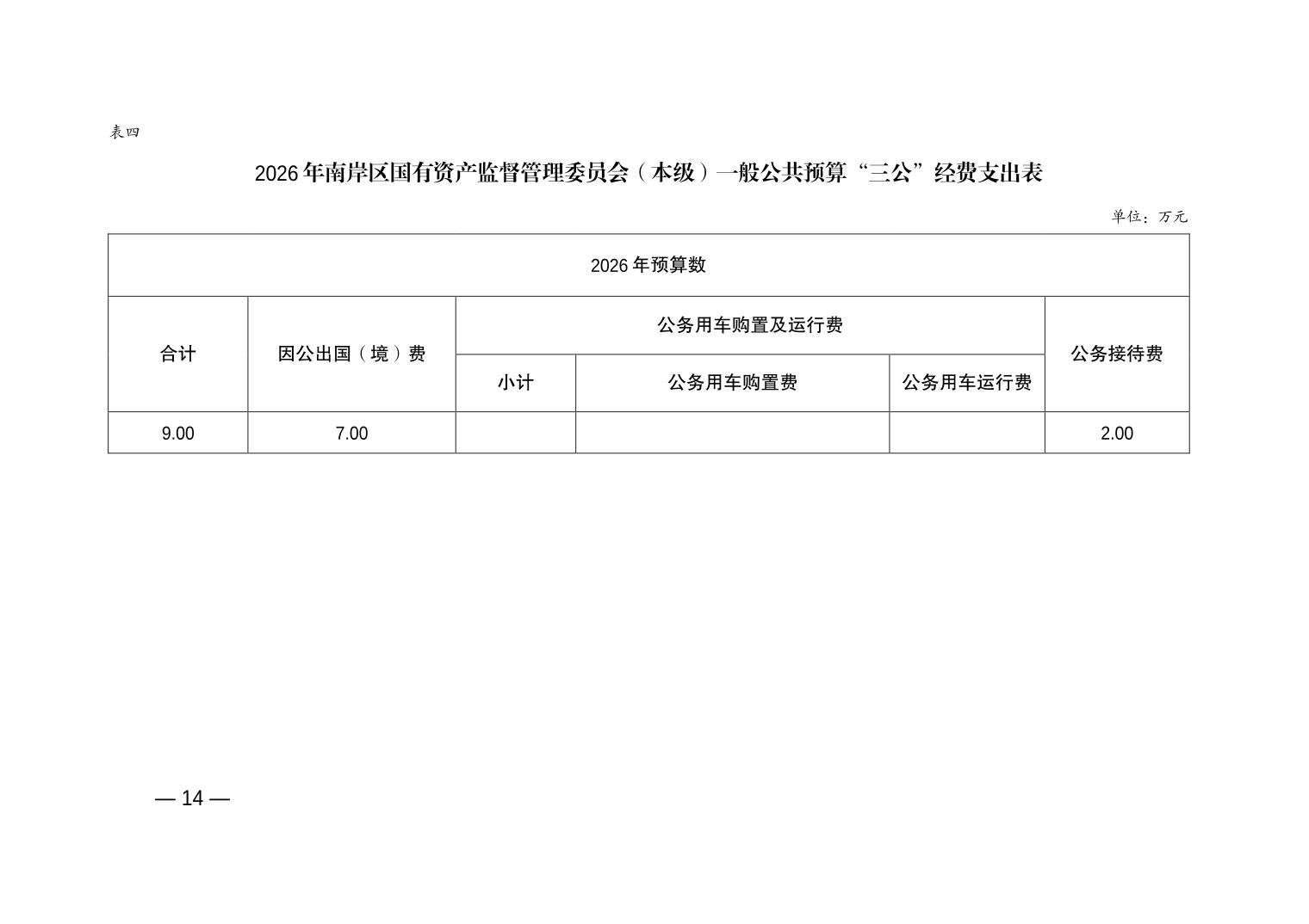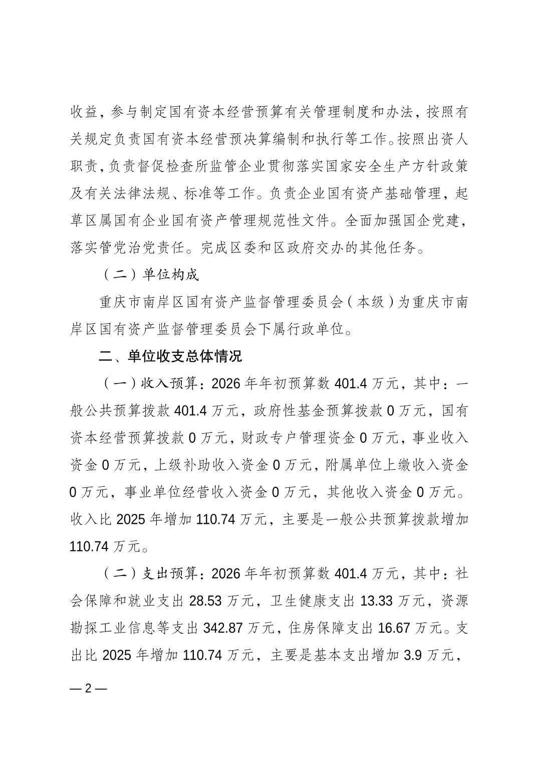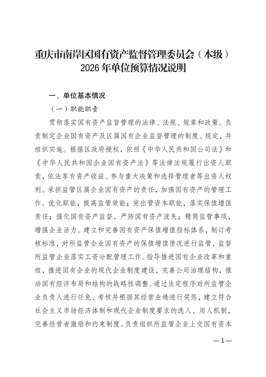 重庆市南岸区国有资产监督管理委员会(本级)2026年单位预算情况说明
