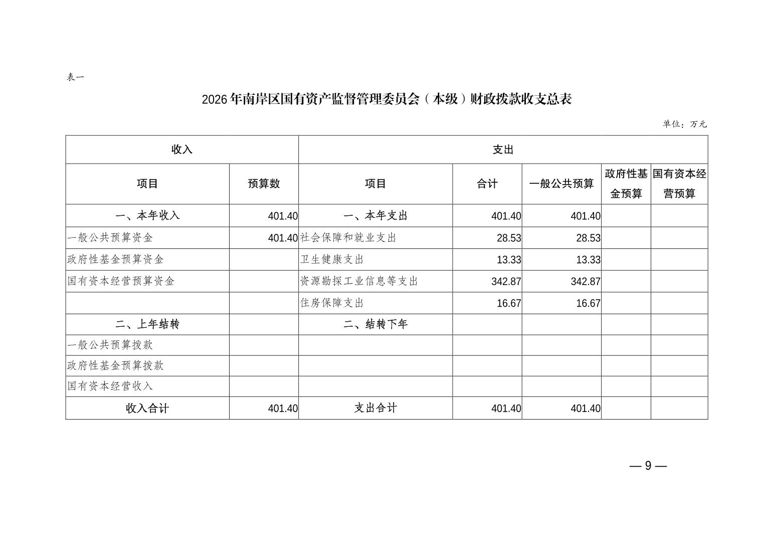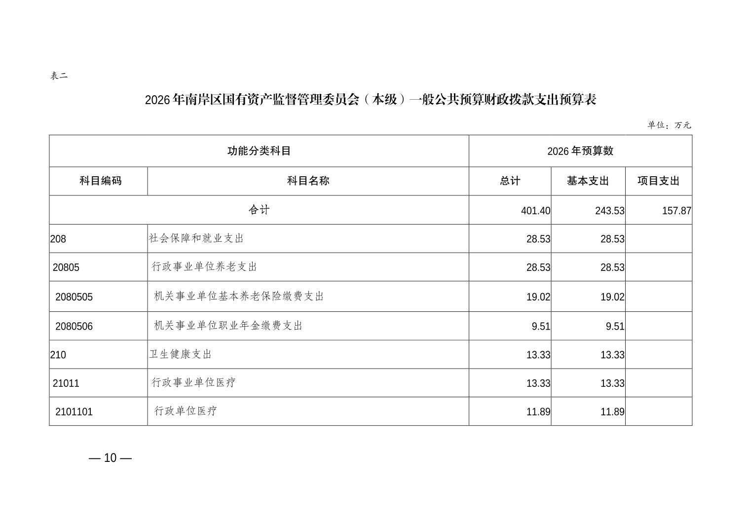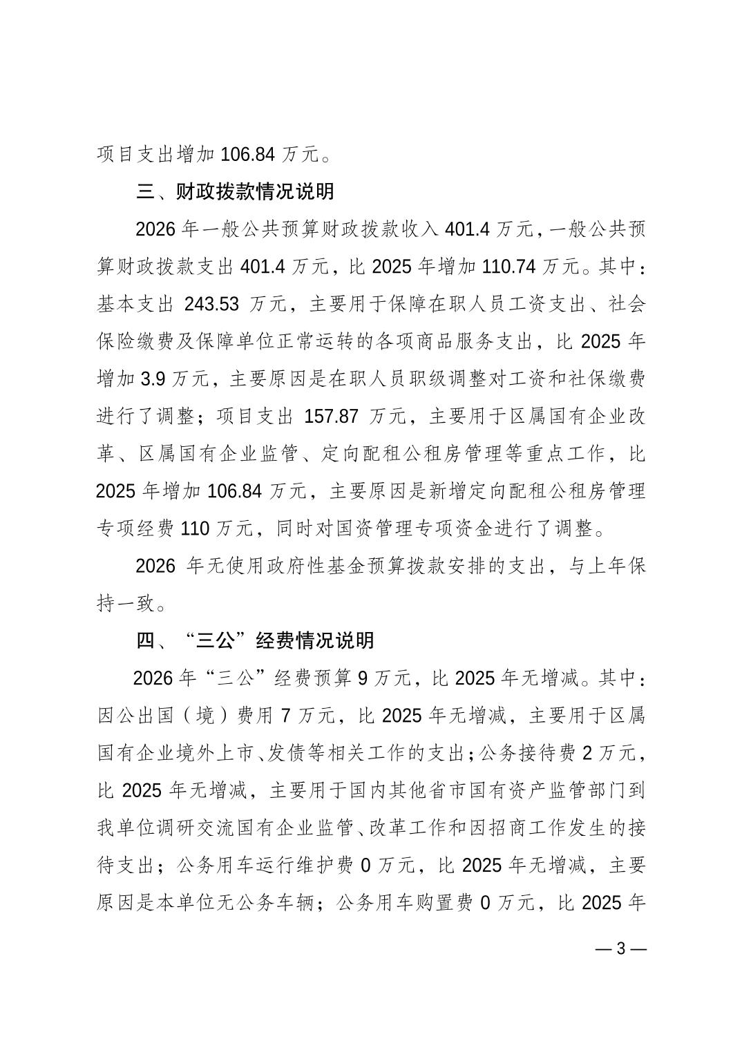 重庆市南岸区国有资产监督管理委员会(本级)2026年单位预算情况说明
