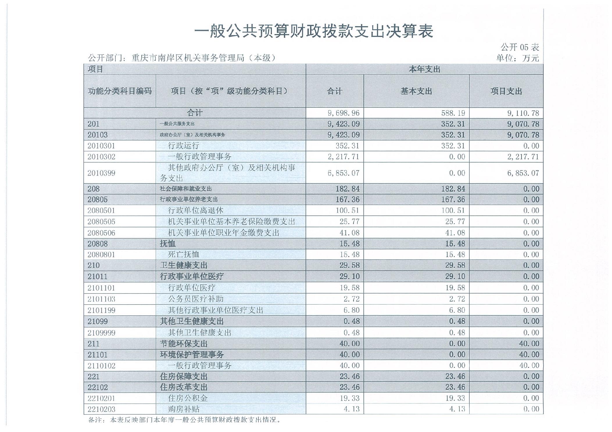 重庆市南岸区机关事务管理局(本级) 2022年决算公开报告
