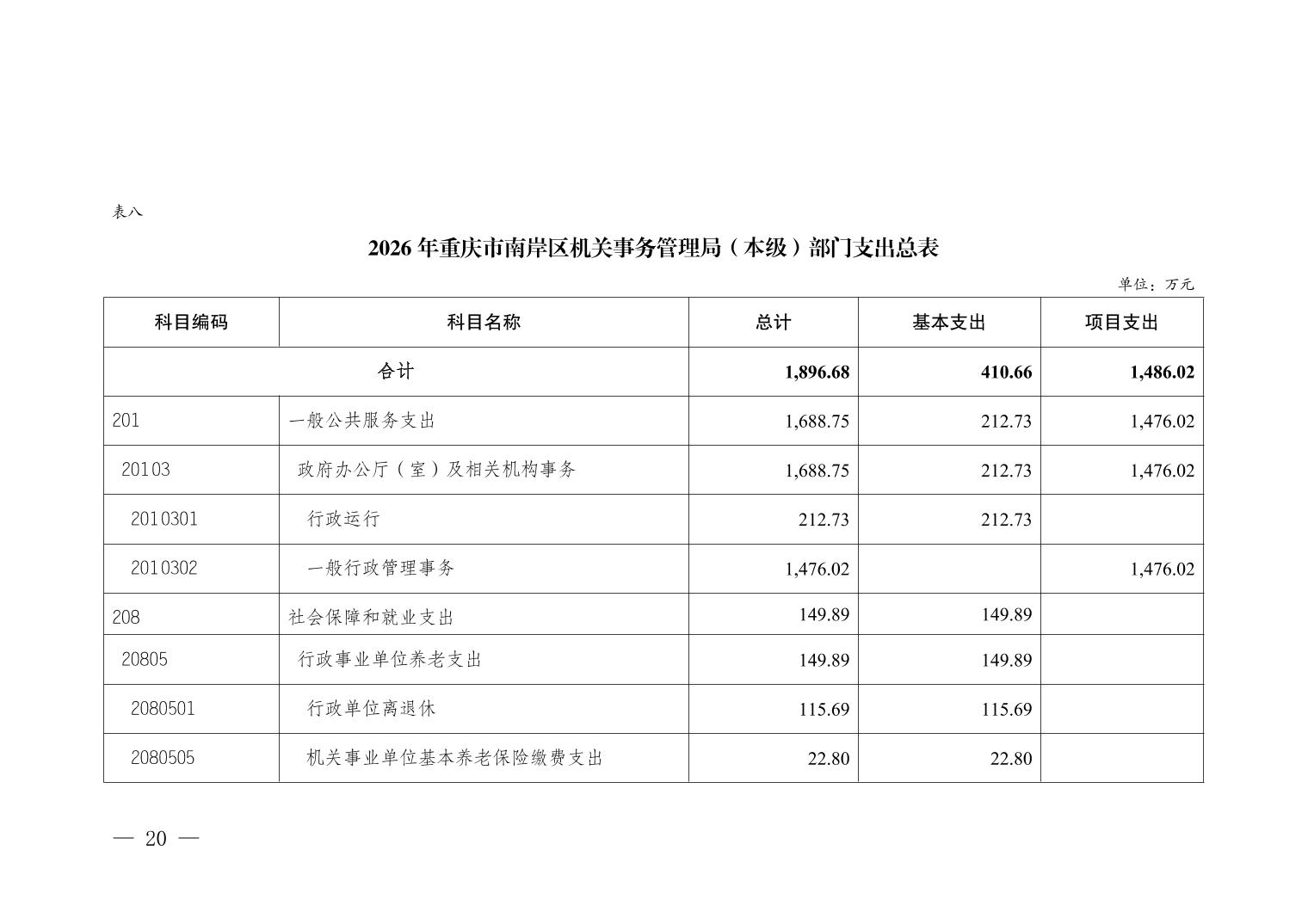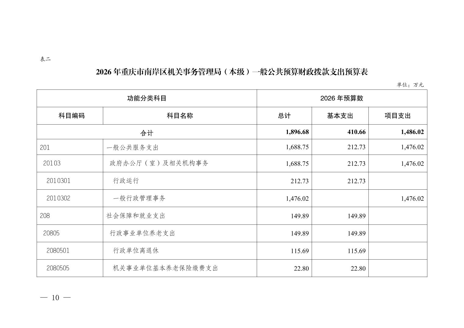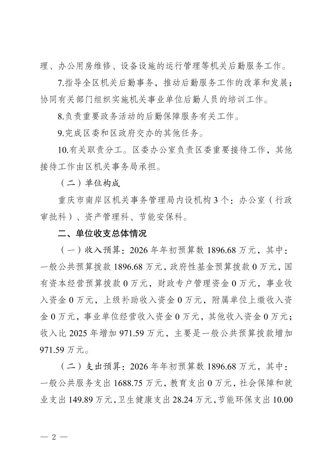 重庆市南岸区机关事务管理局(本级)2026年单位预算情况说明