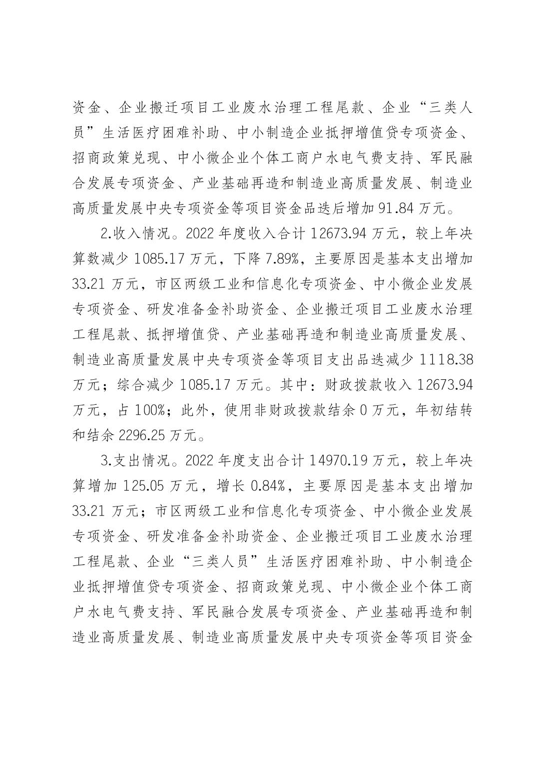 重庆市南岸区经济和信息化委员会2022年度部门决算情况说明