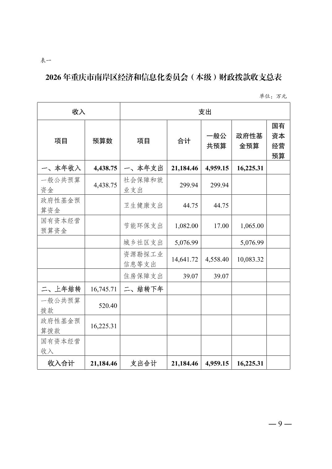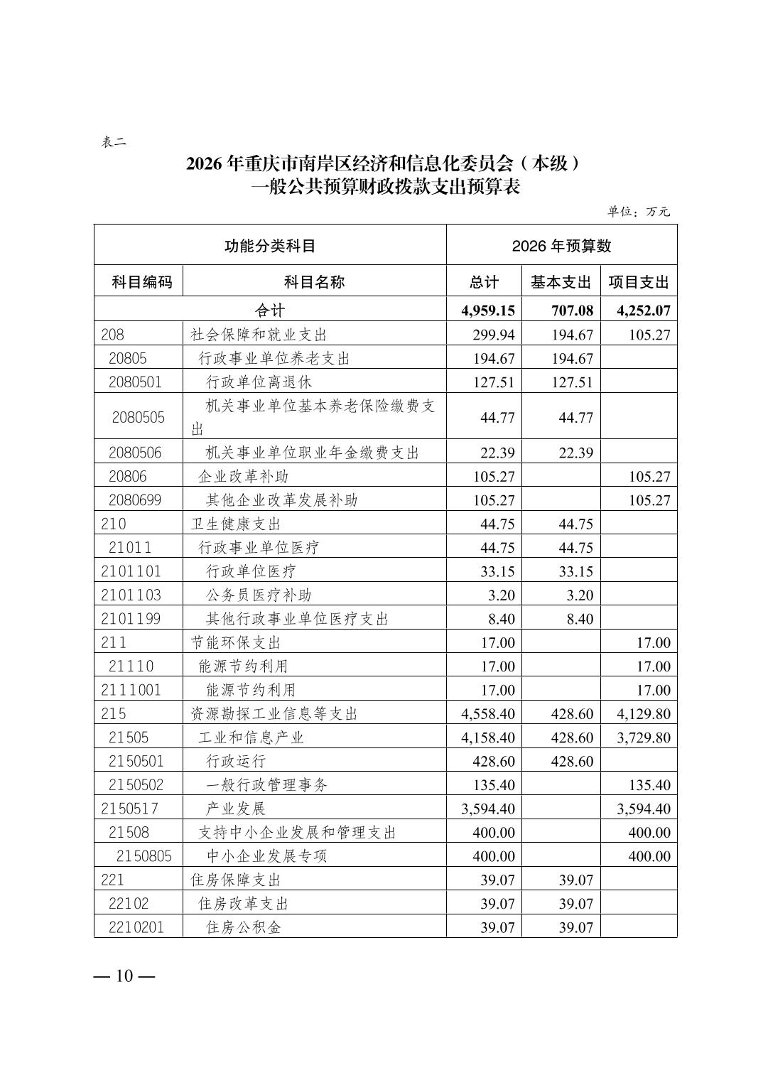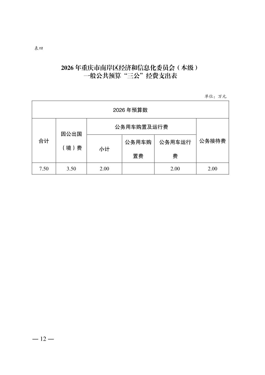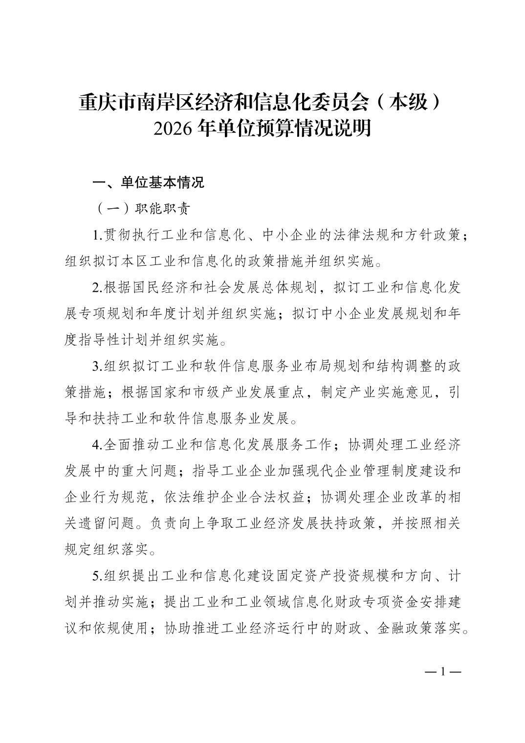 重庆市南岸区经济和信息化委员会(本级)2026年单位预算情况说明