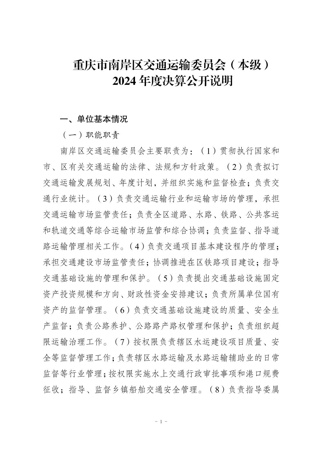 重庆市南岸区交通运输委员会(本级)2024年度单位决算情况说明