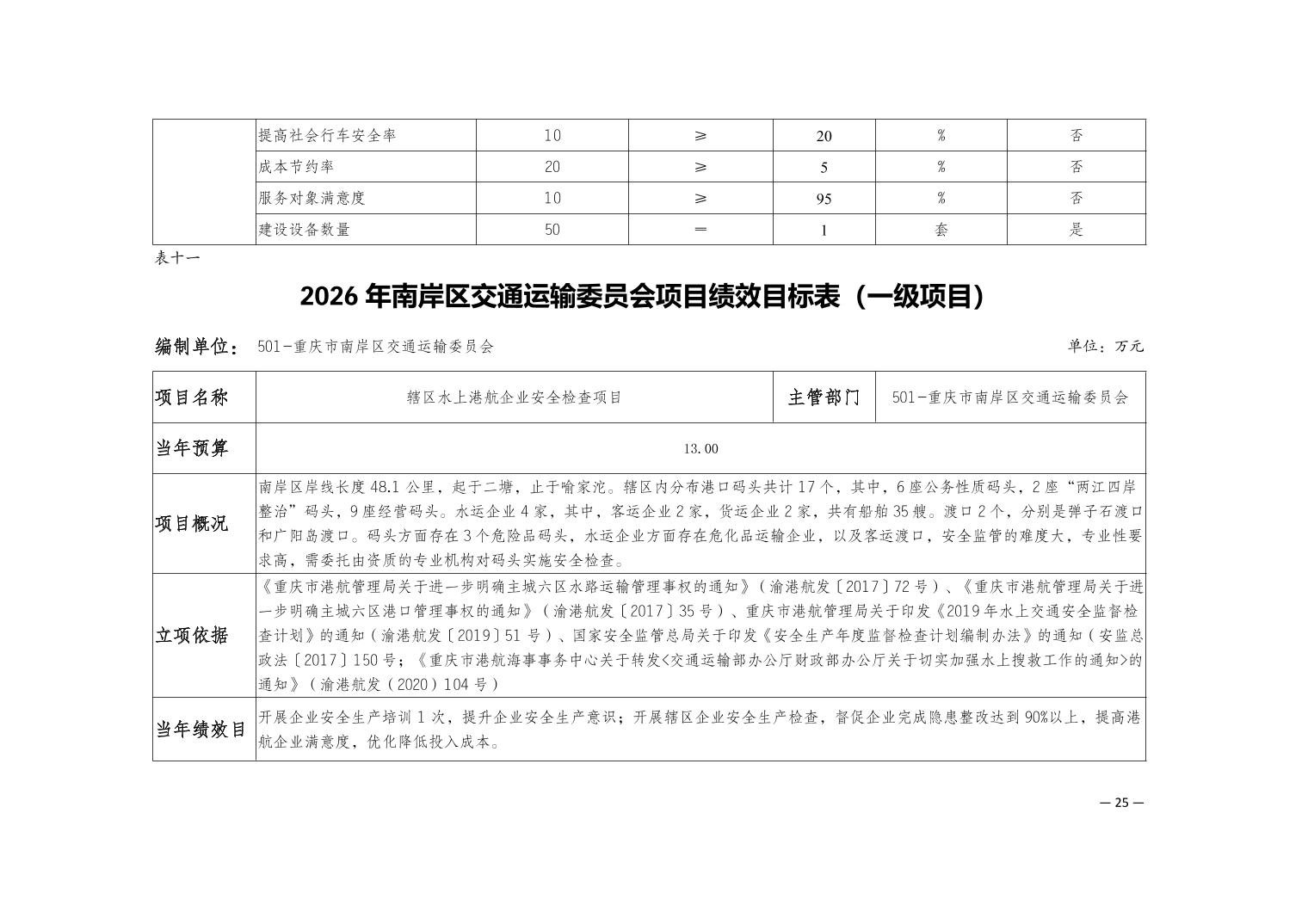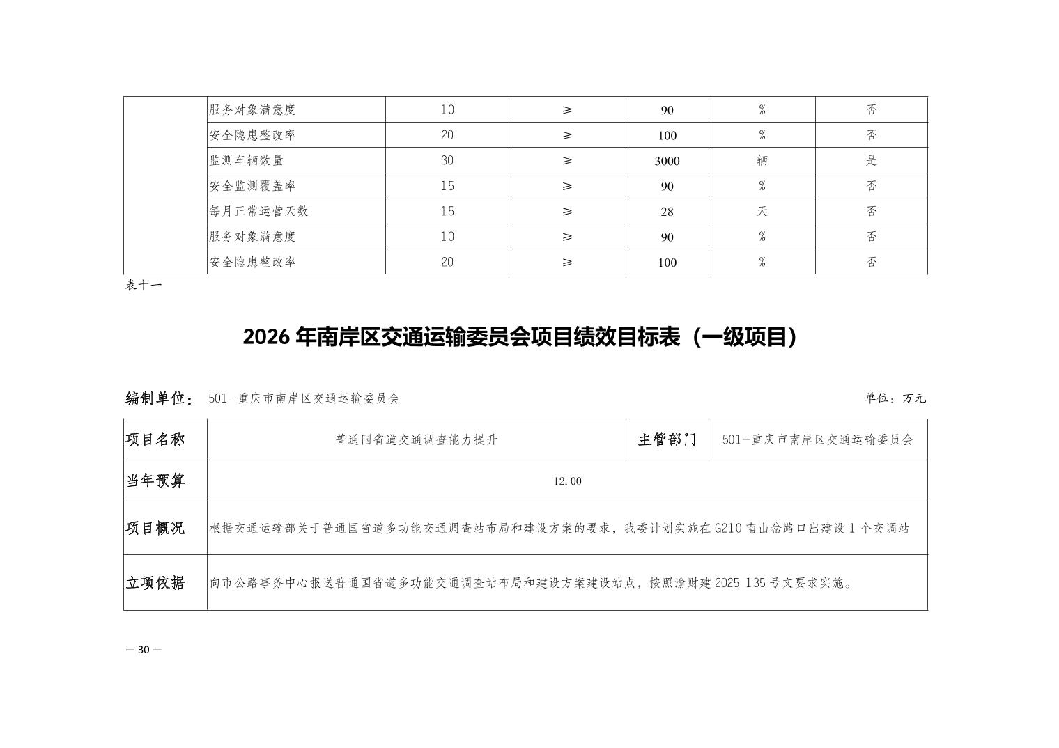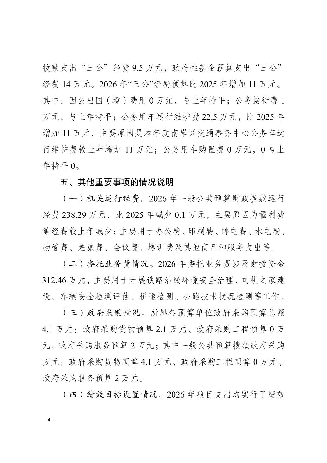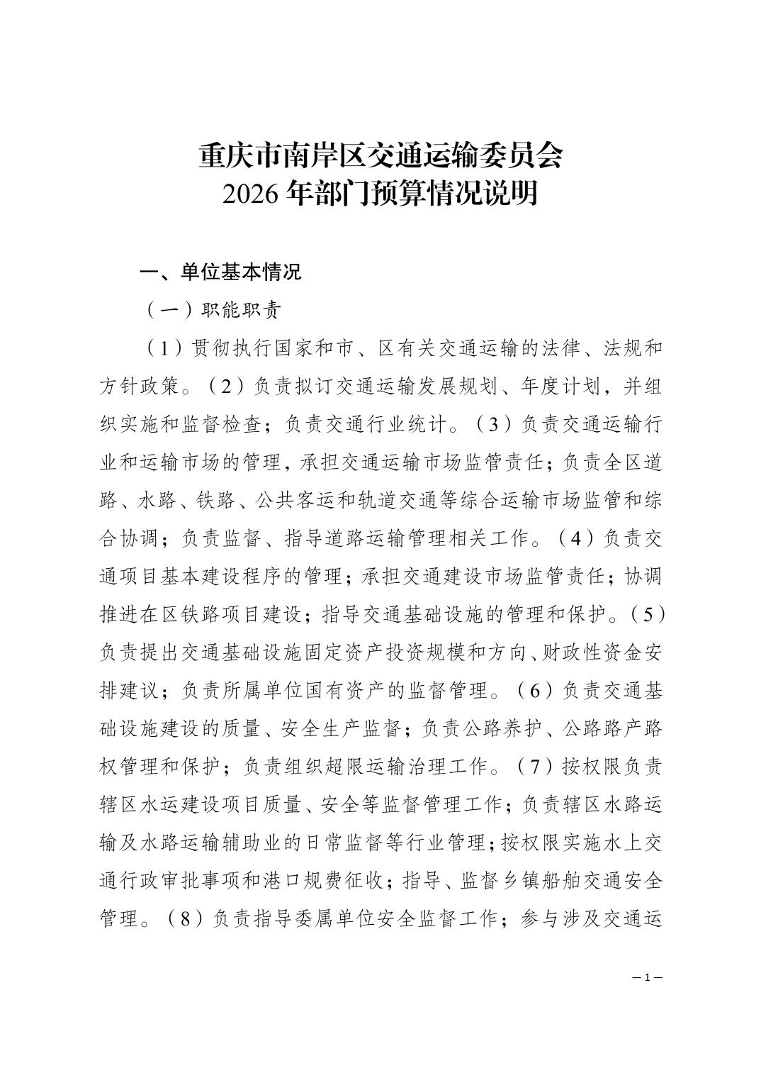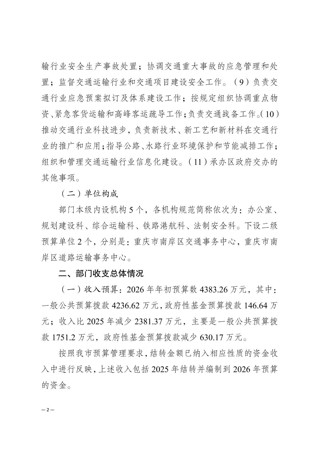 重庆市南岸区交通运输委员会2026年部门预算情况说明