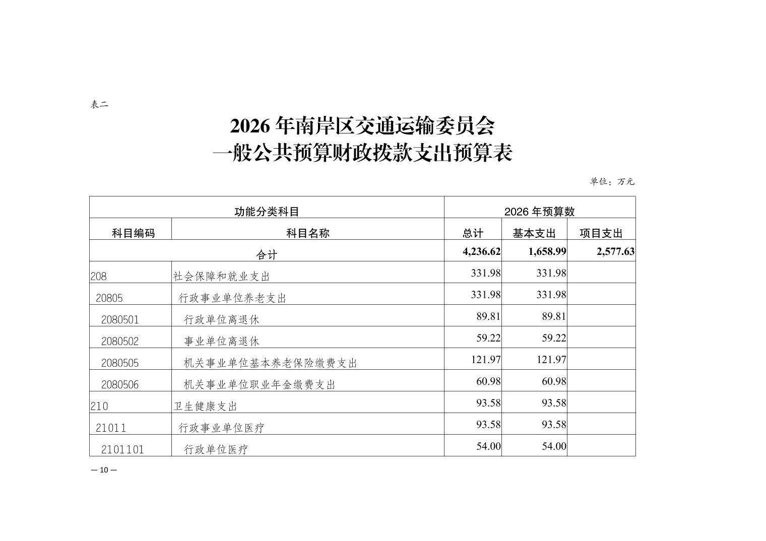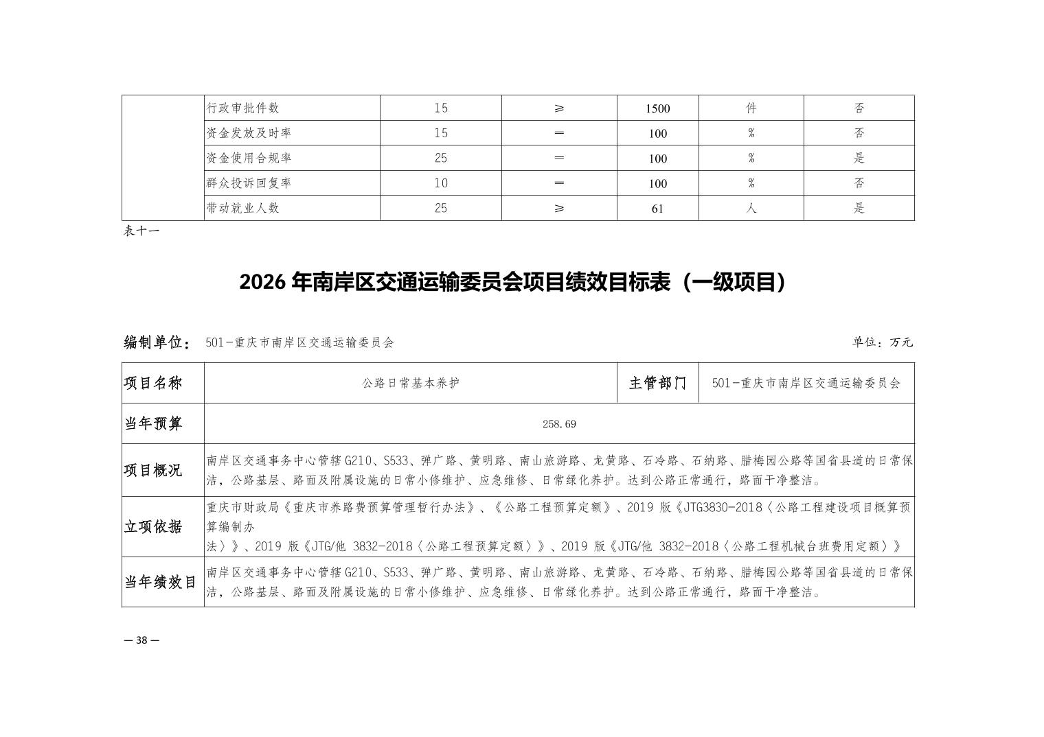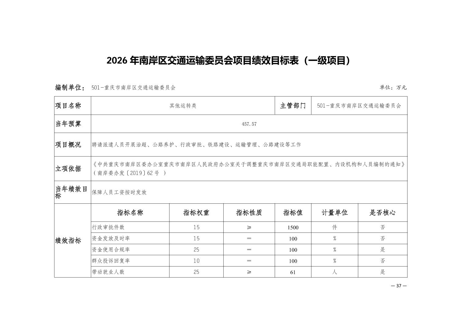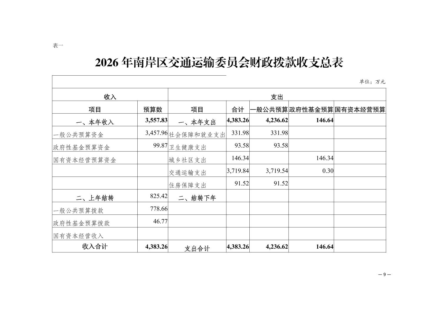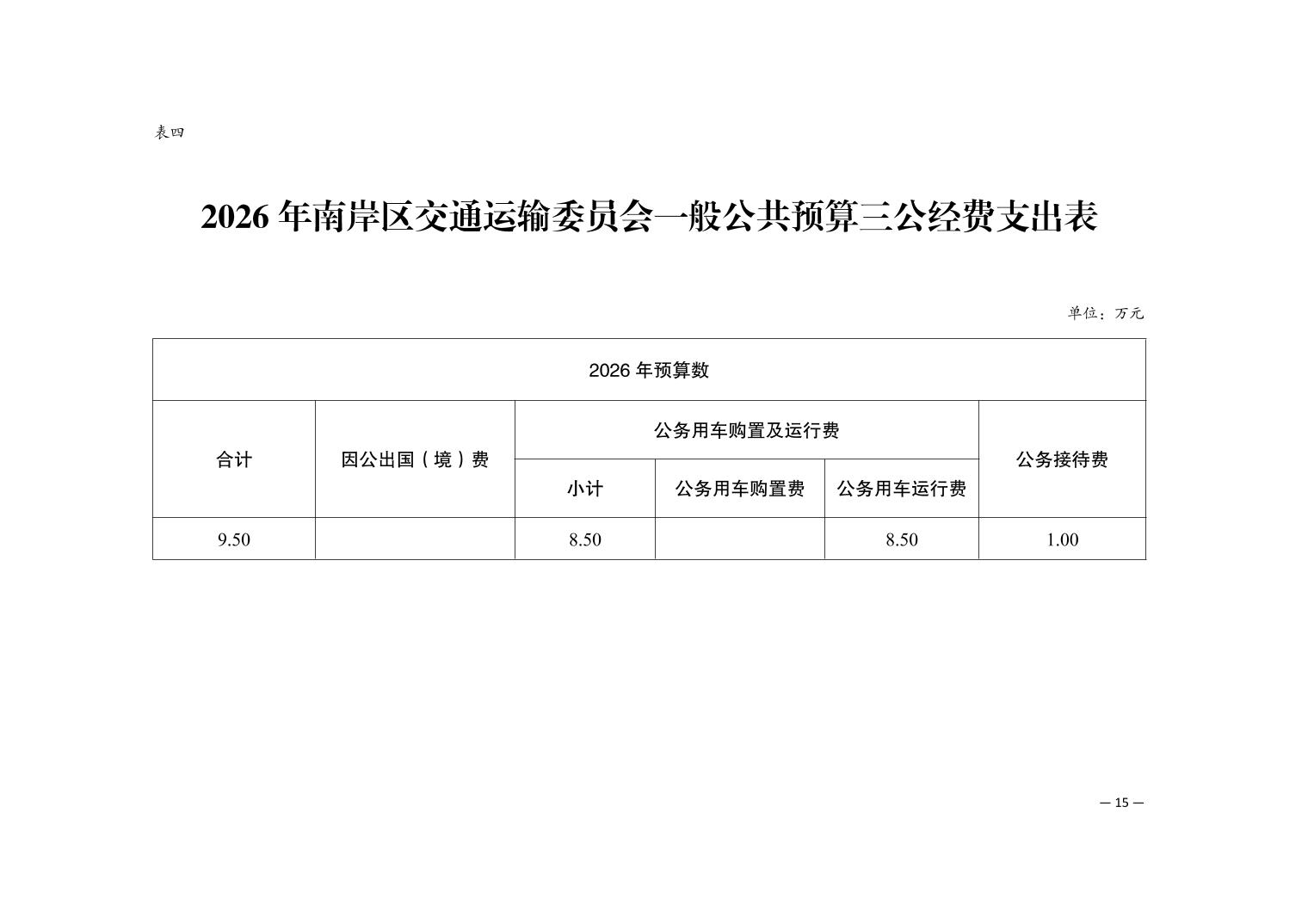 重庆市南岸区交通运输委员会2026年部门预算情况说明