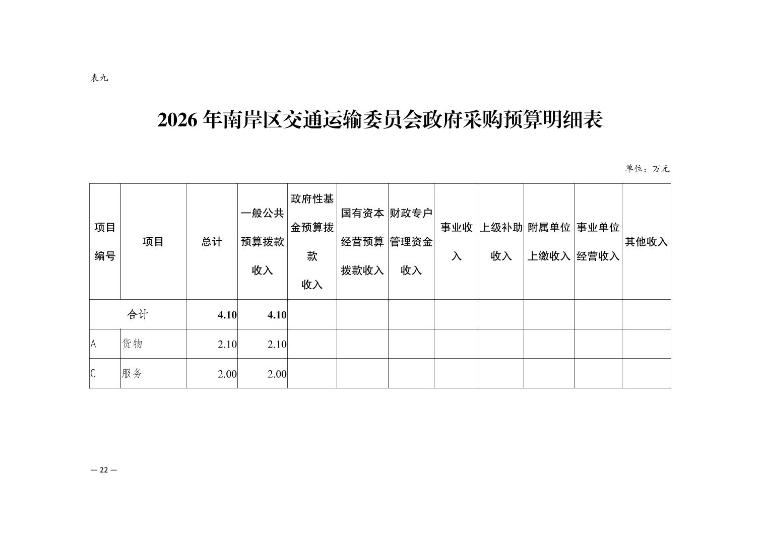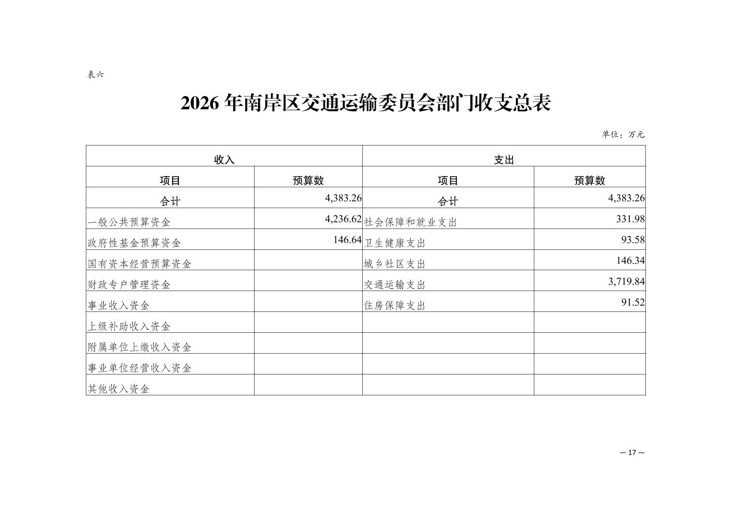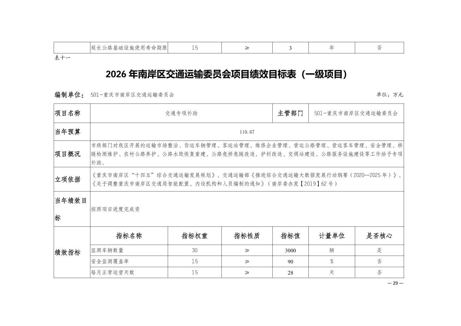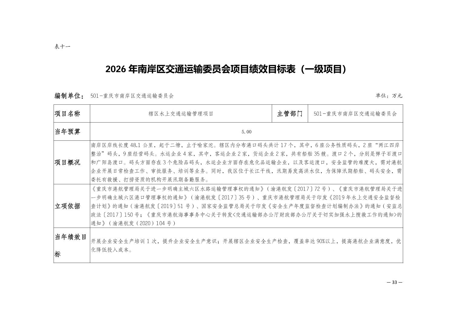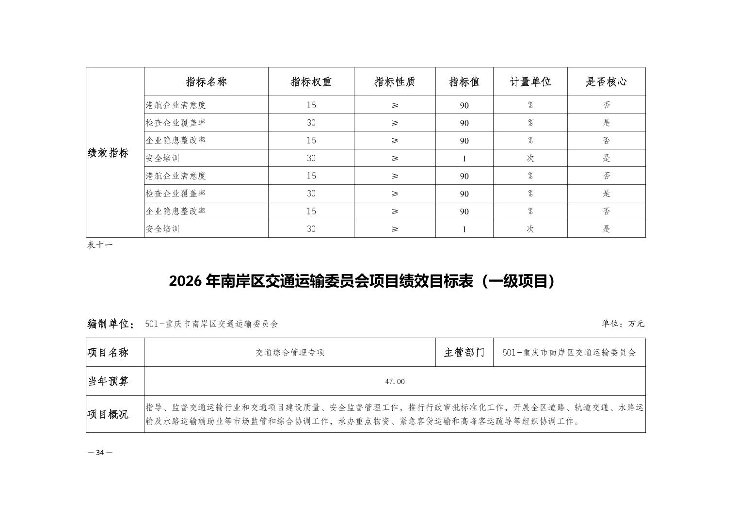 重庆市南岸区交通运输委员会2026年部门预算情况说明