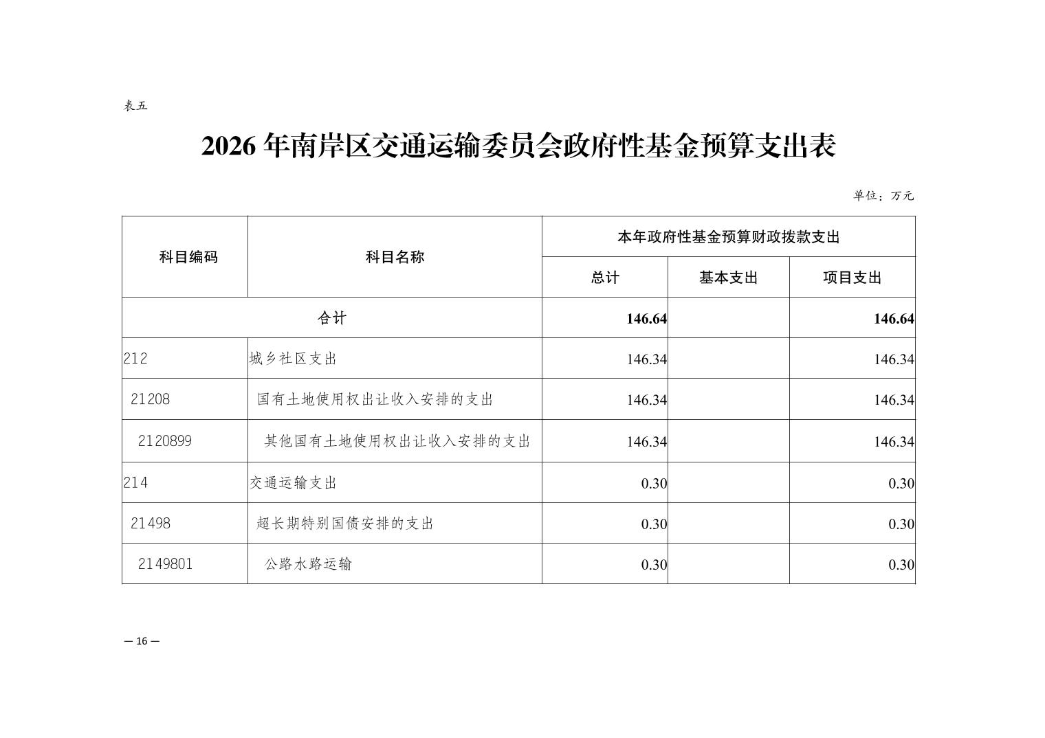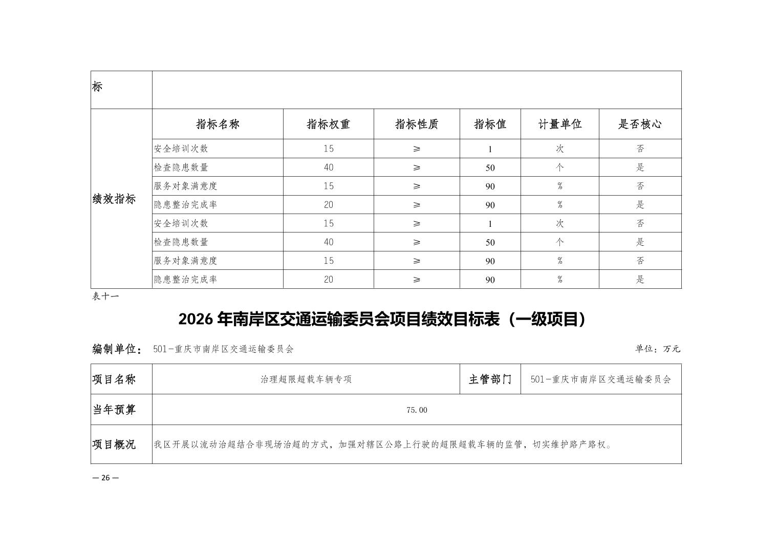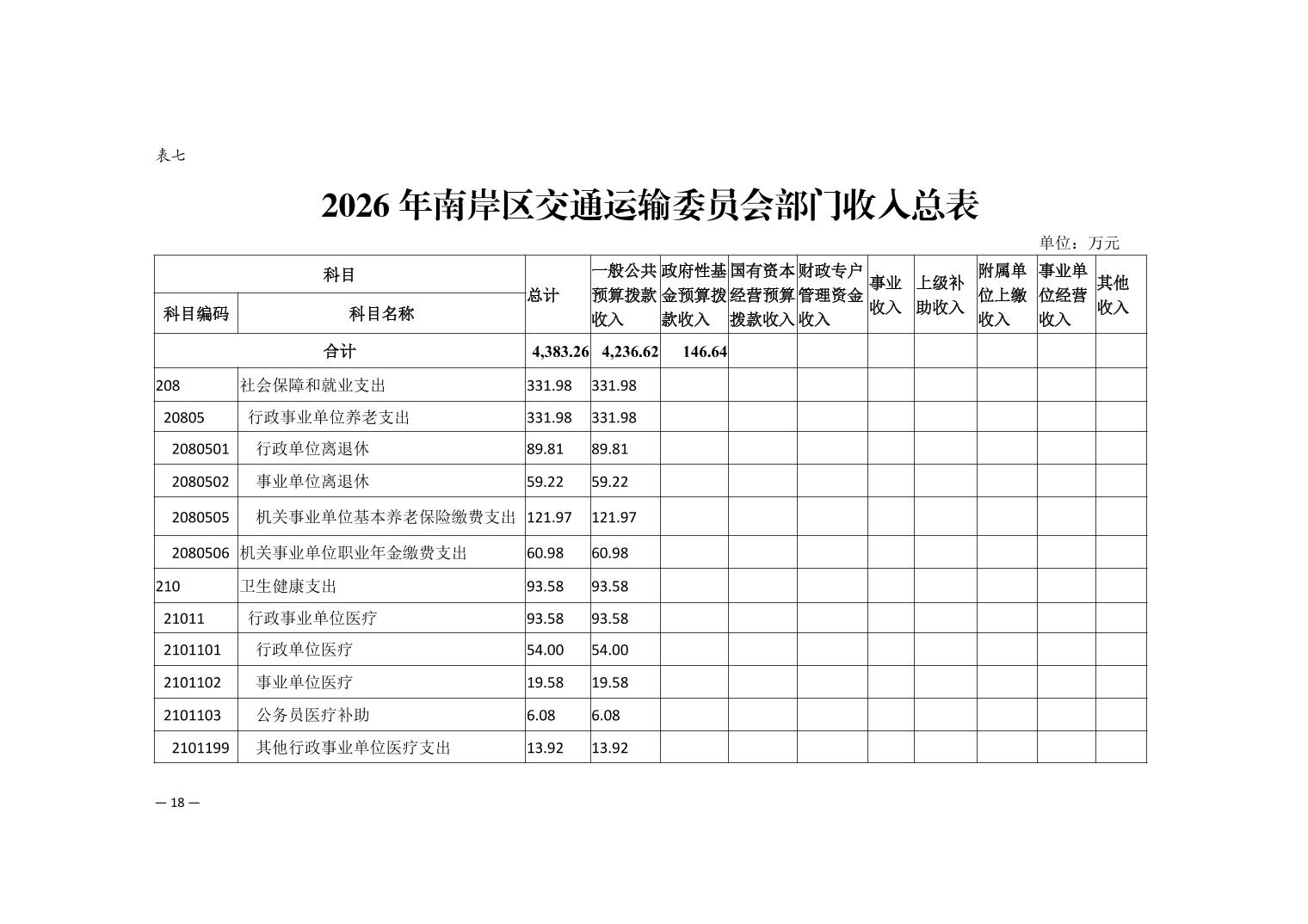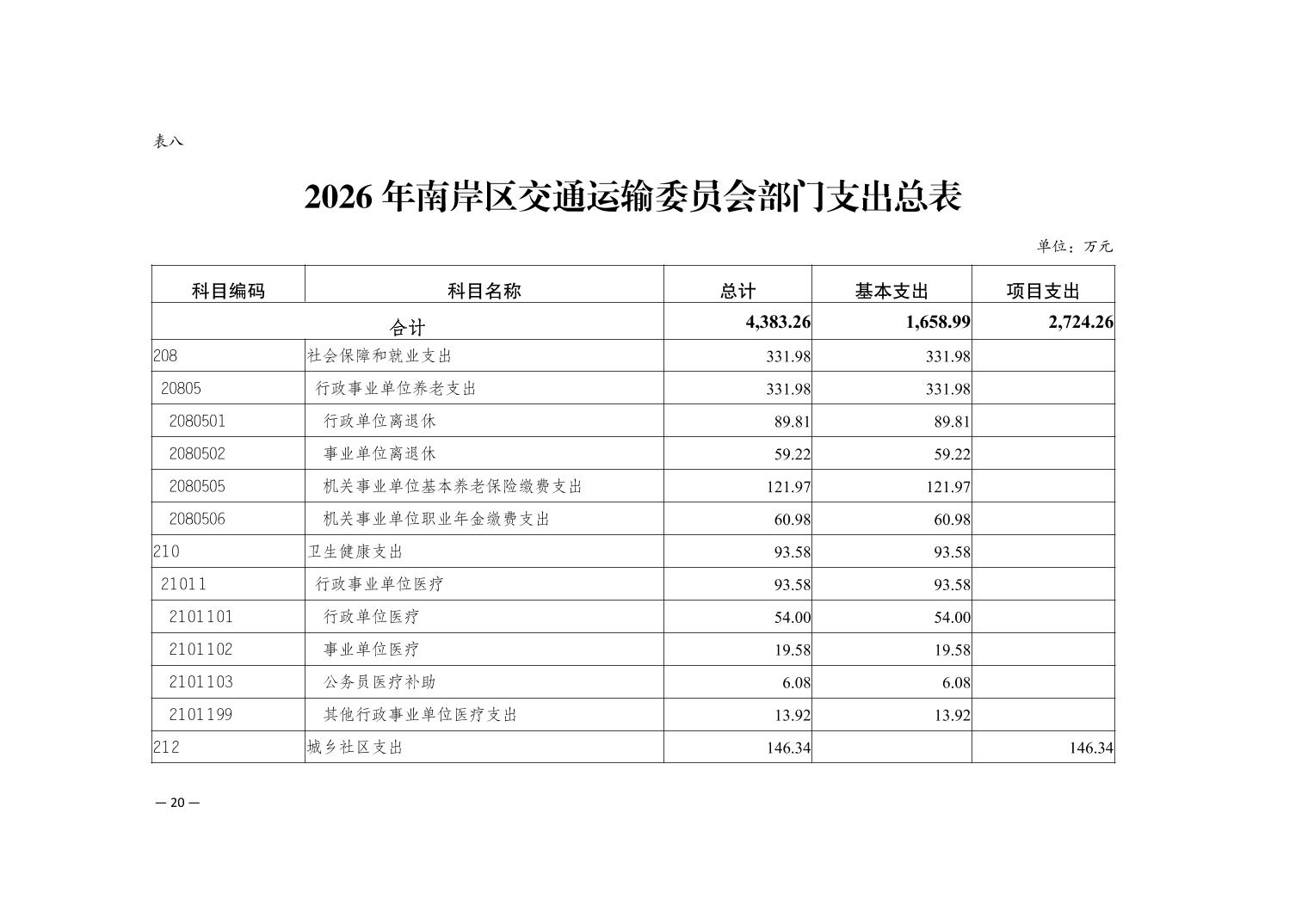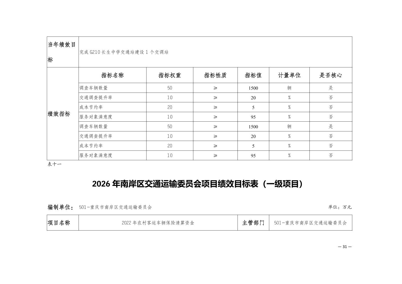 重庆市南岸区交通运输委员会2026年部门预算情况说明