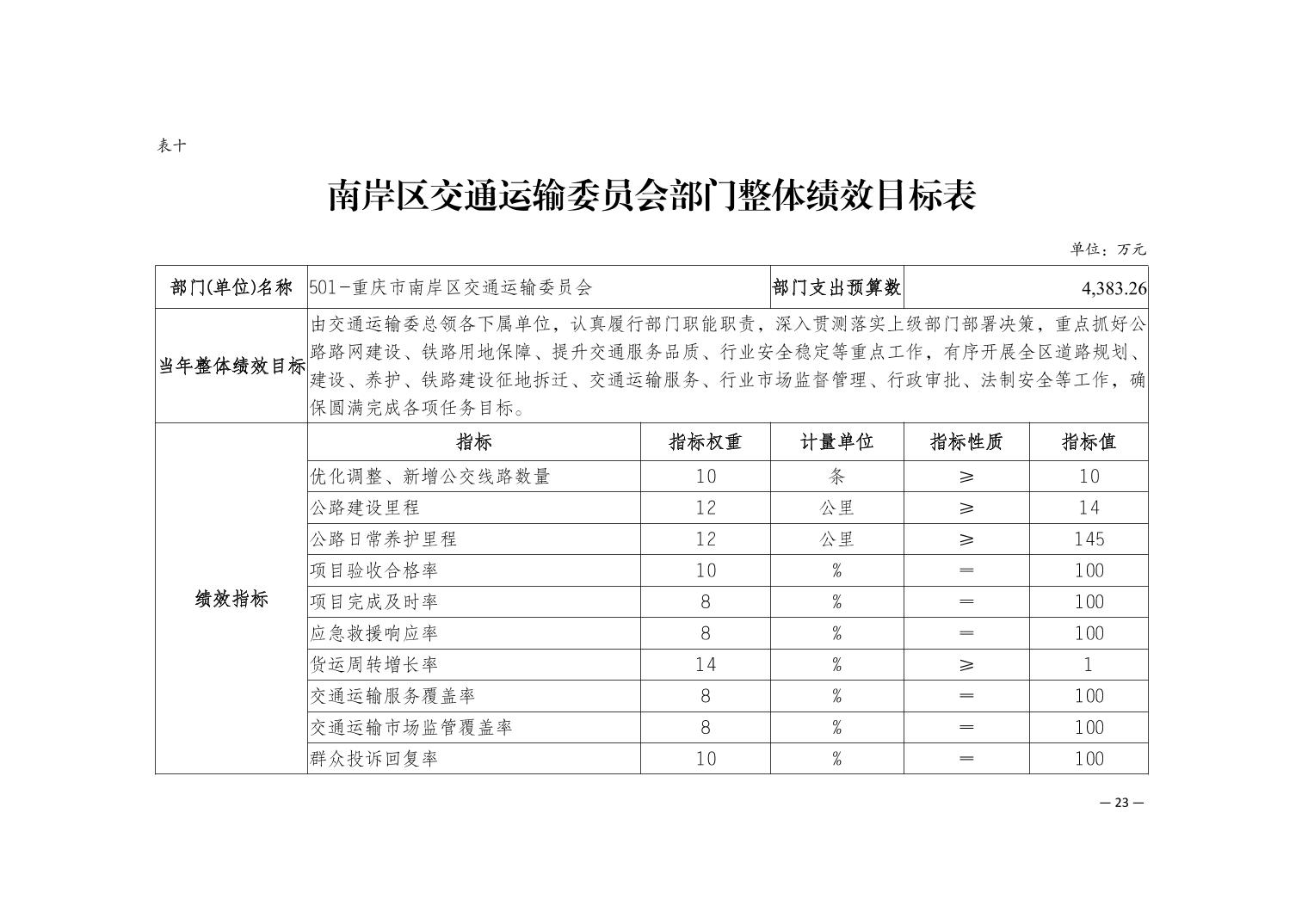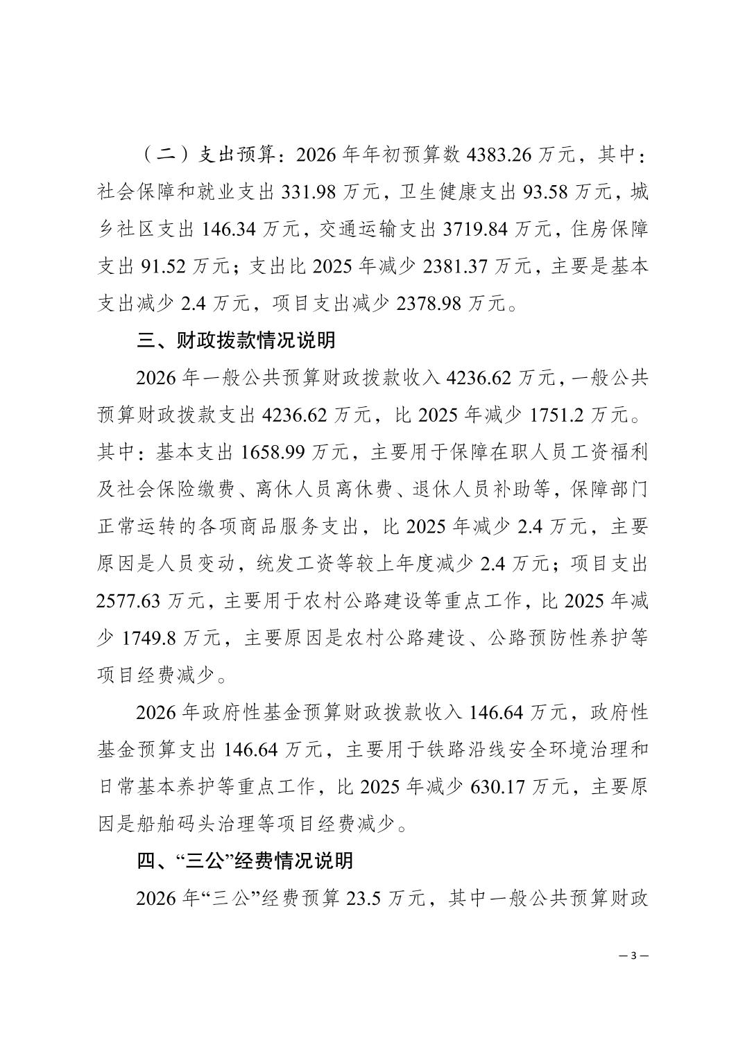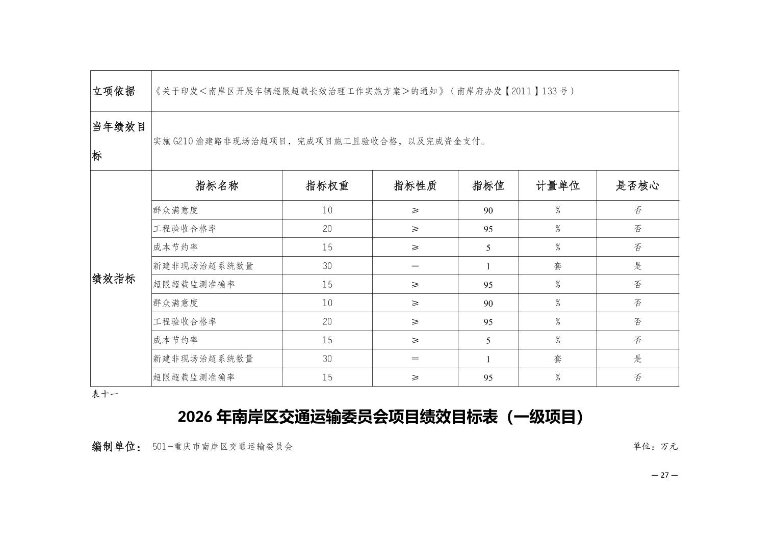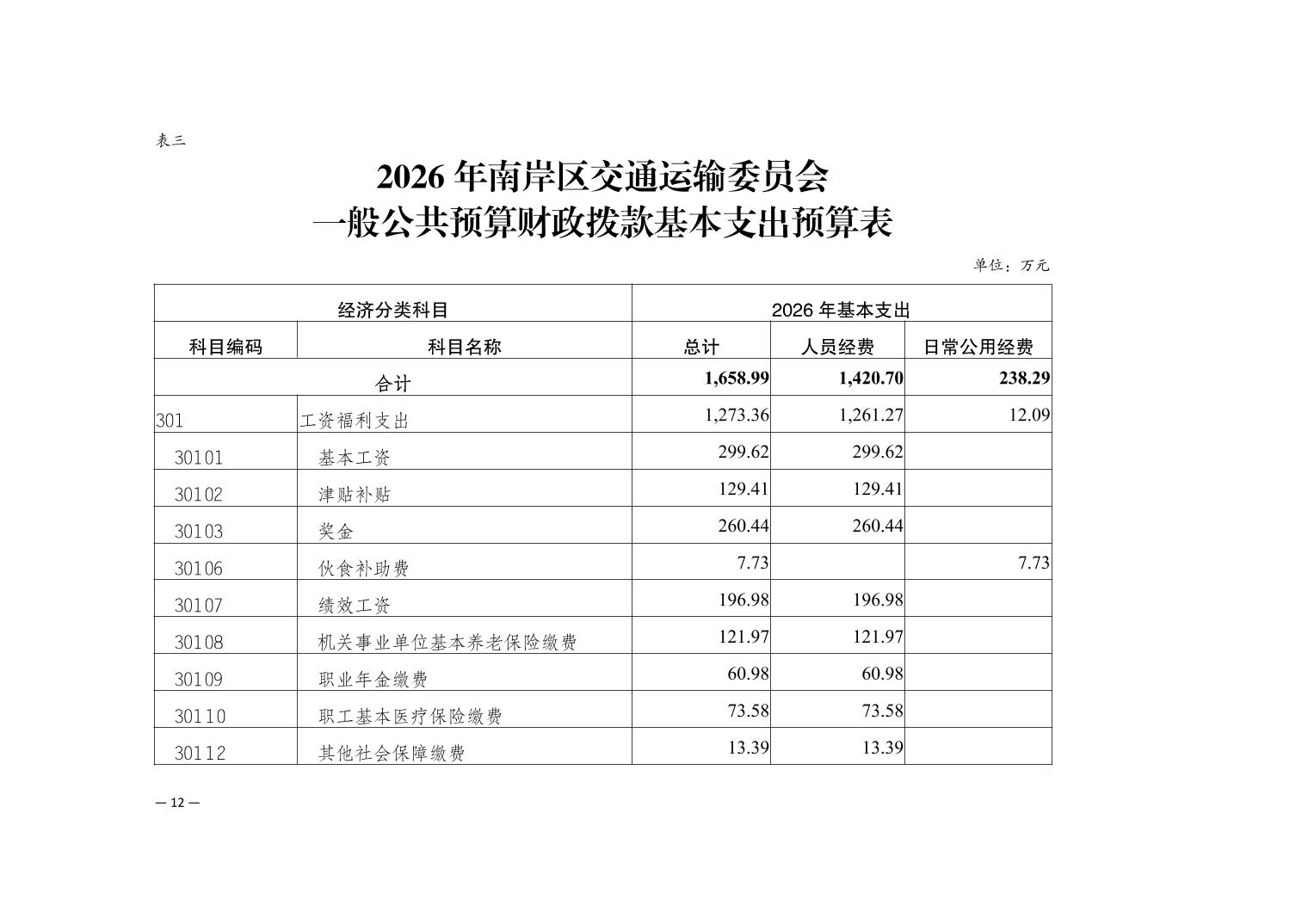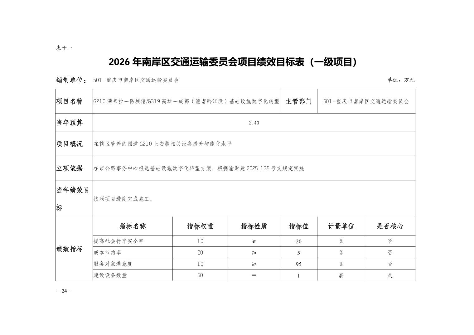 重庆市南岸区交通运输委员会2026年部门预算情况说明