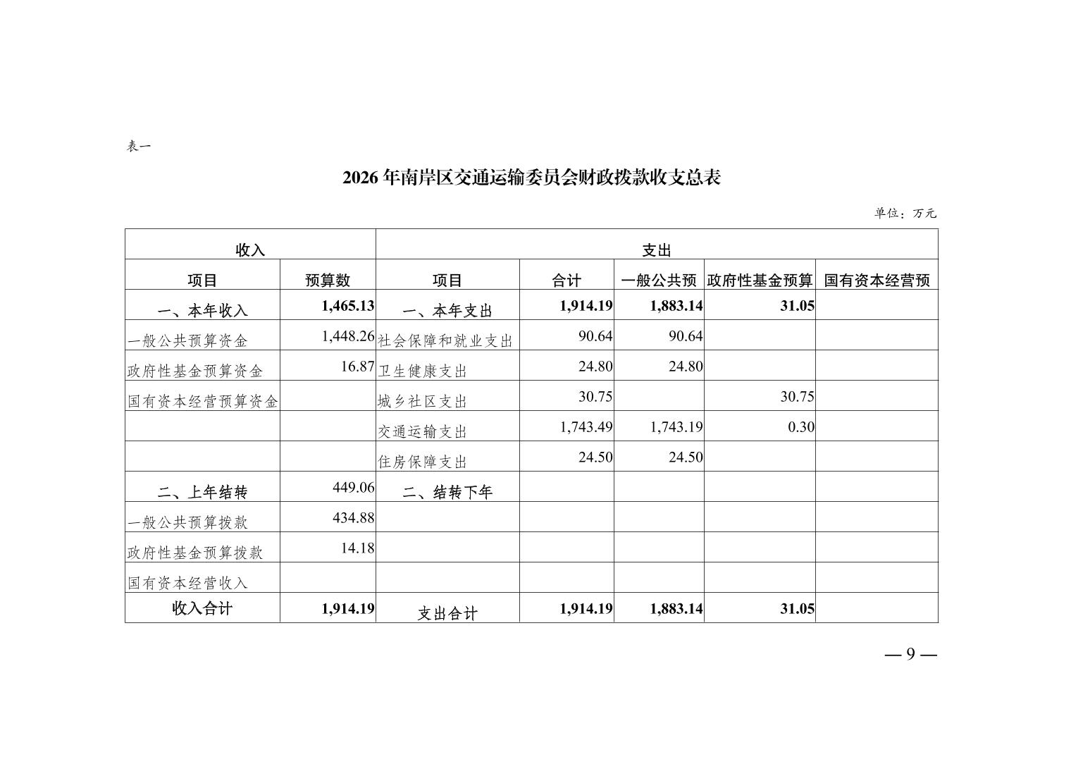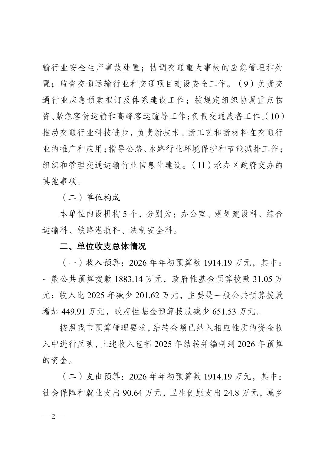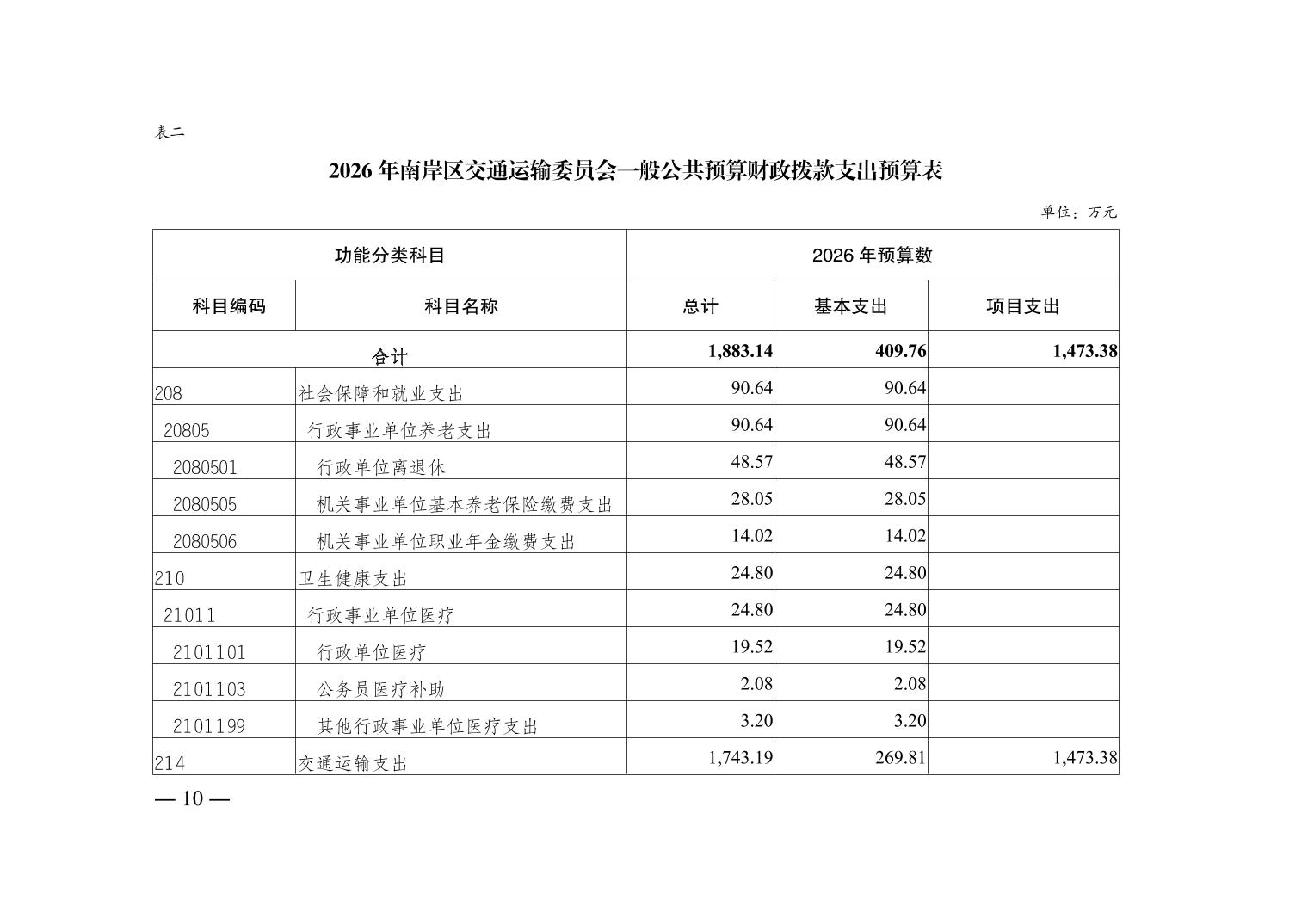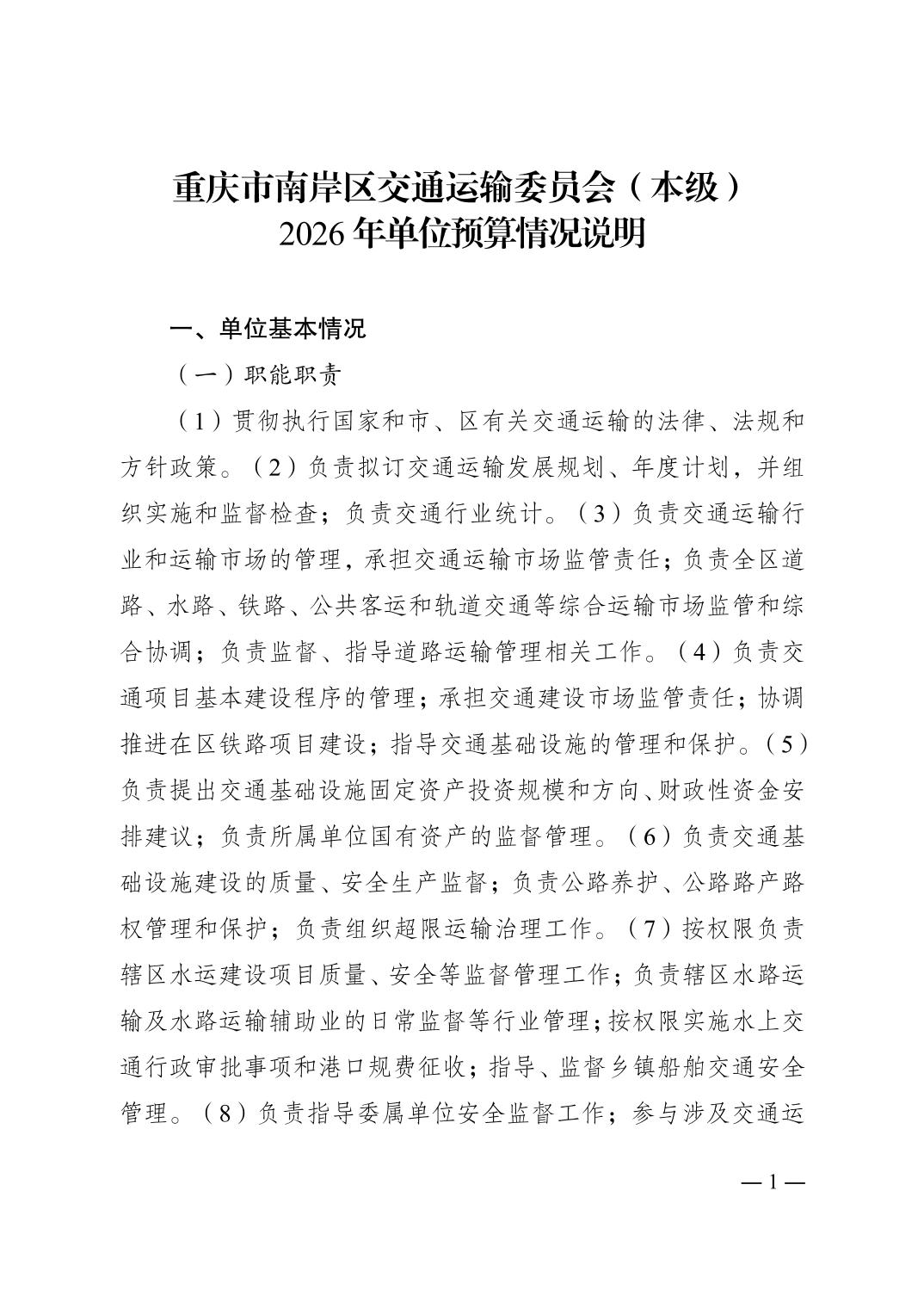 重庆市南岸区交通运输委员会(本级)2026年单位预算情况说明