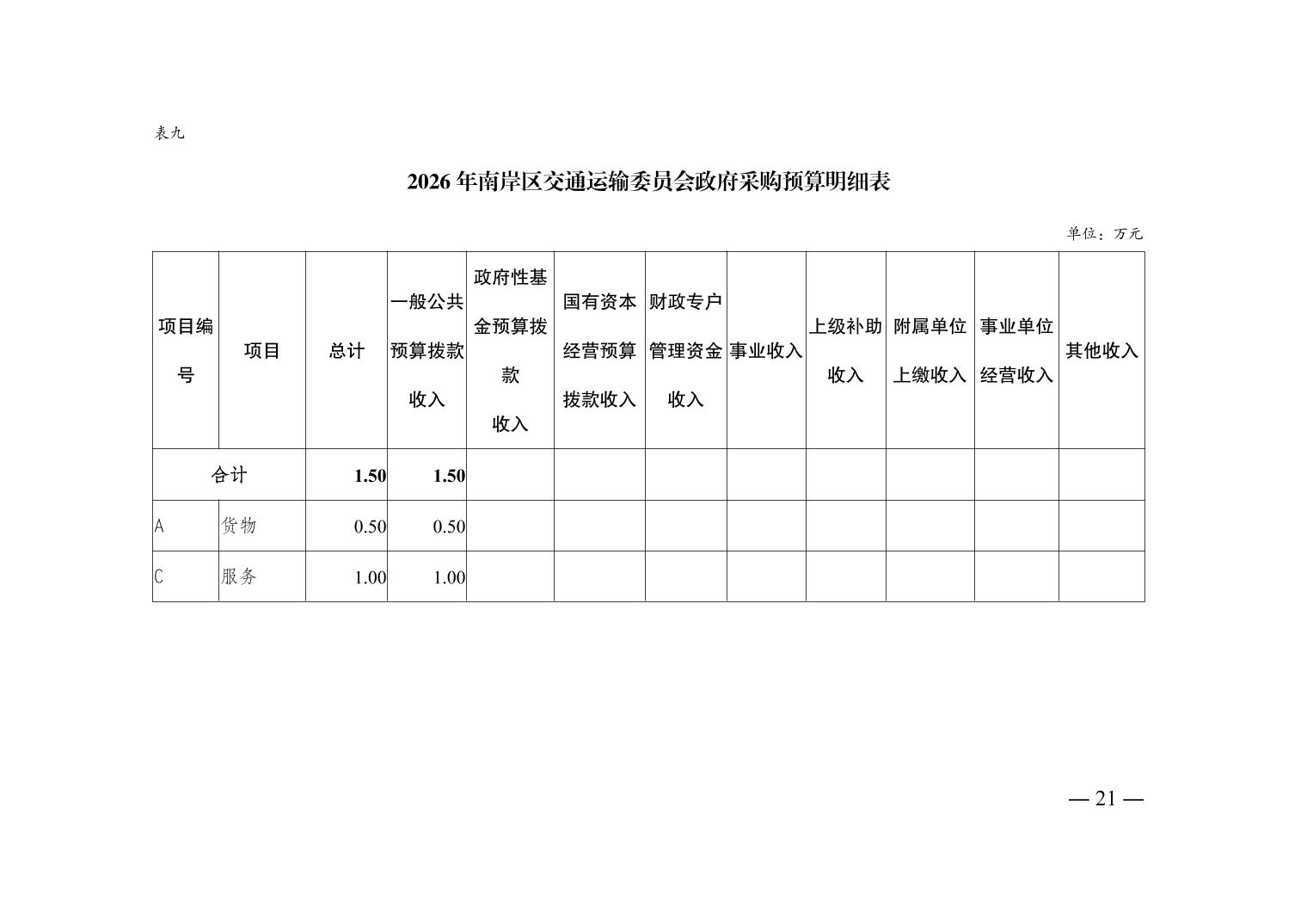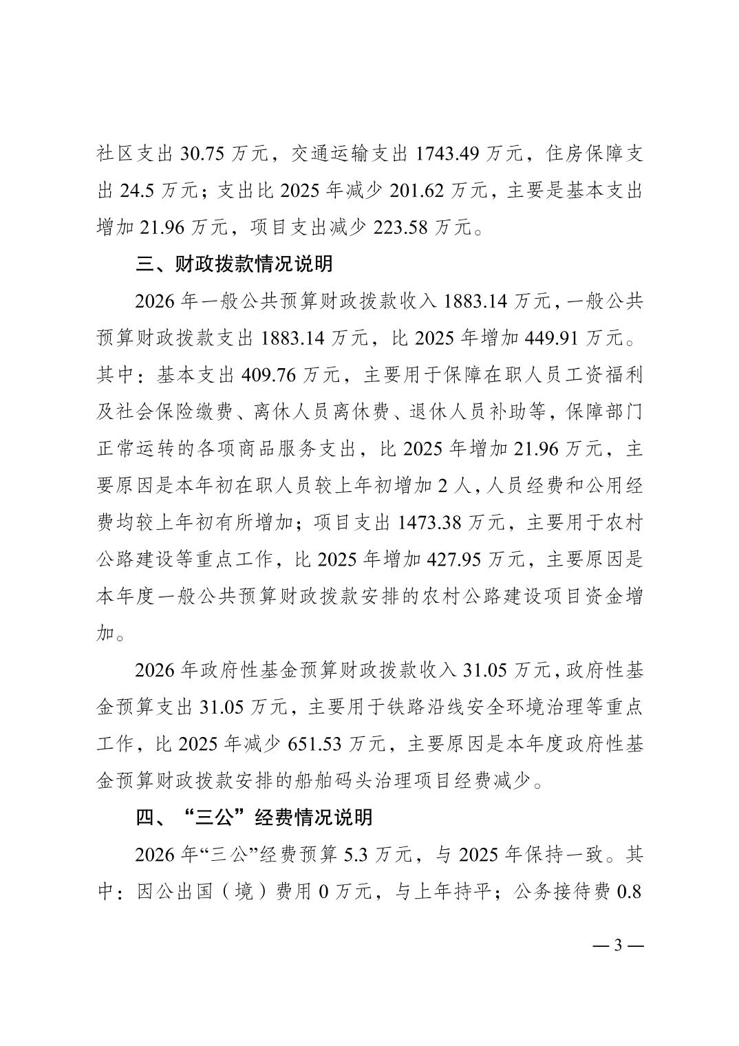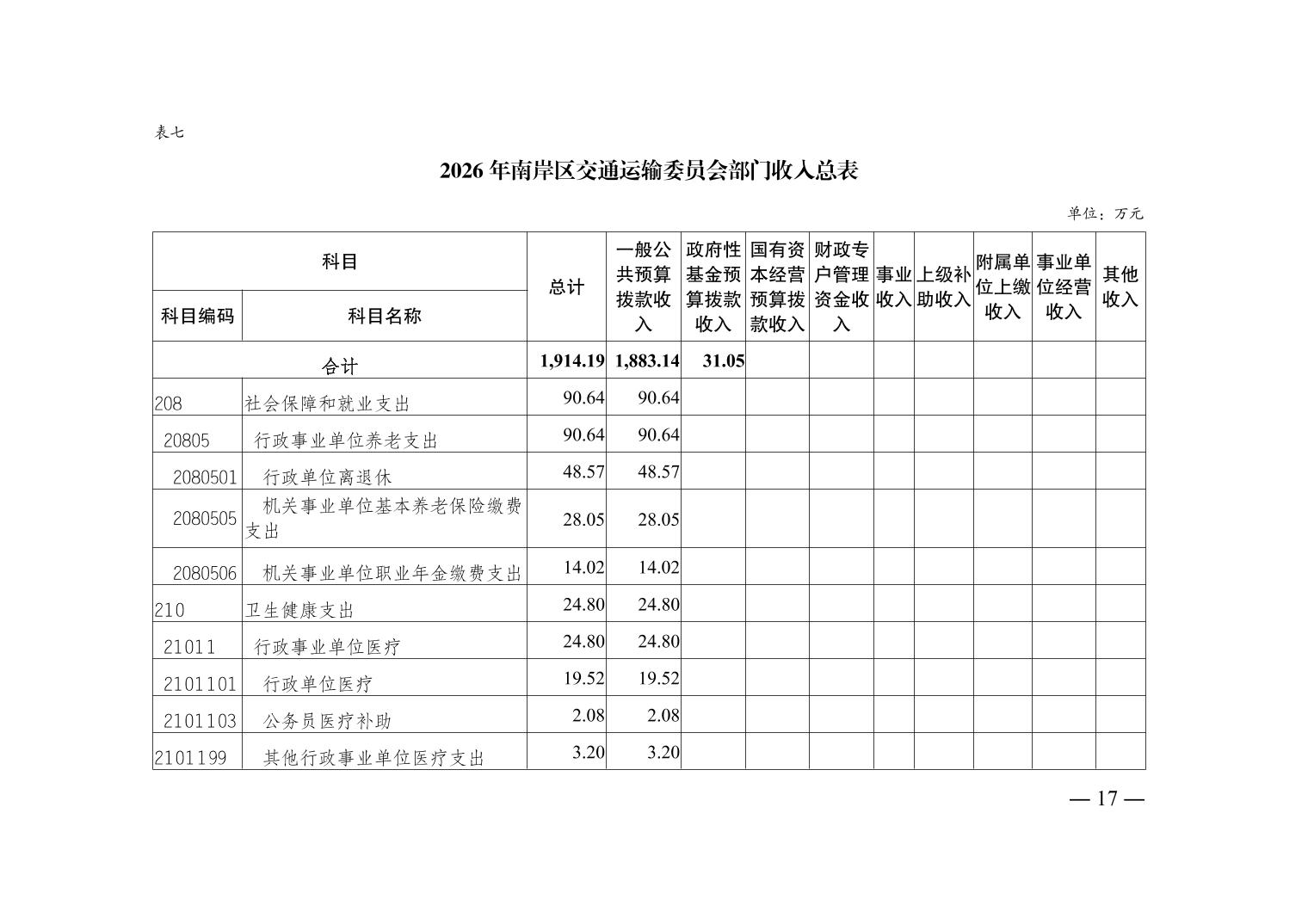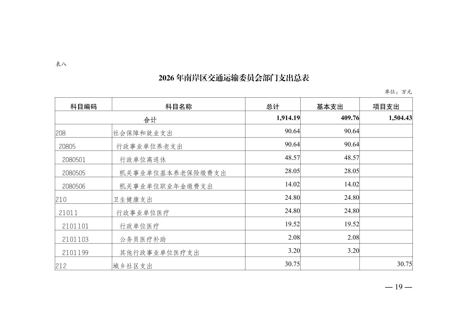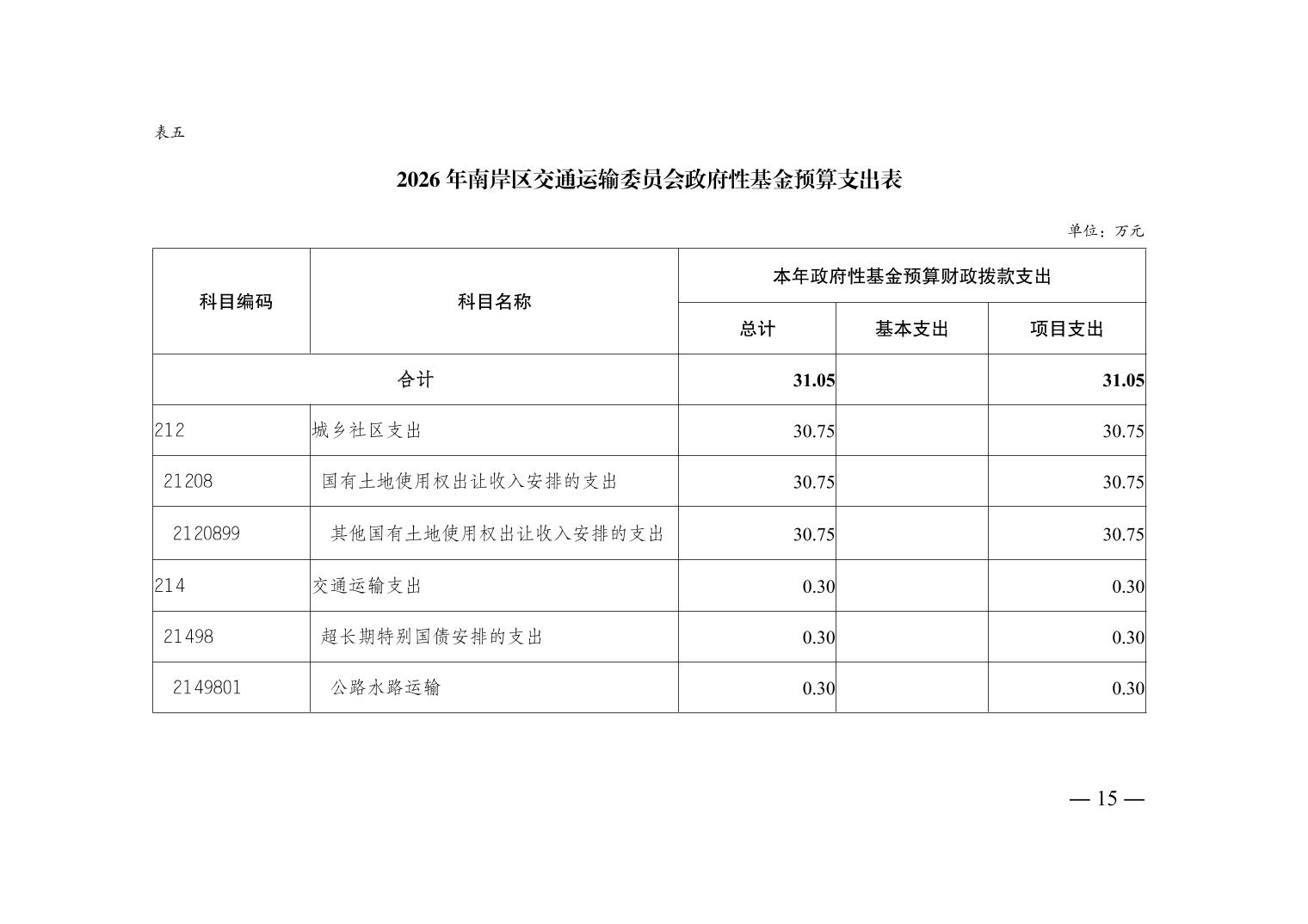 重庆市南岸区交通运输委员会(本级)2026年单位预算情况说明
