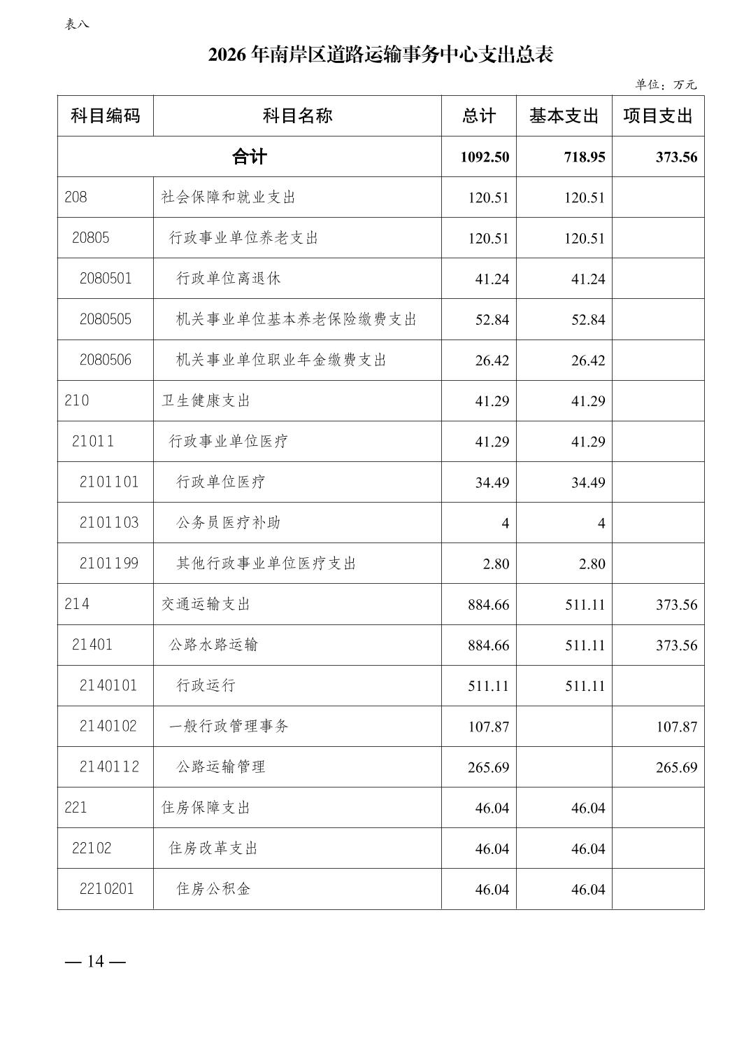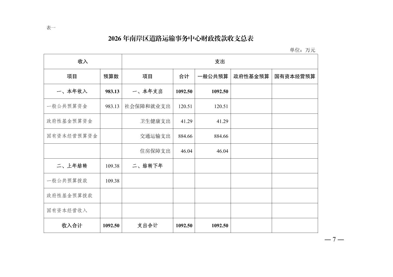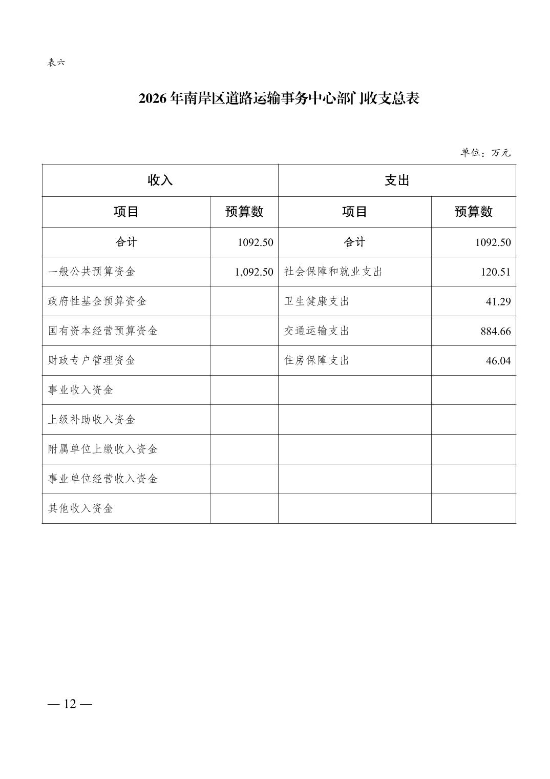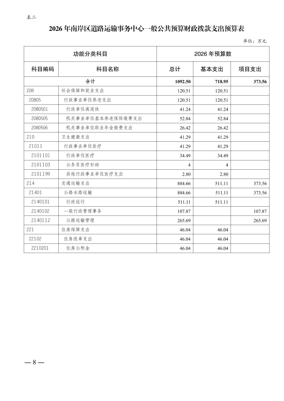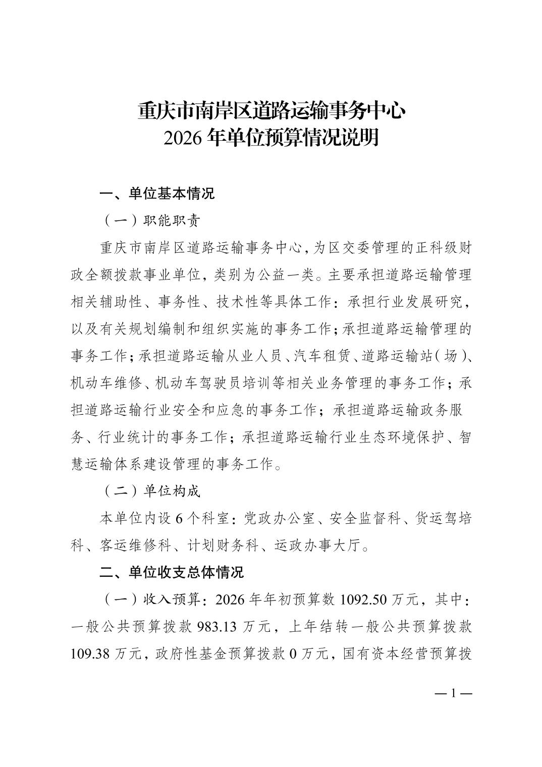 重庆市南岸区道路运输事务中心2026年单位预算情况说明
