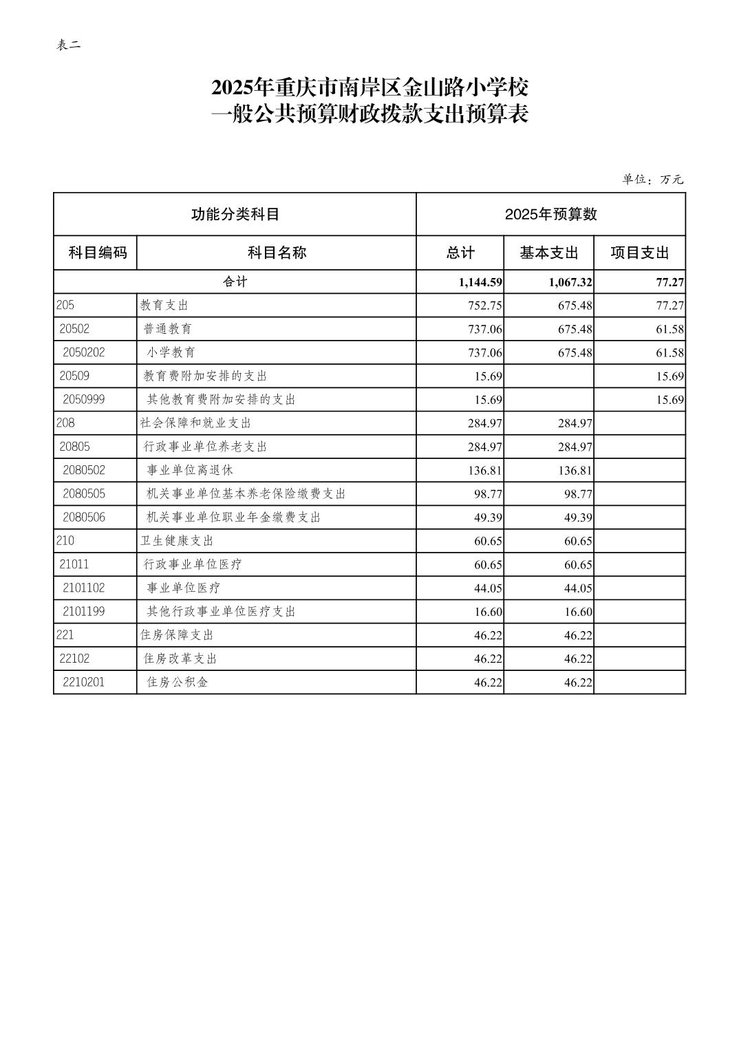 重庆市南岸区金山路小学校2025年单位预算情况说明