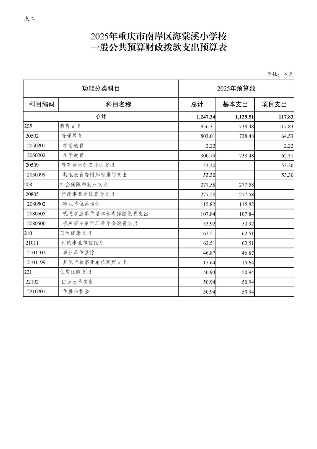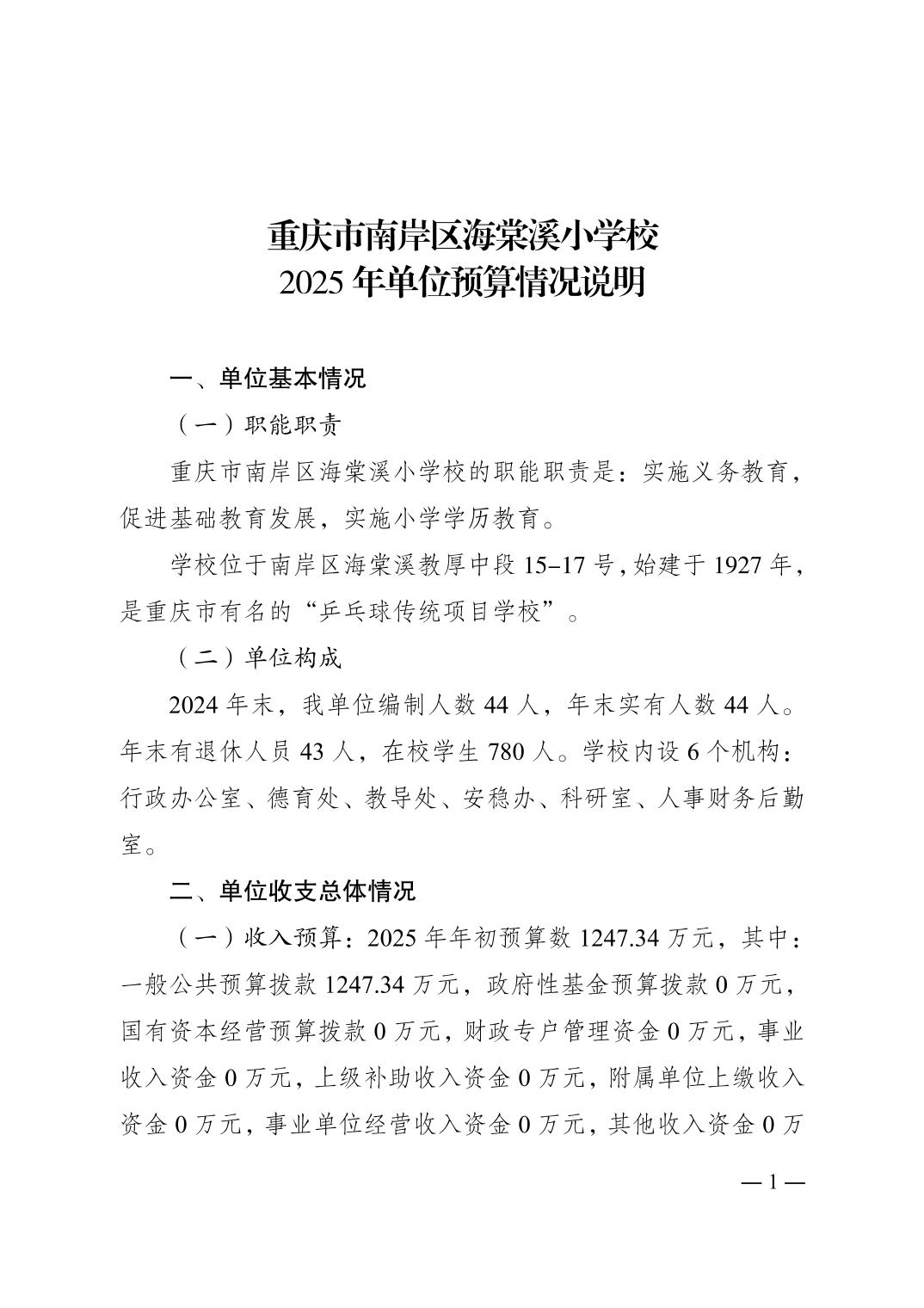 重庆市南岸区海棠溪小学校2025年单位预算情况说明