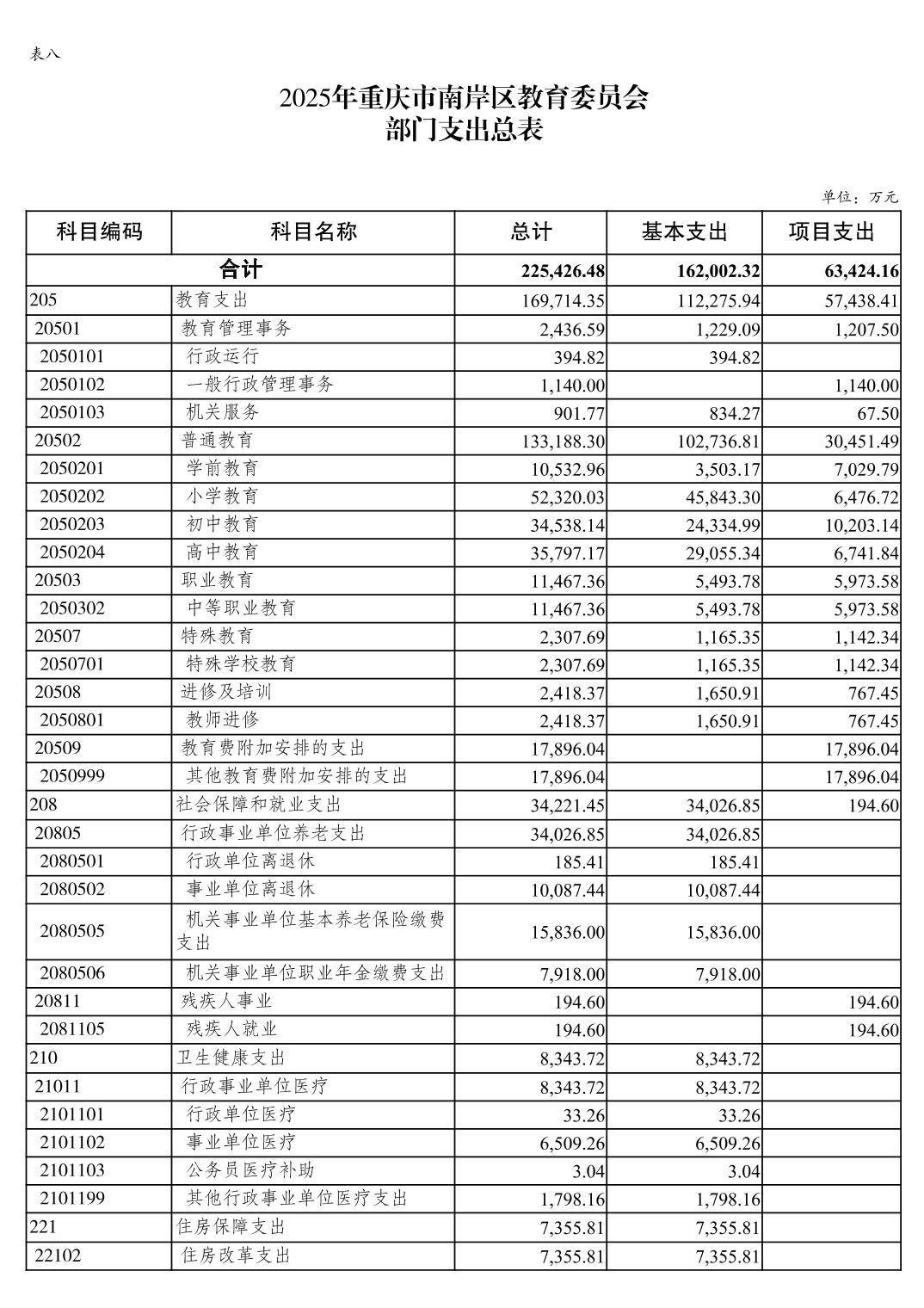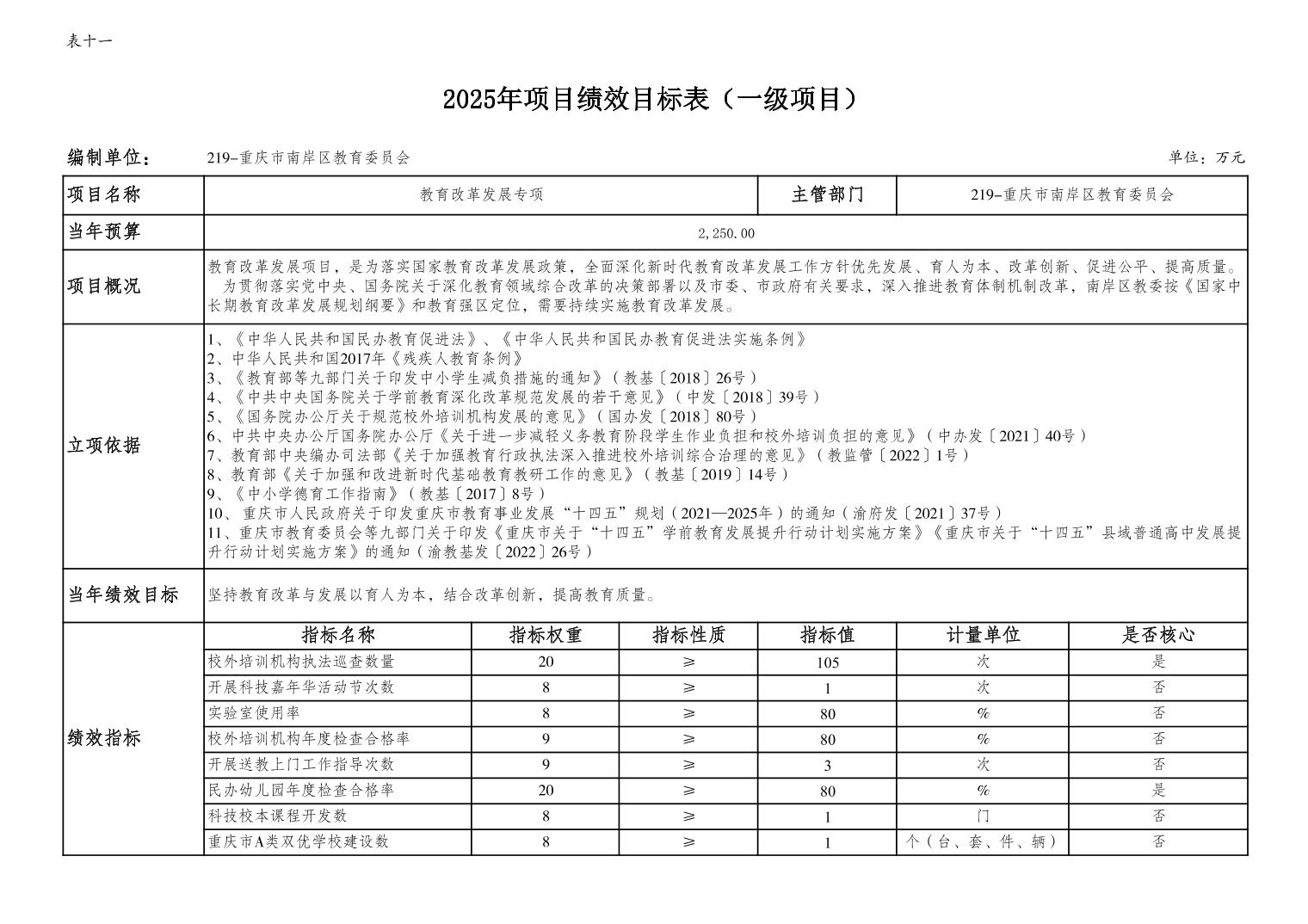 重庆市南岸区教育委员会2025年部门预算情况说明