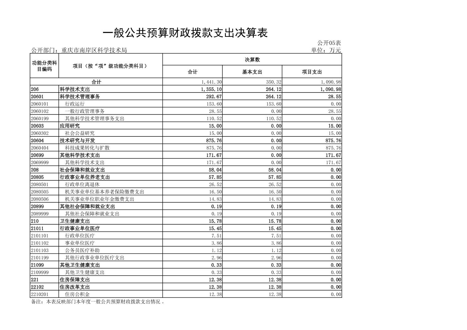 重庆市南岸区科学技术局2021年决算