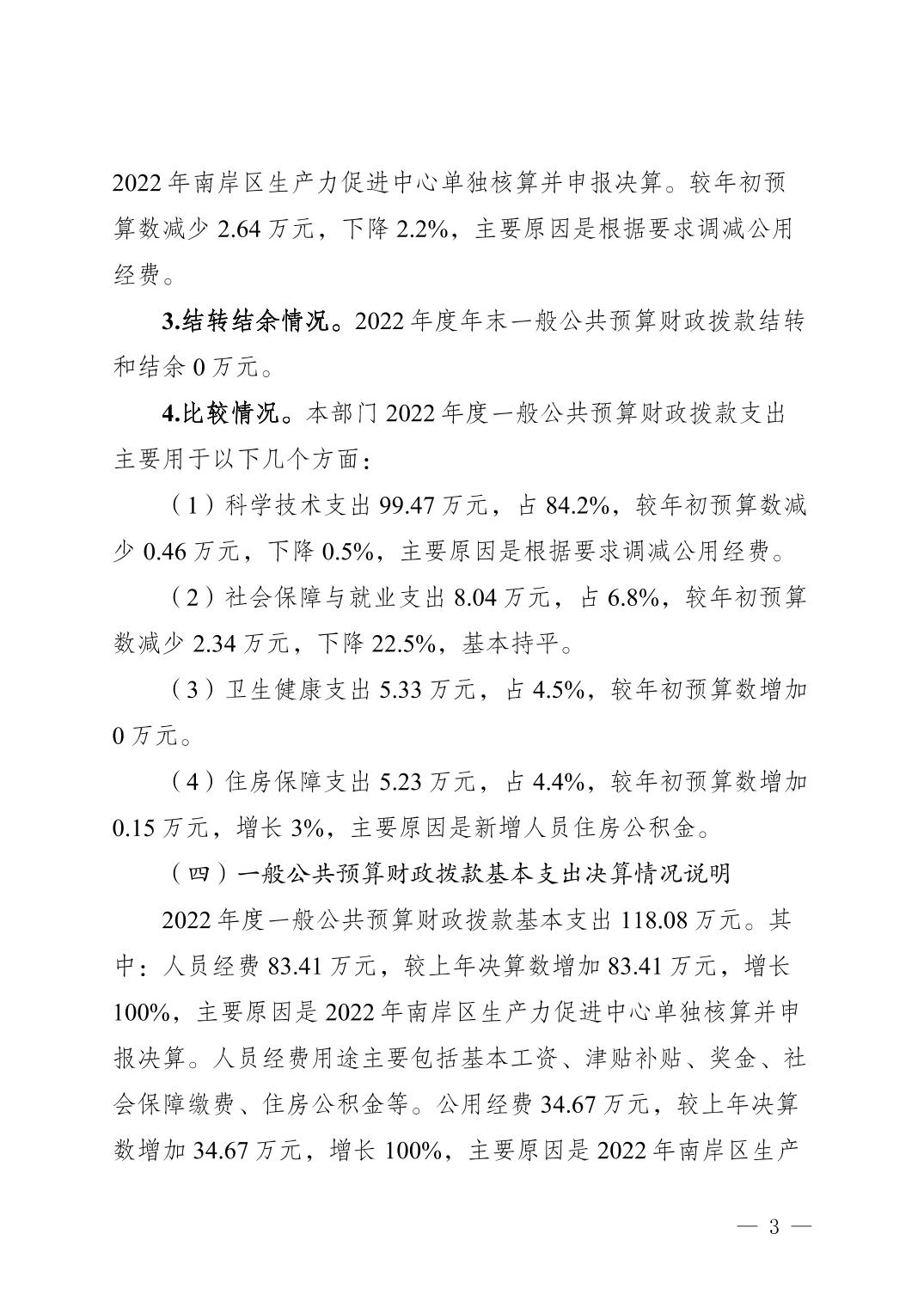 重庆市南岸区生产力促进中心 2022 年度部门决算情况说明