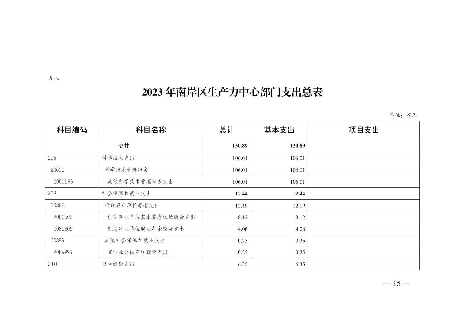 重庆市南岸区生产力促进中心2023年单位预算情况说明