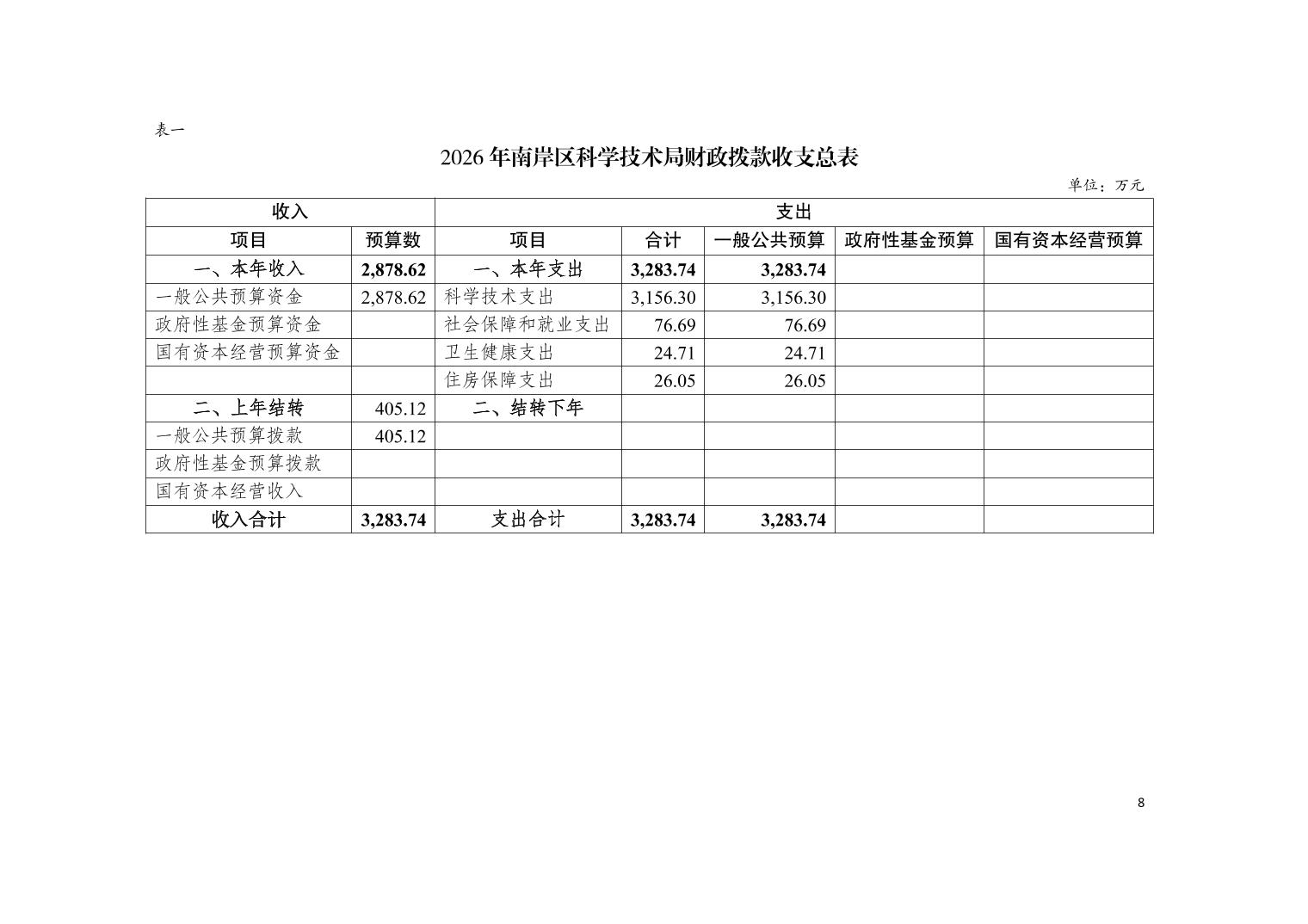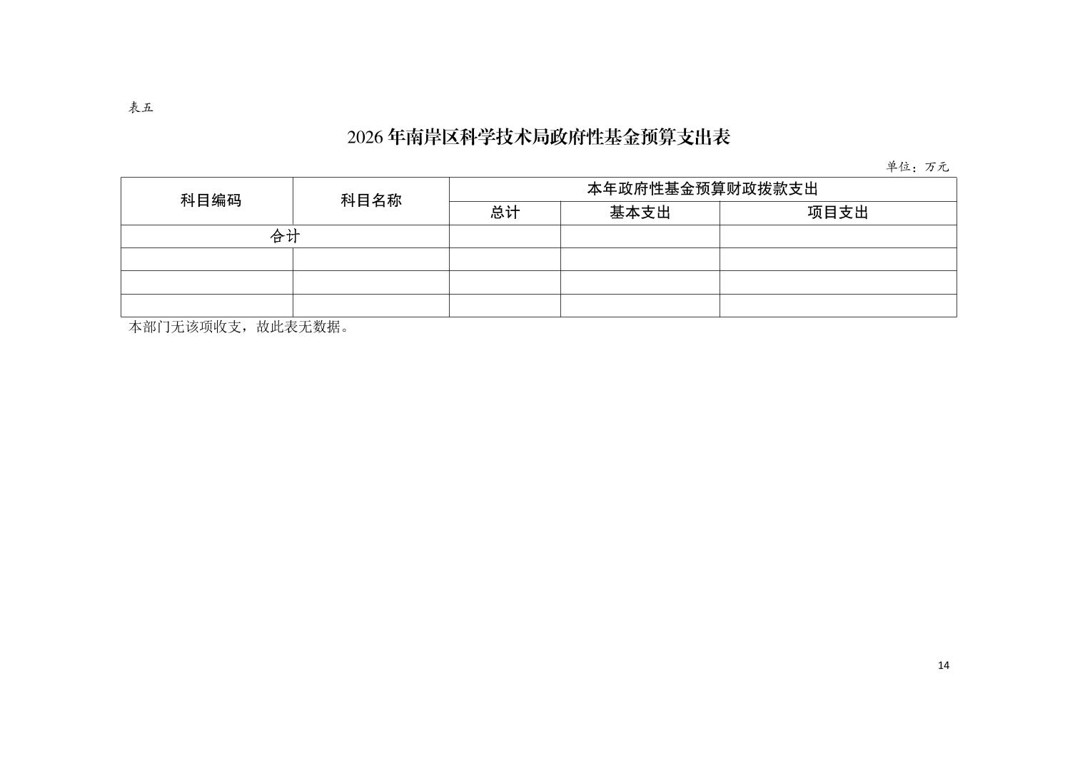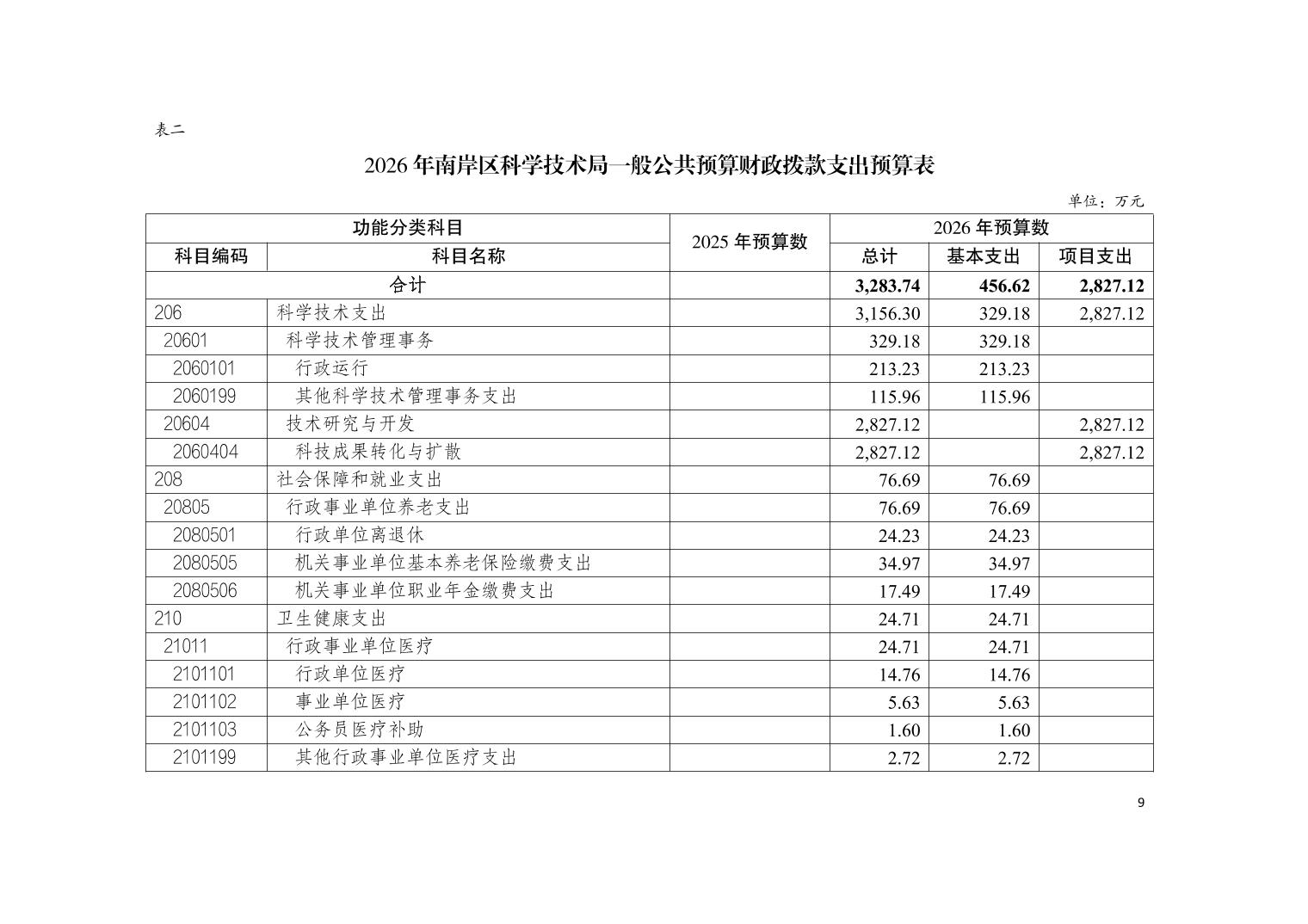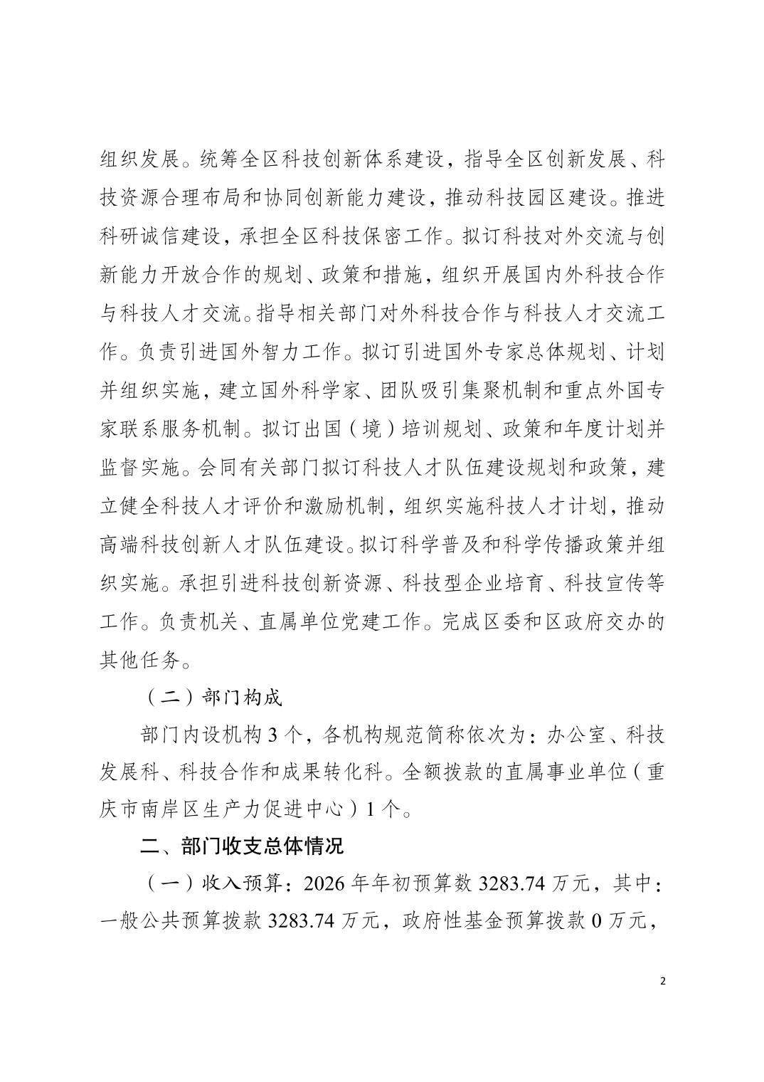 重庆市南岸区科学技术局2026年部门预算情况说明