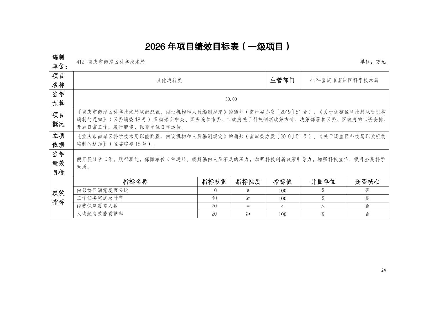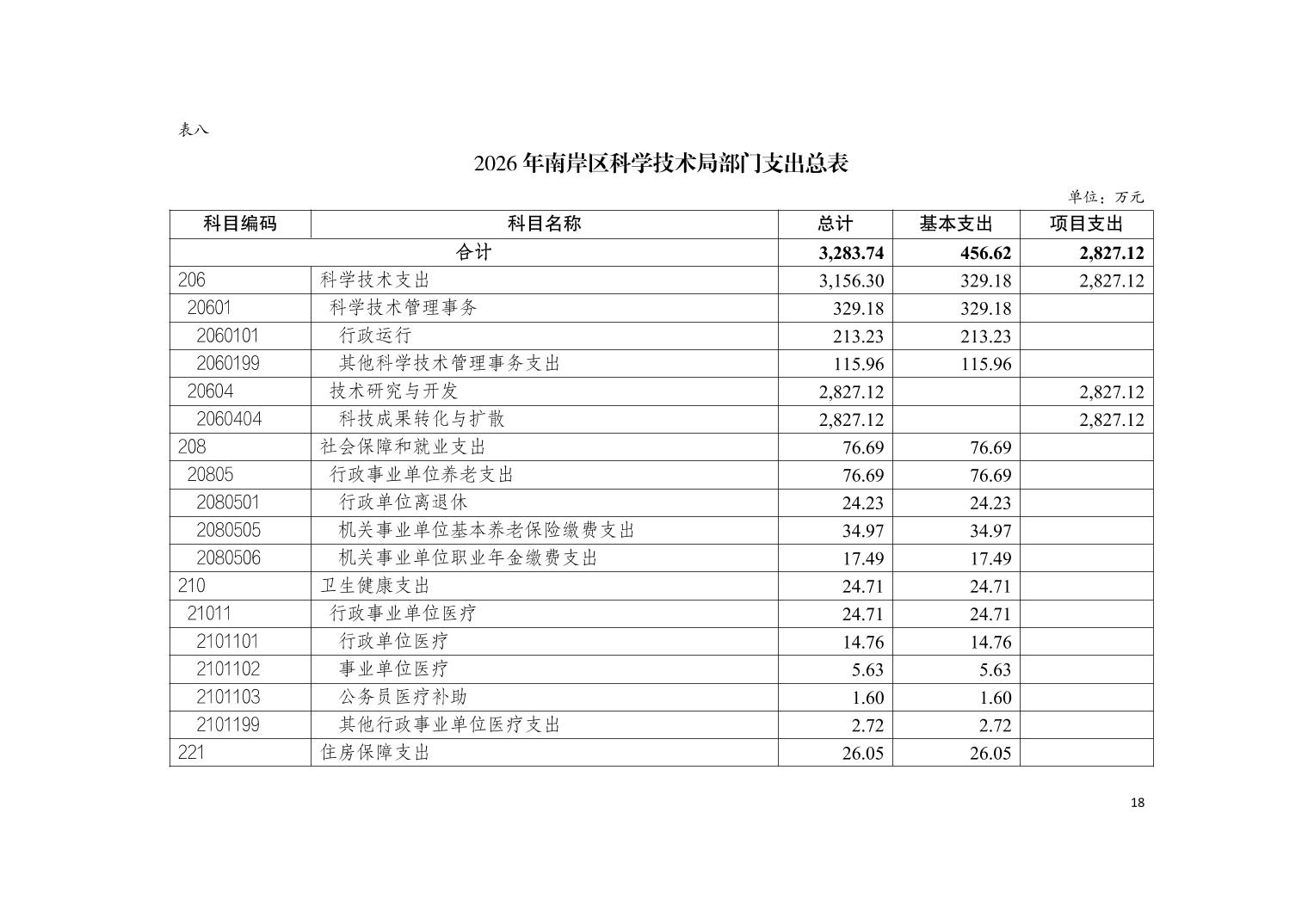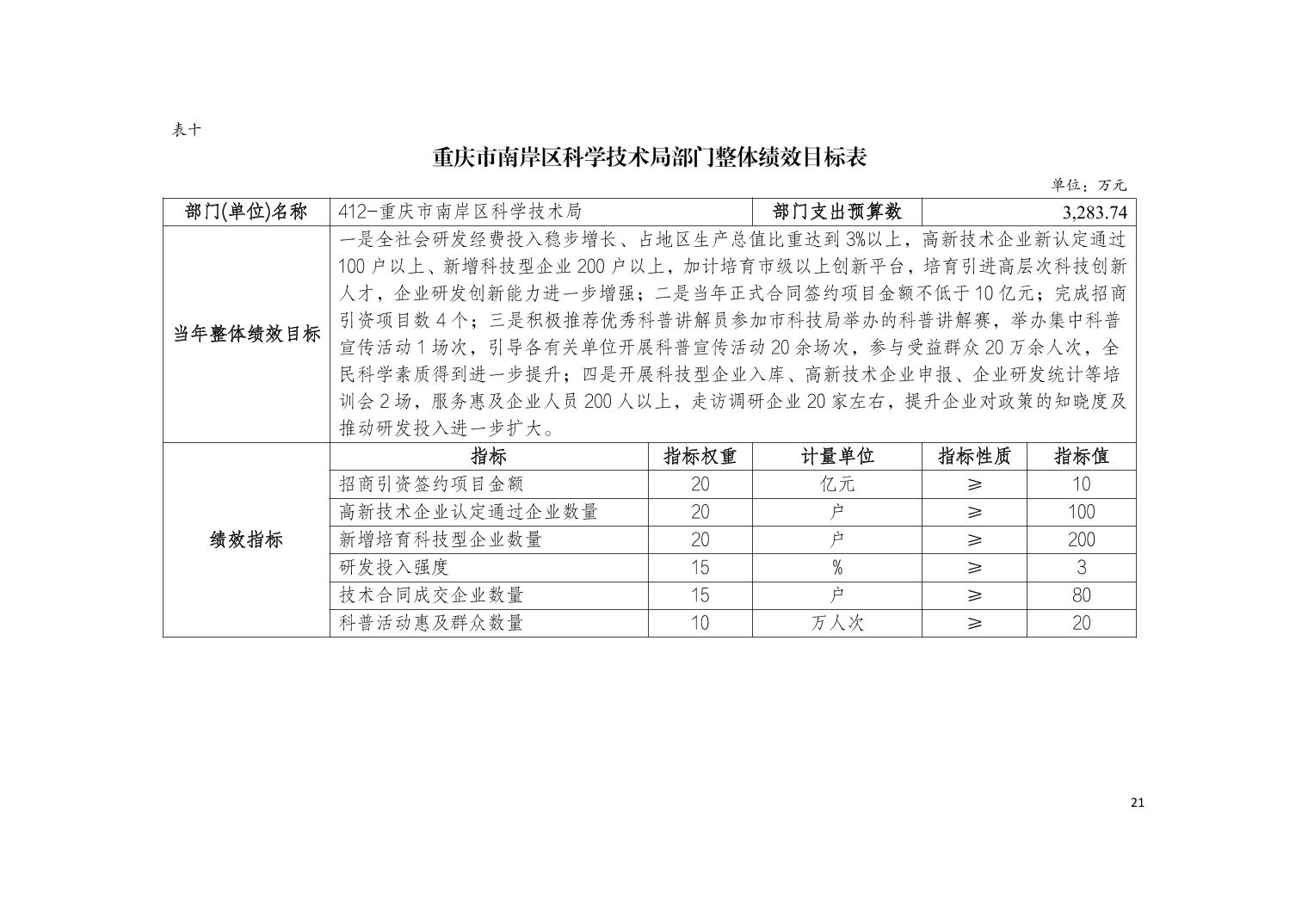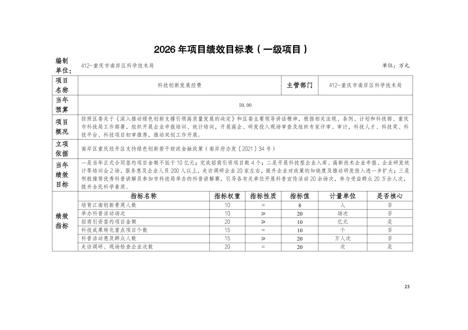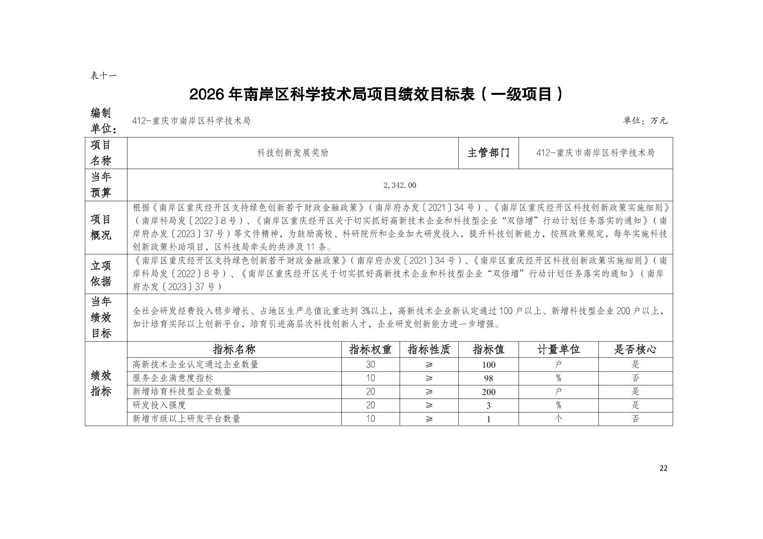 重庆市南岸区科学技术局2026年部门预算情况说明