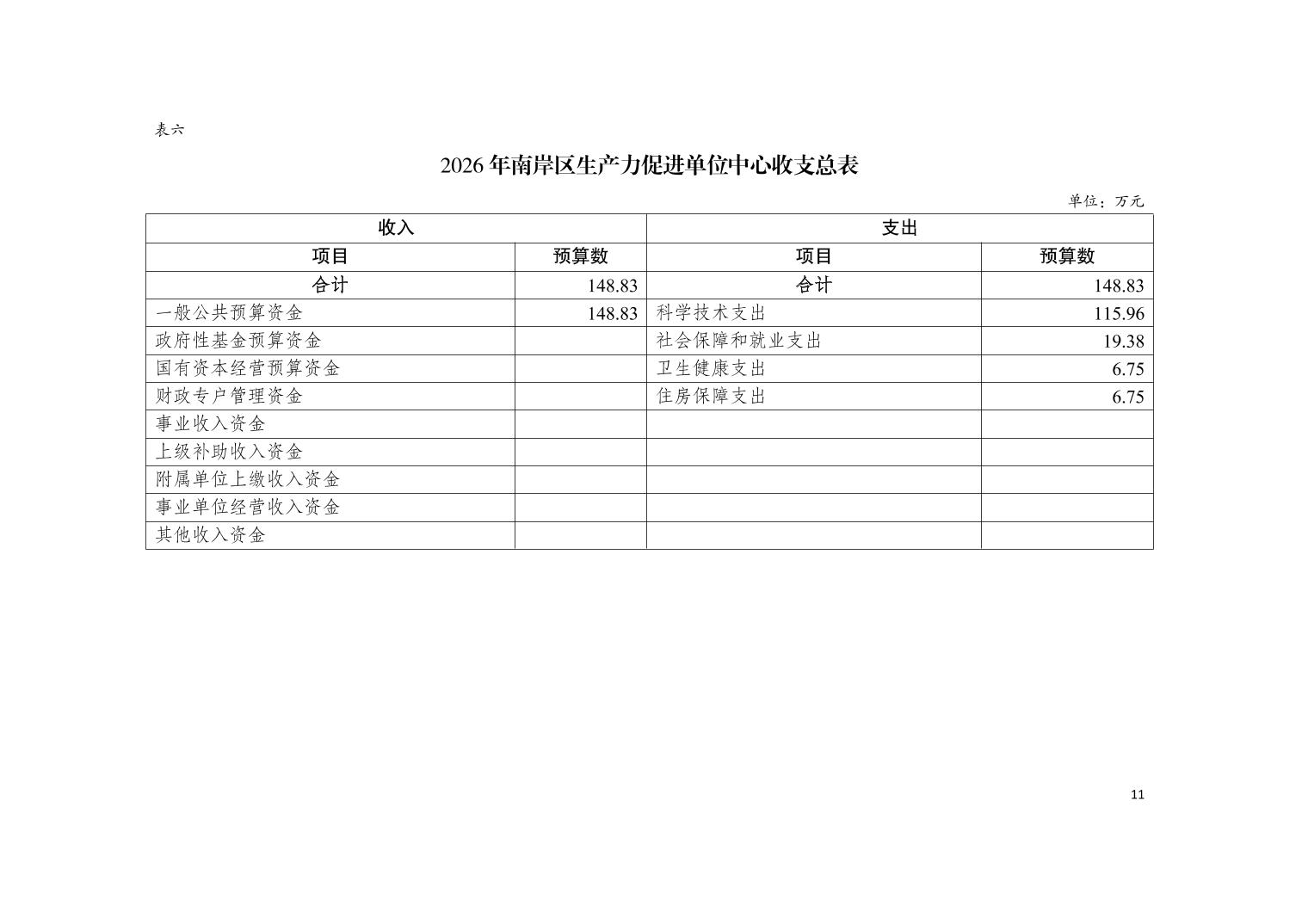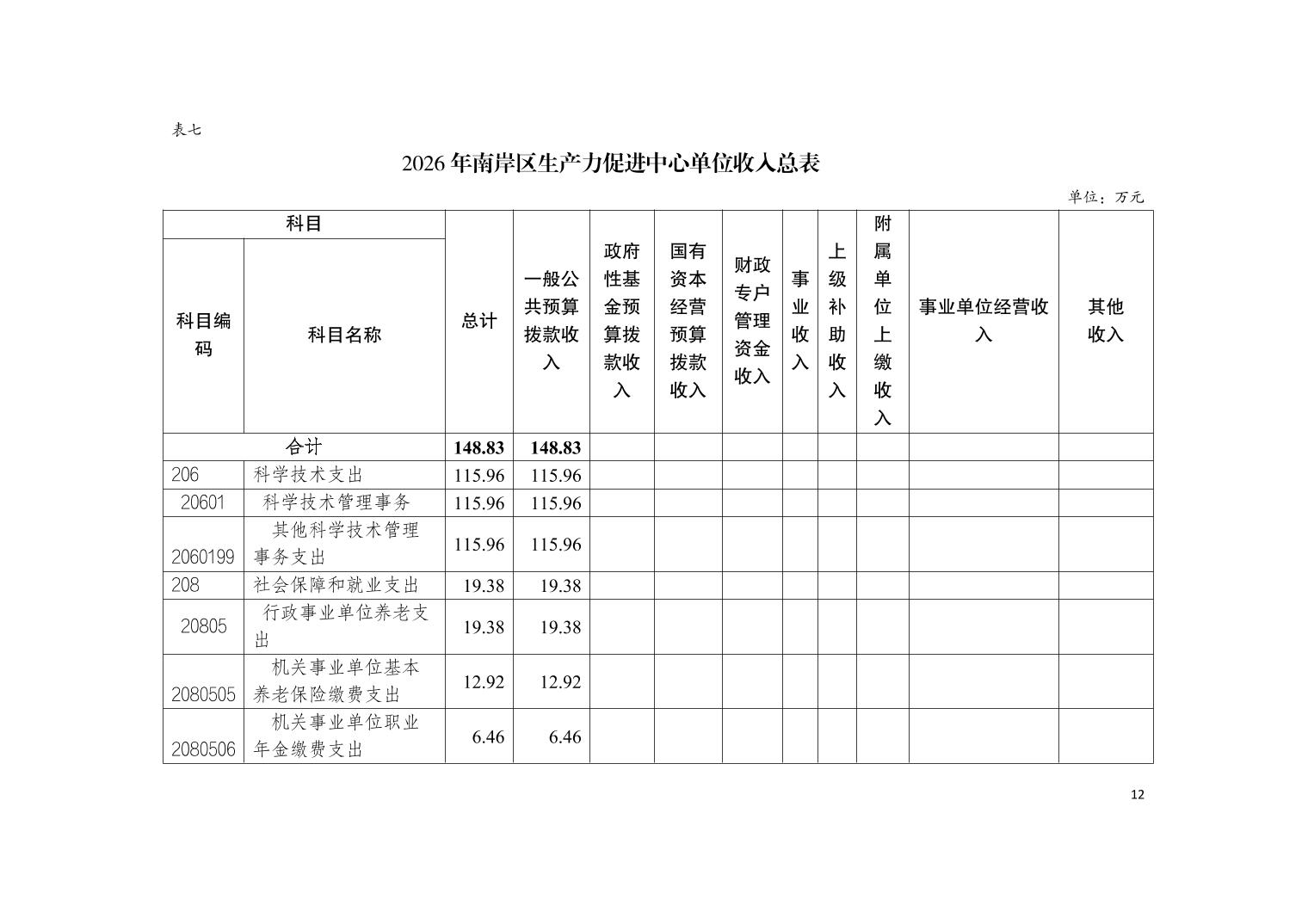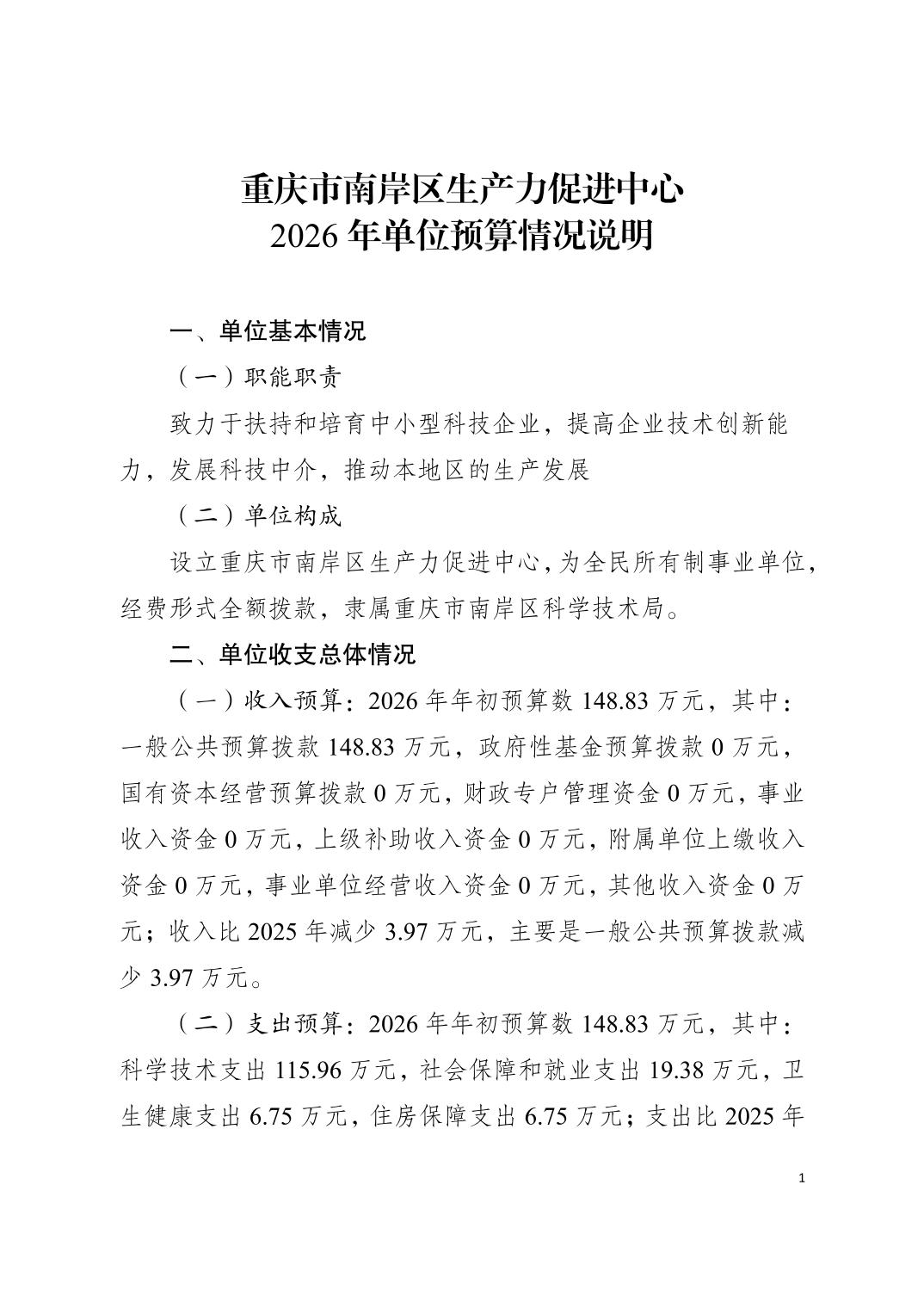 重庆市南岸区生产力促进中心2026年单位预算情况说明
