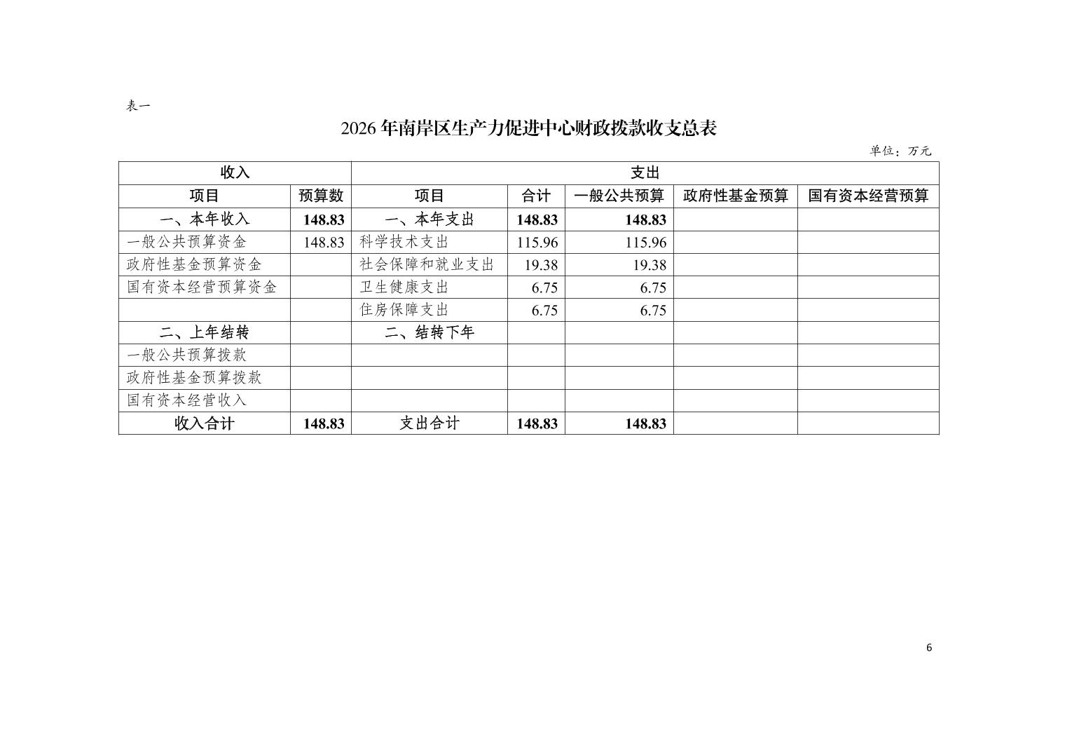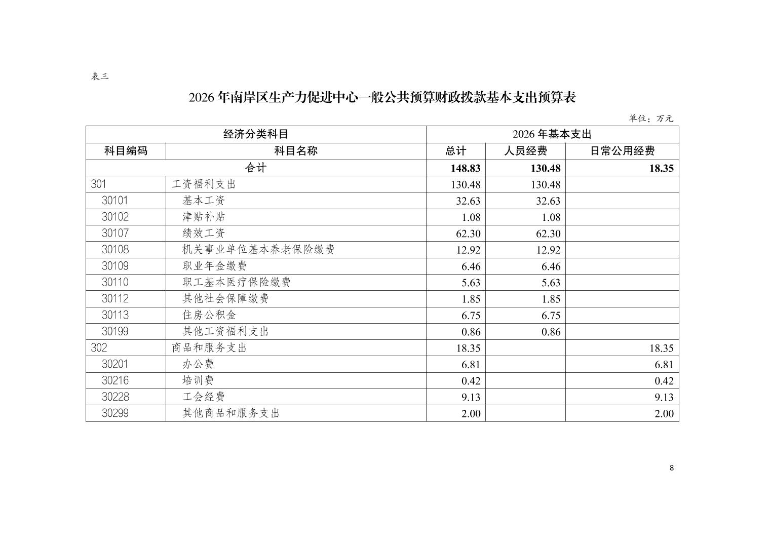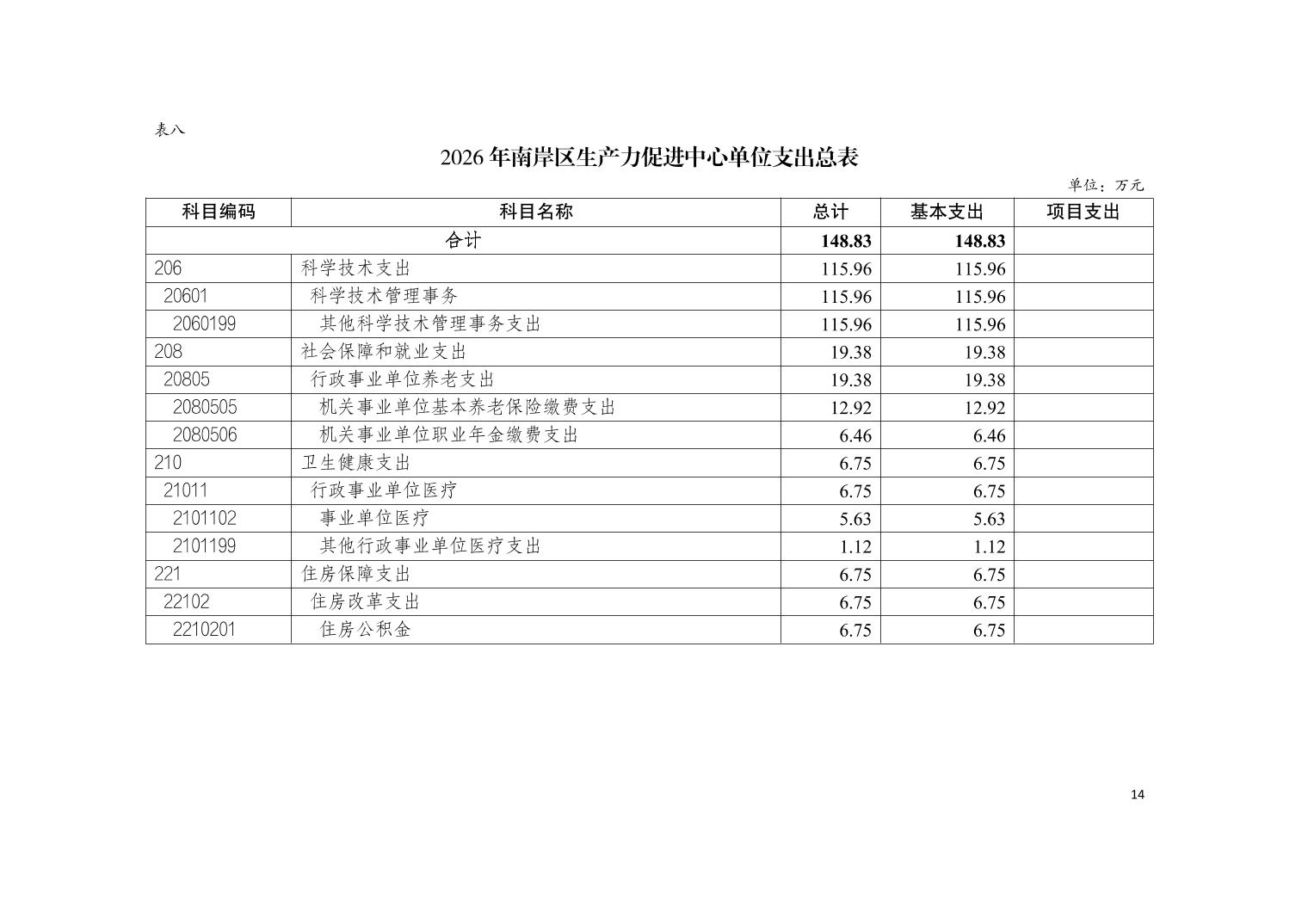 重庆市南岸区生产力促进中心2026年单位预算情况说明