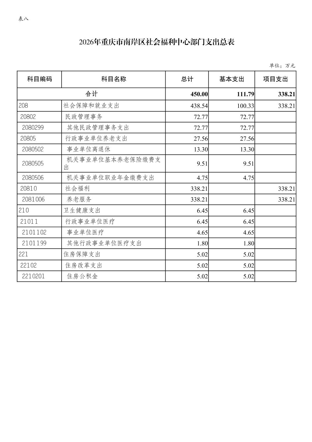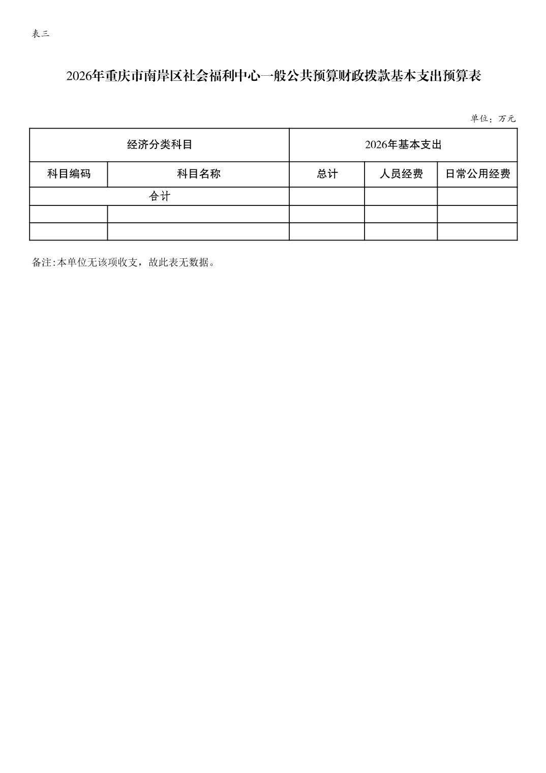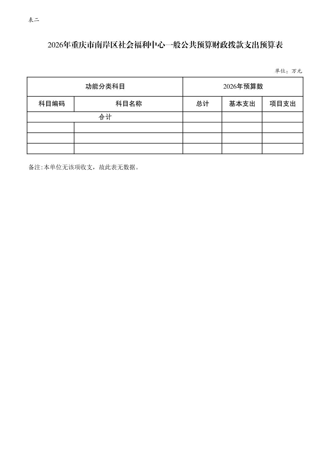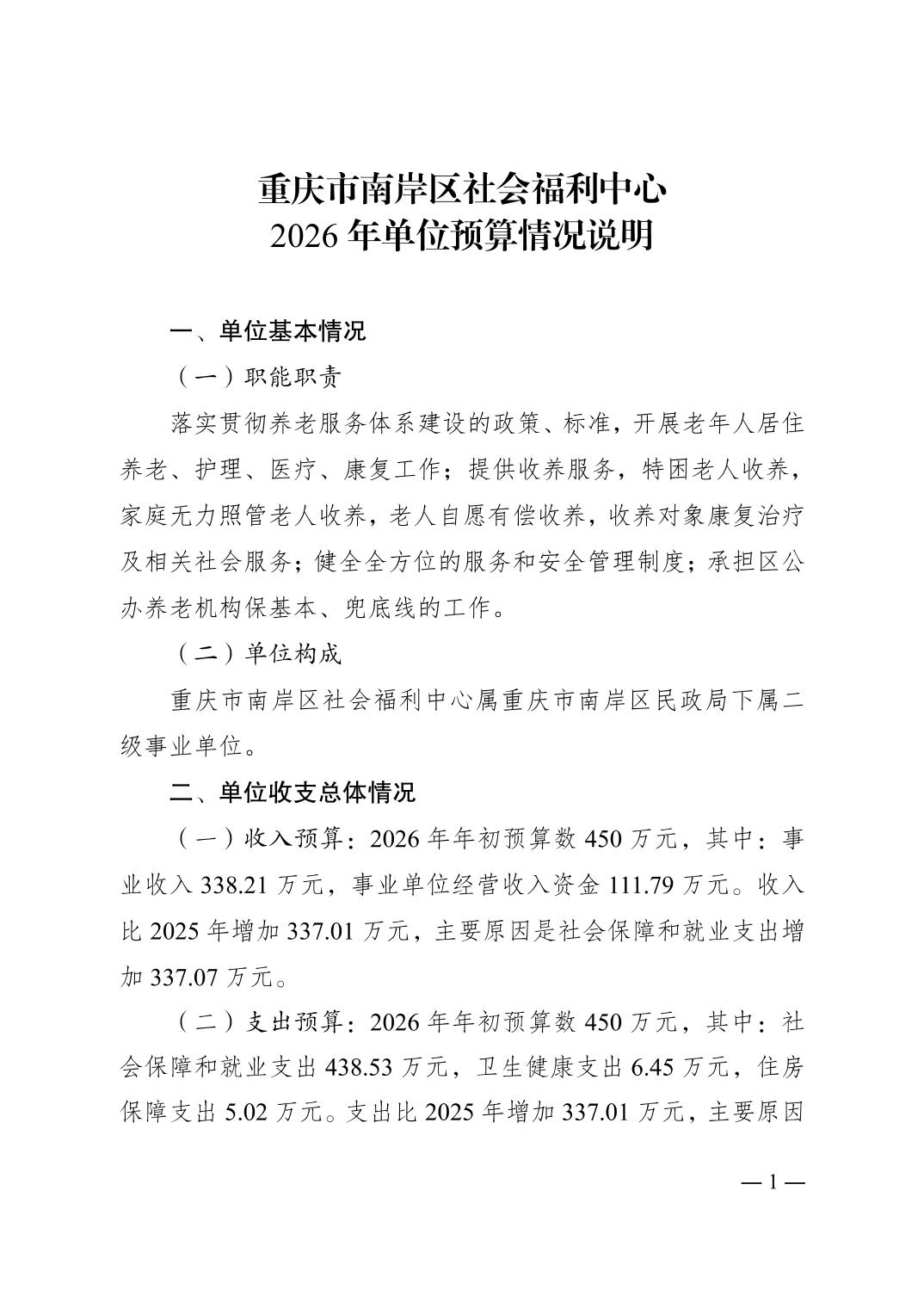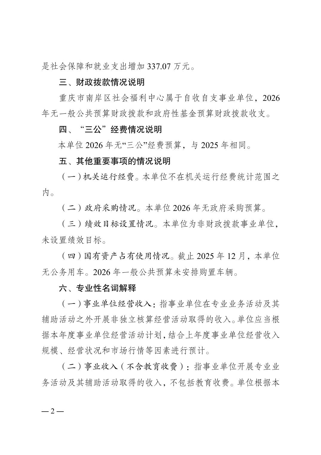 重庆市南岸区社会福利中心2026年单位预算情况说明