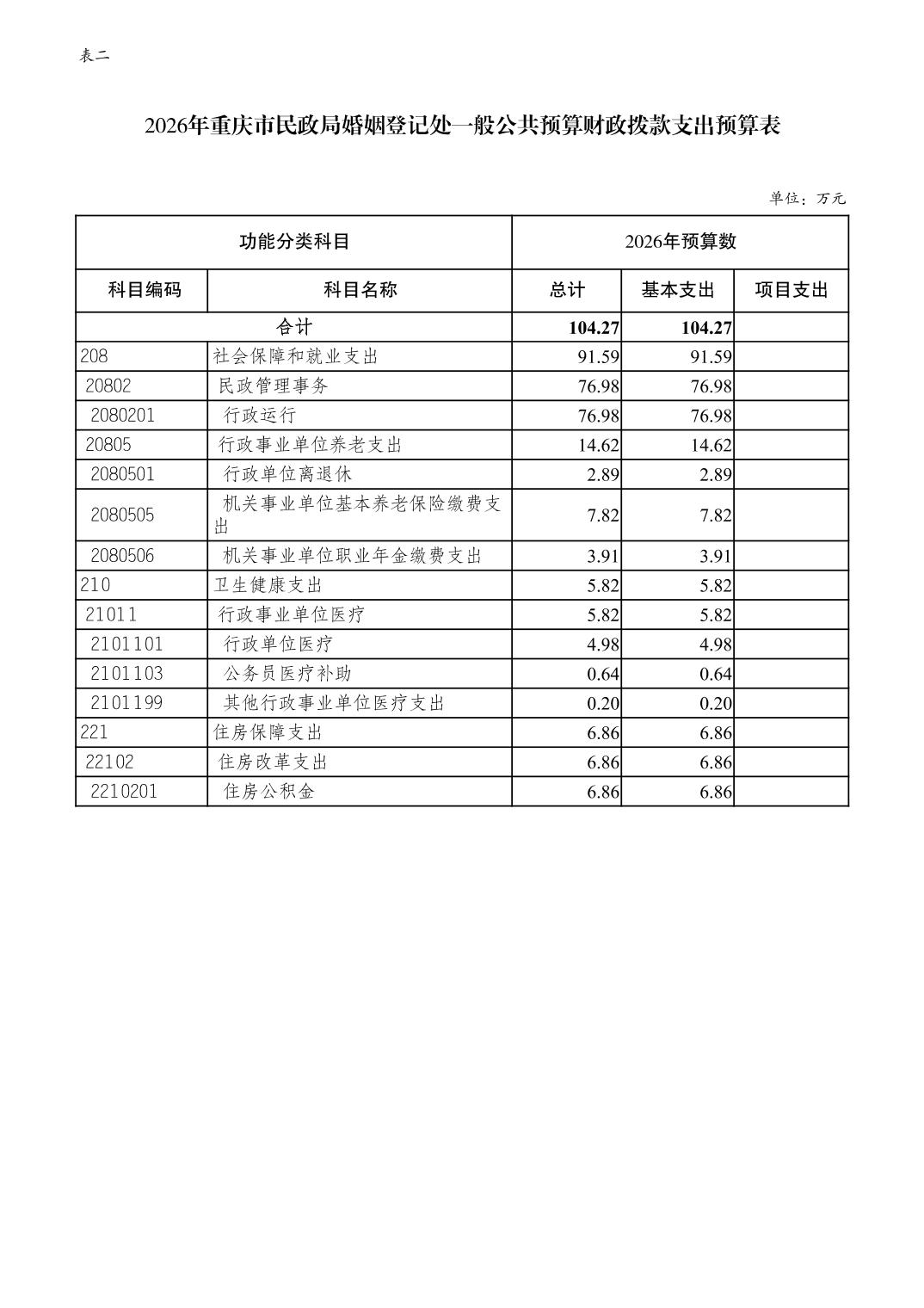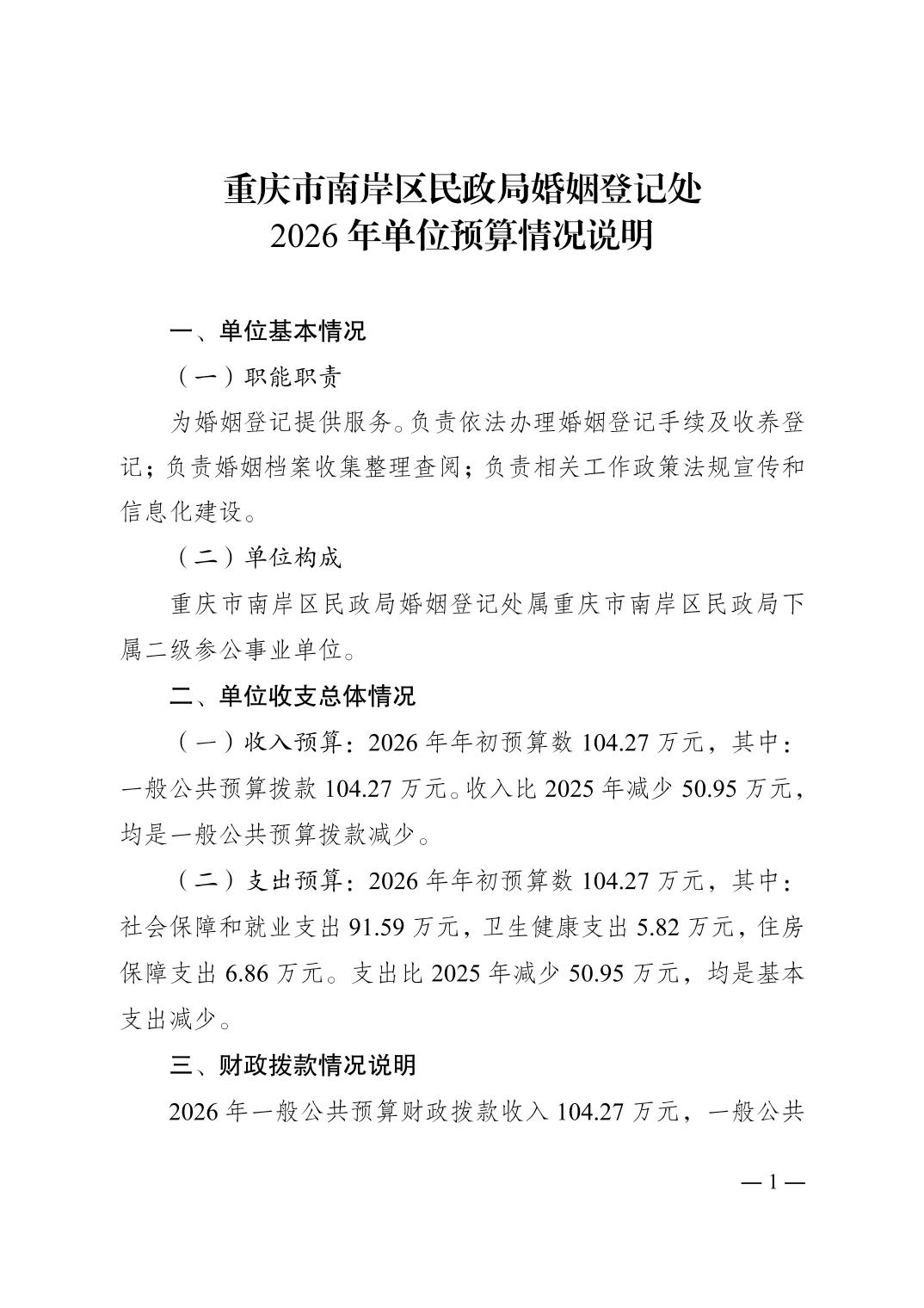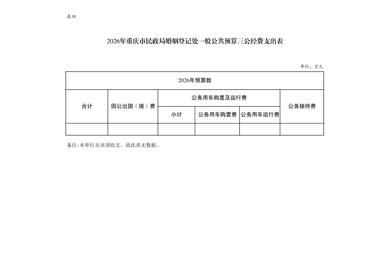 重庆市民政局婚姻登记处2026年单位预算情况说明