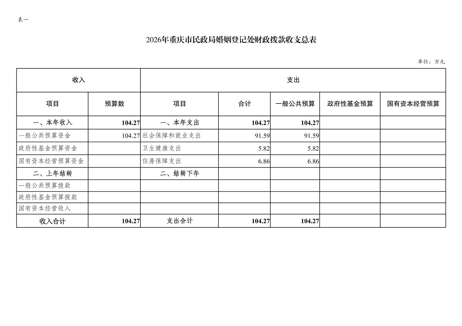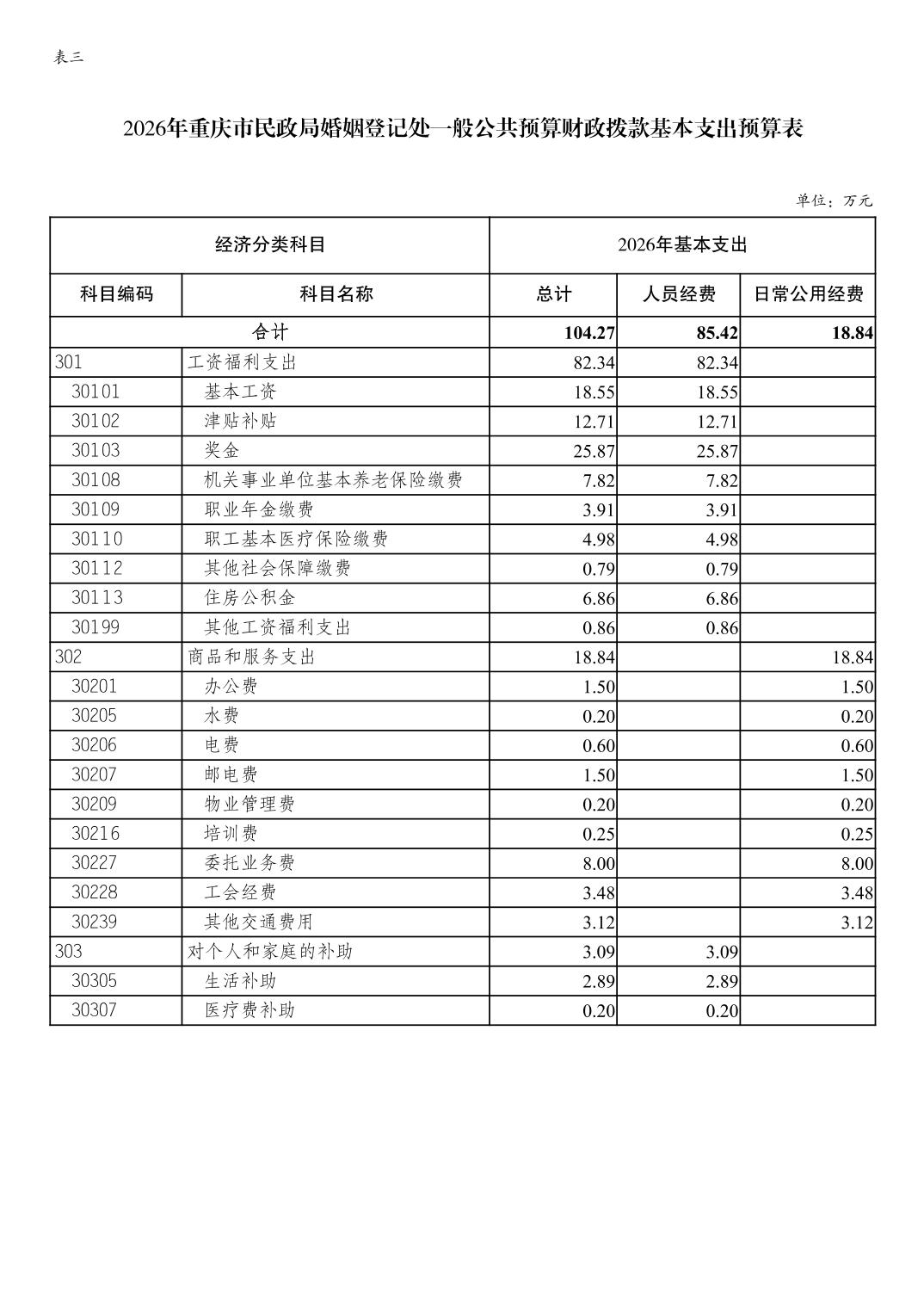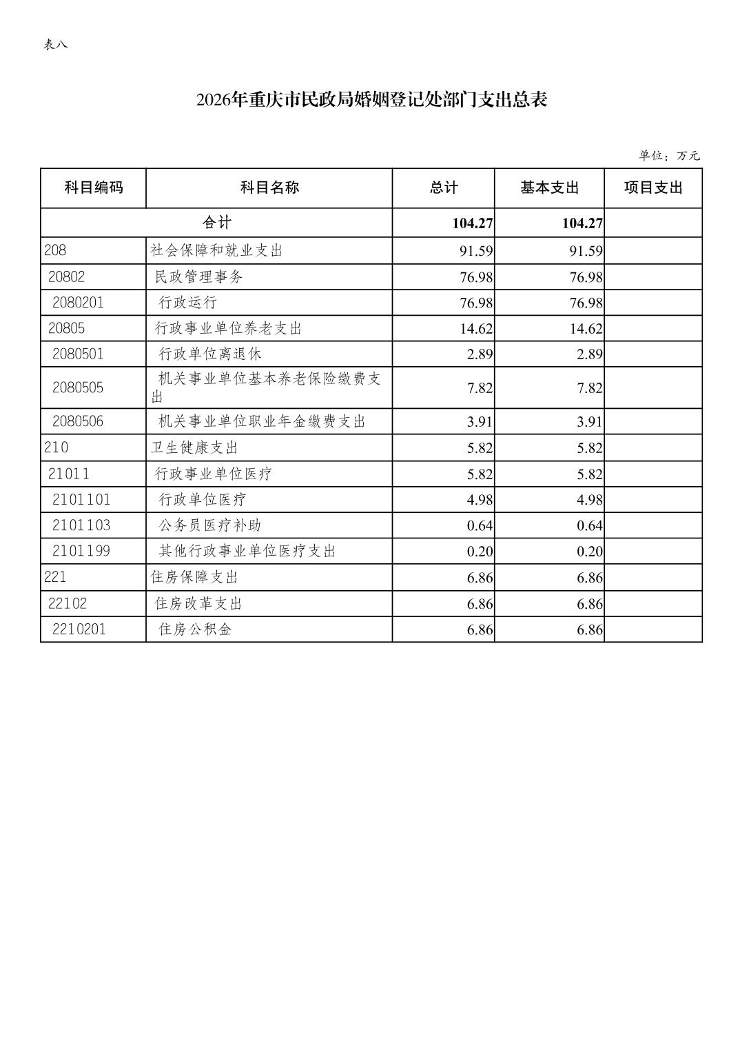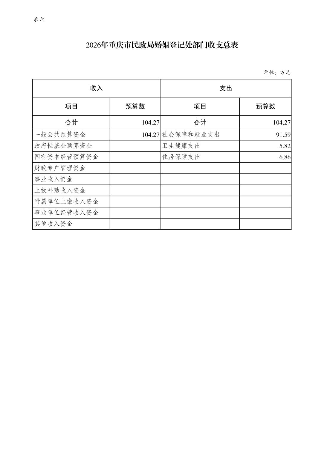 重庆市民政局婚姻登记处2026年单位预算情况说明