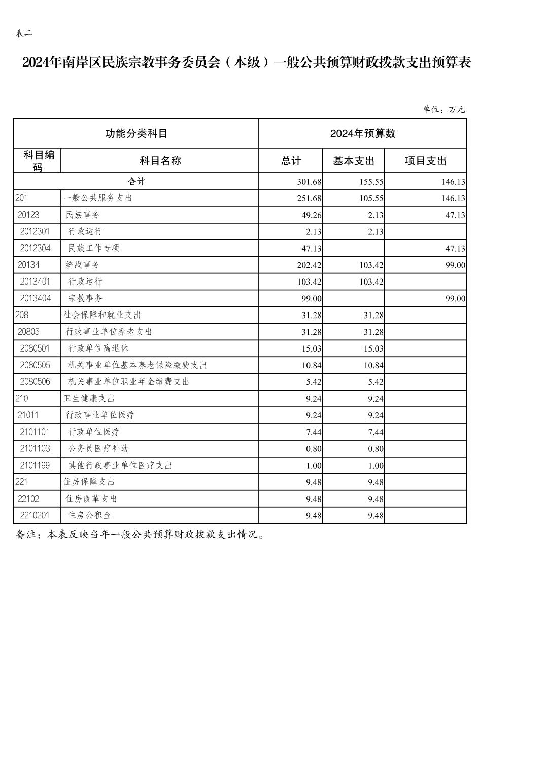 重庆市南岸区民族宗教事务委员会(本级)2024年单位预算情况说明