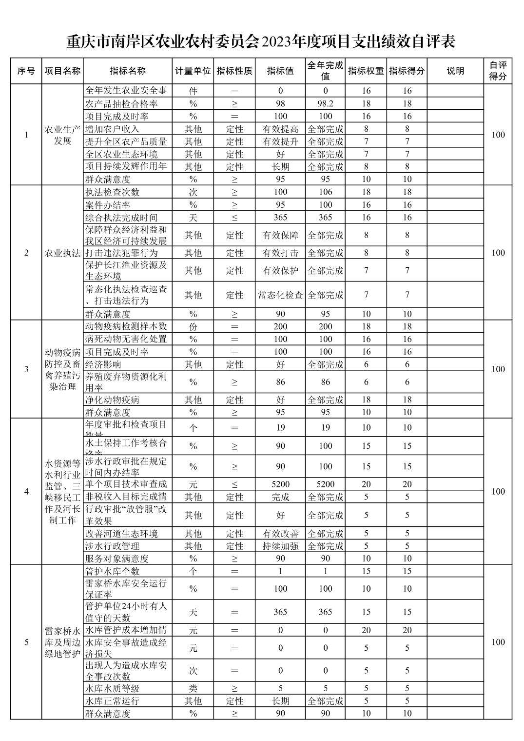 重庆市南岸区农业农村委员会2023年度决算公开说明