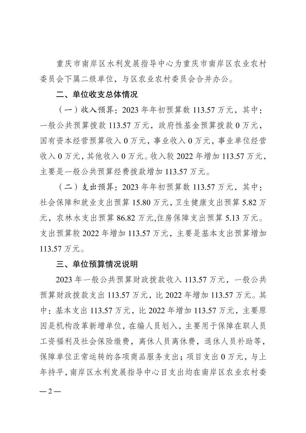 重庆市南岸区水利发展指导中心2023年单位预算情况说明
