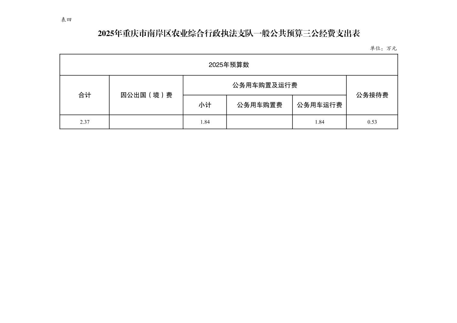 重庆市南岸区农业综合行政执法支队2025年单位预算情况说明