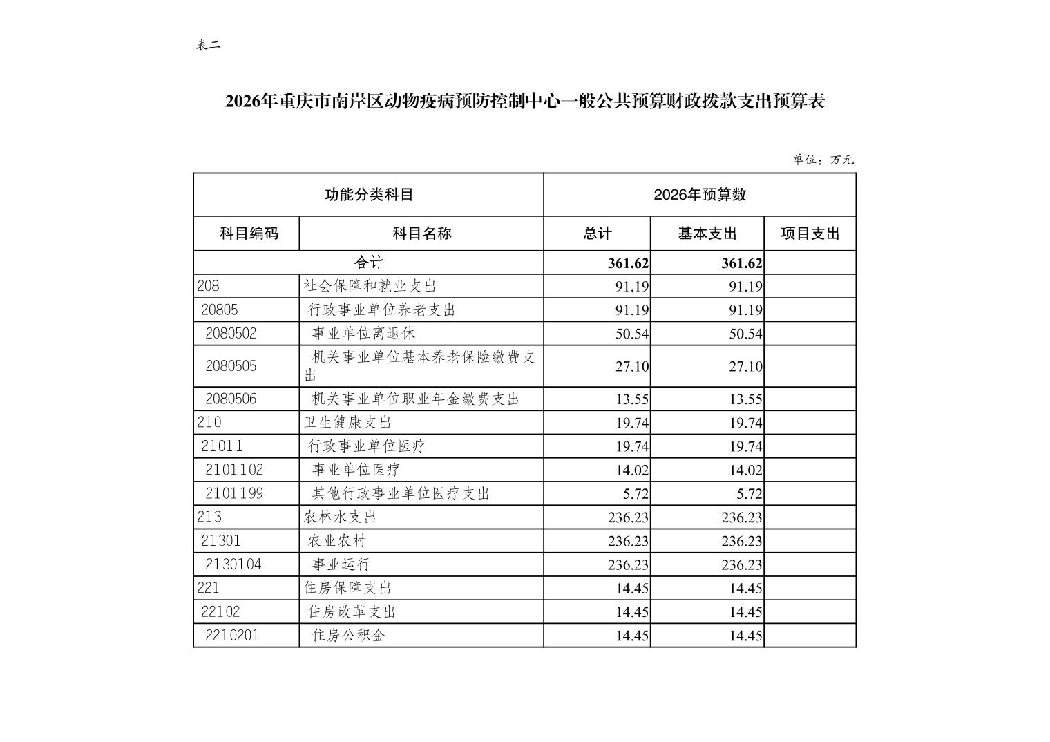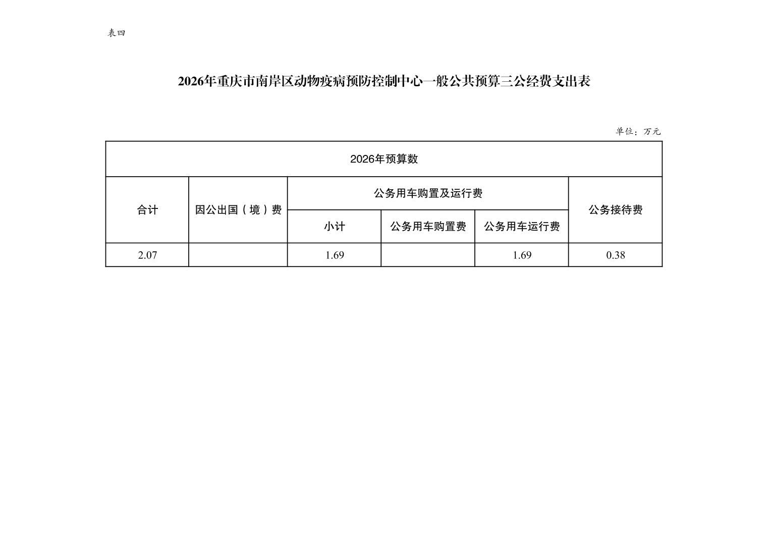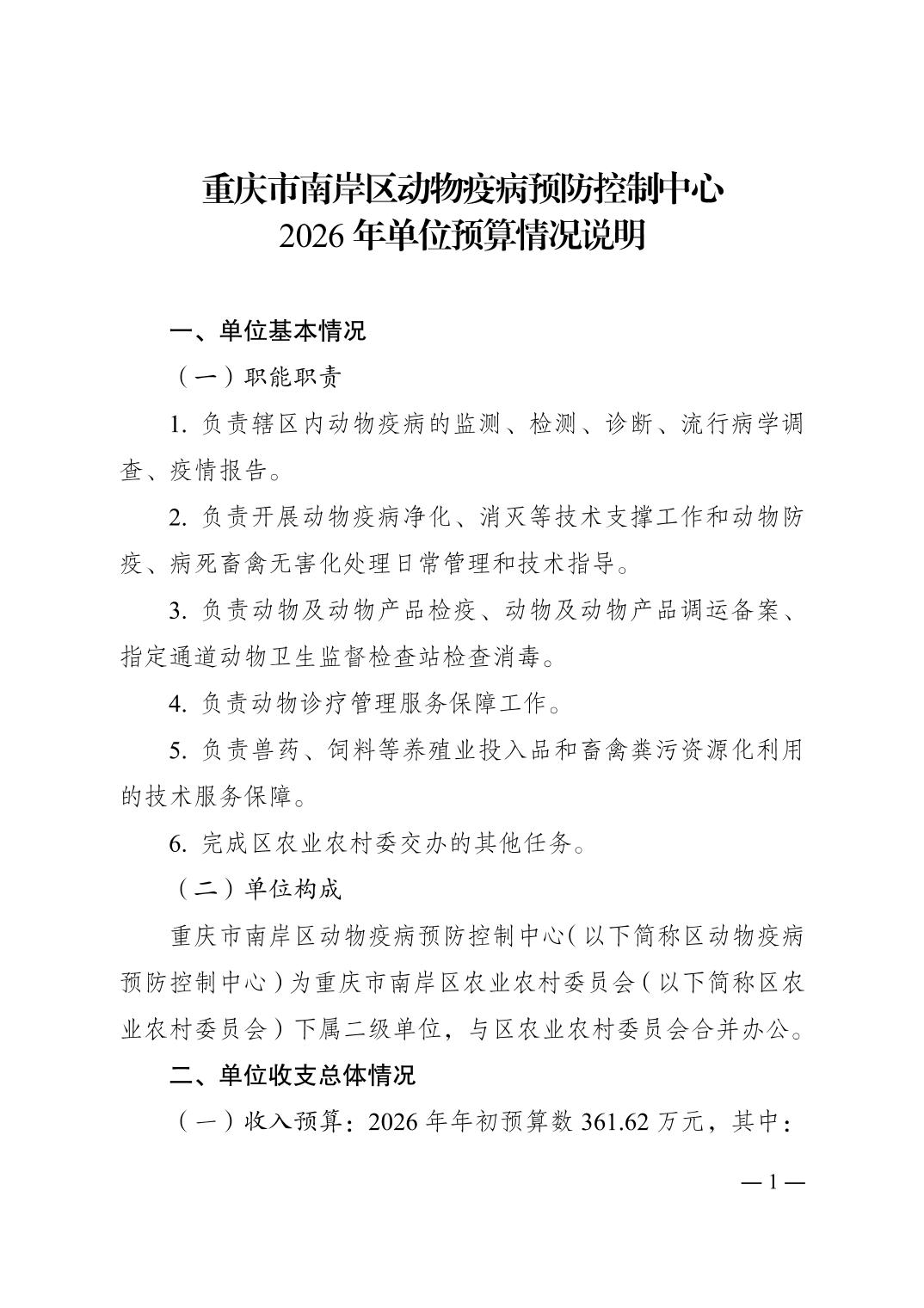 重庆市南岸区动物疫病预防控制中心2026年单位预算情况说明