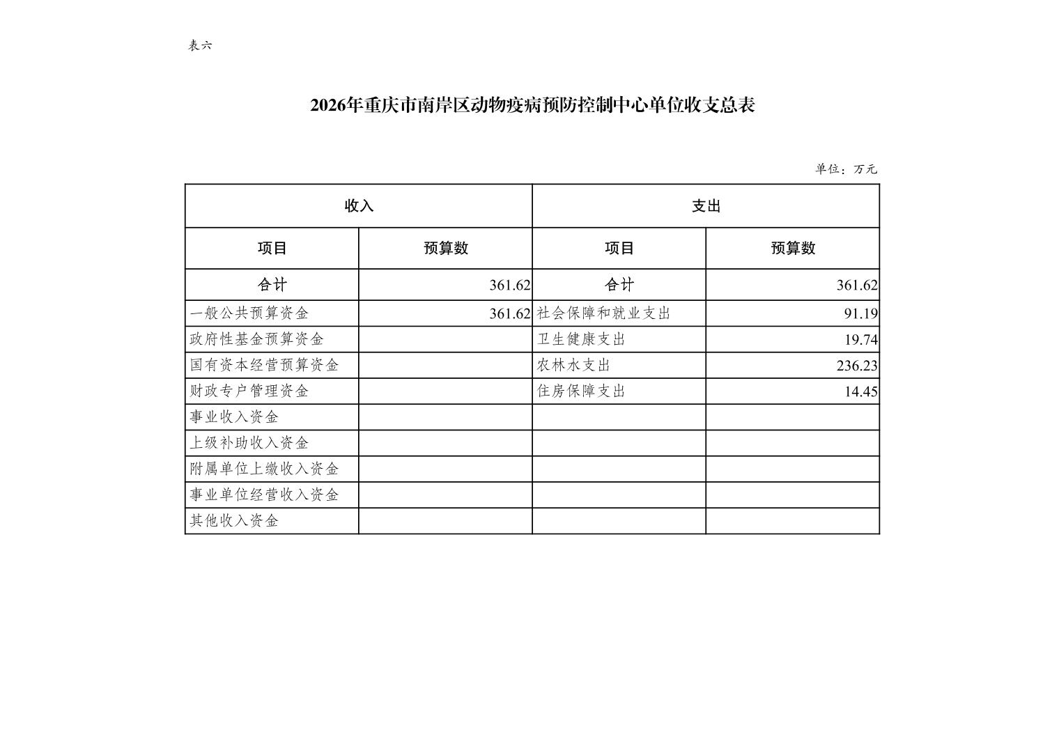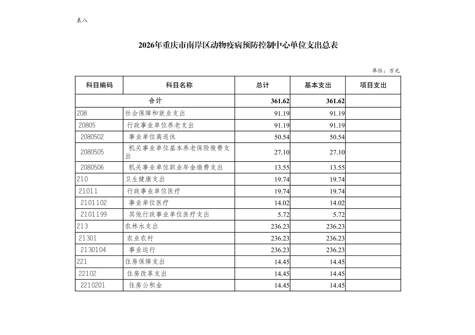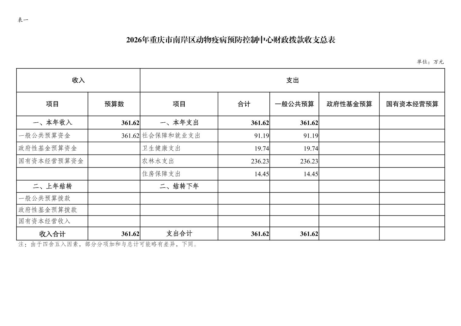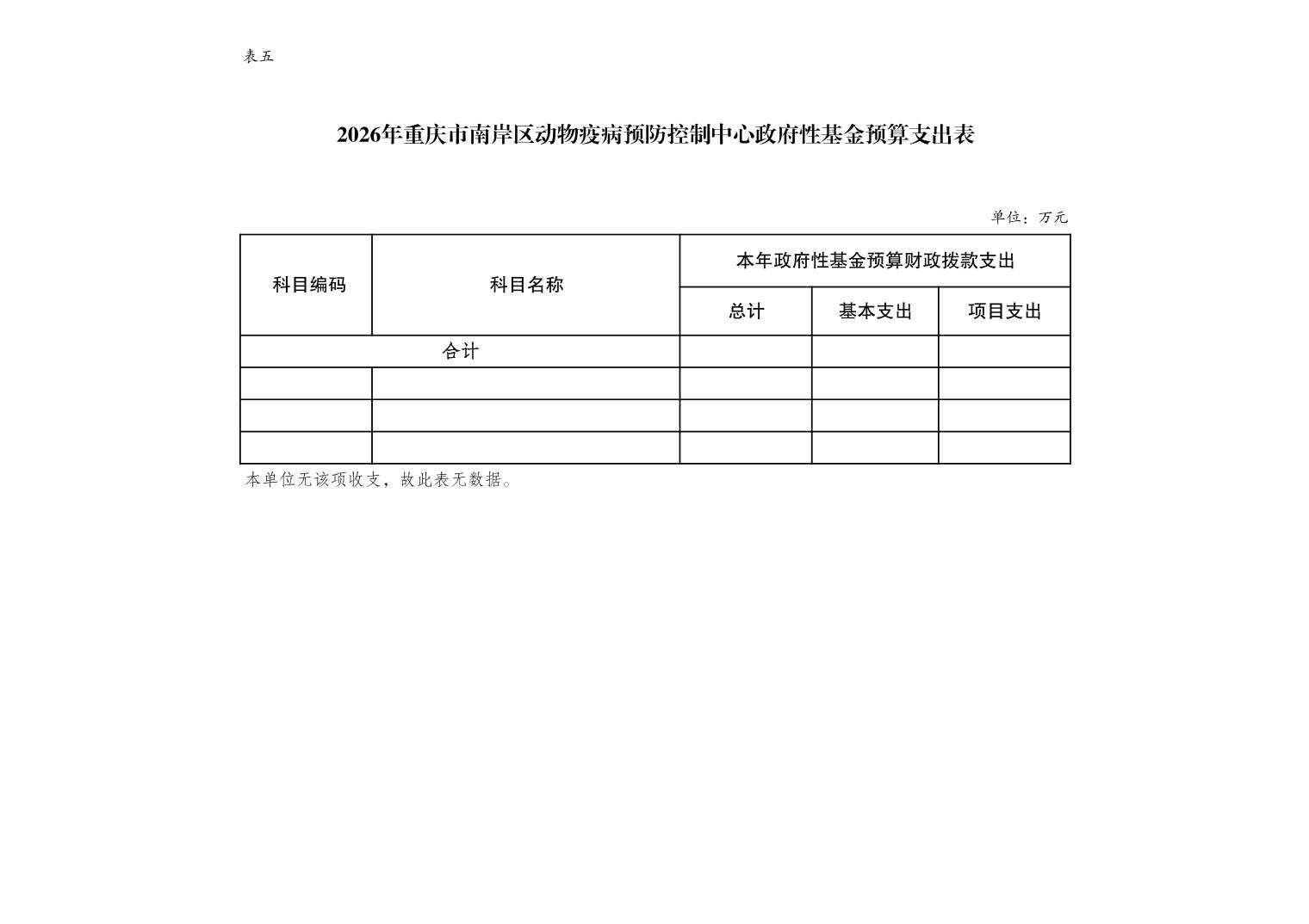 重庆市南岸区动物疫病预防控制中心2026年单位预算情况说明