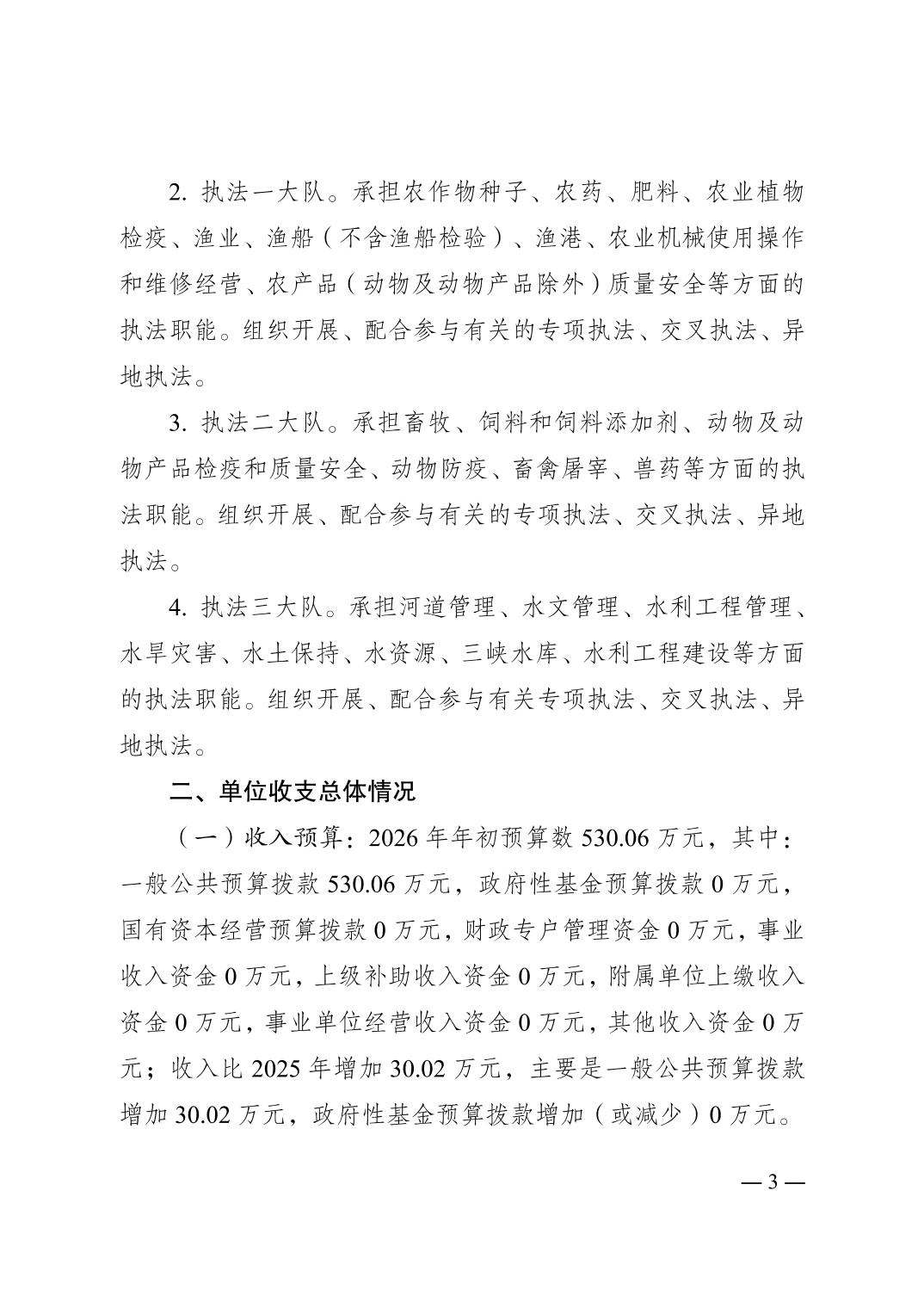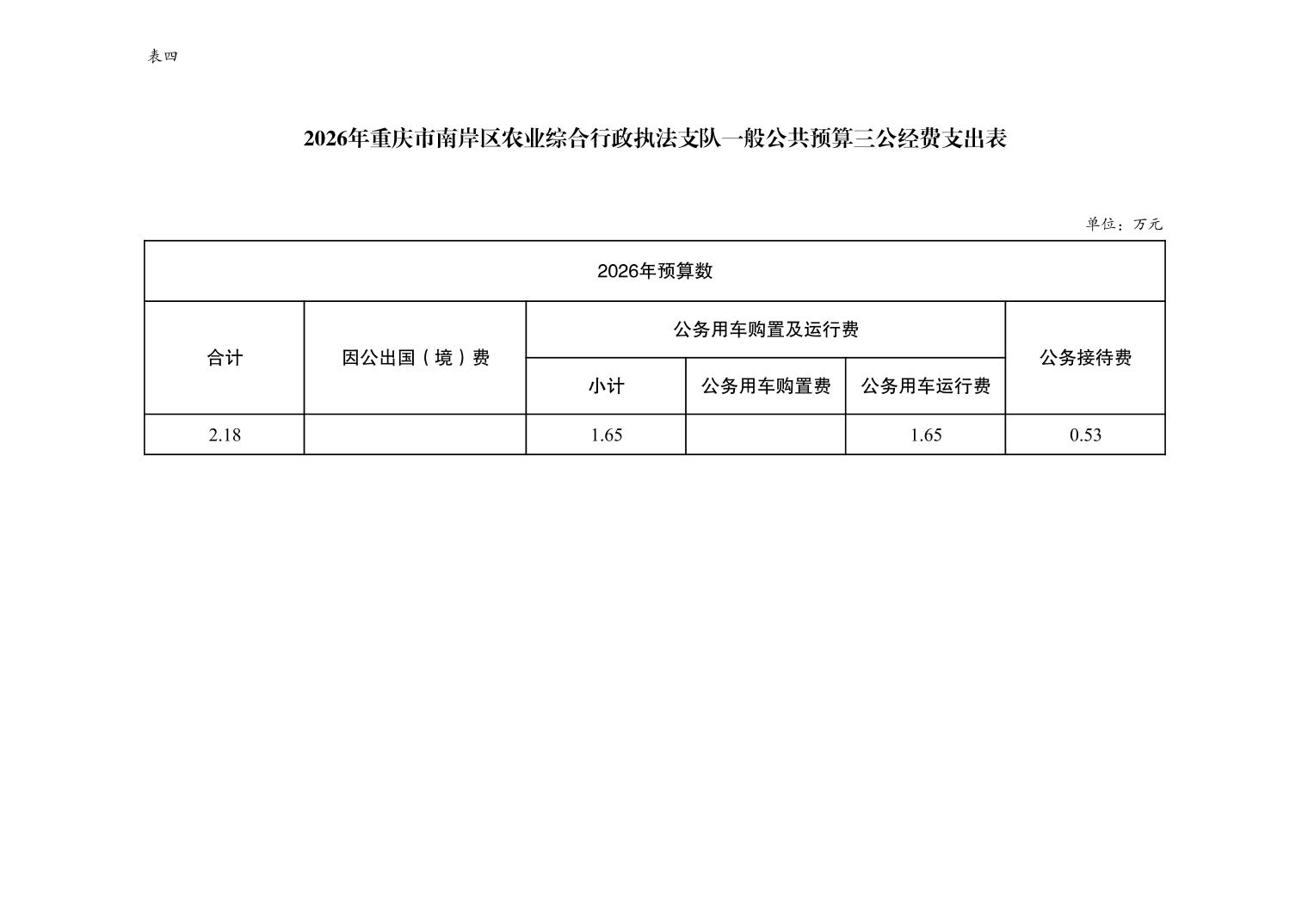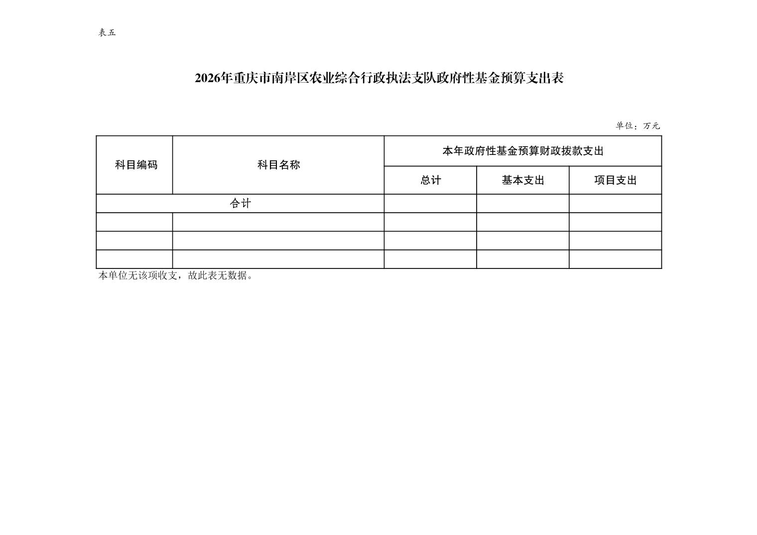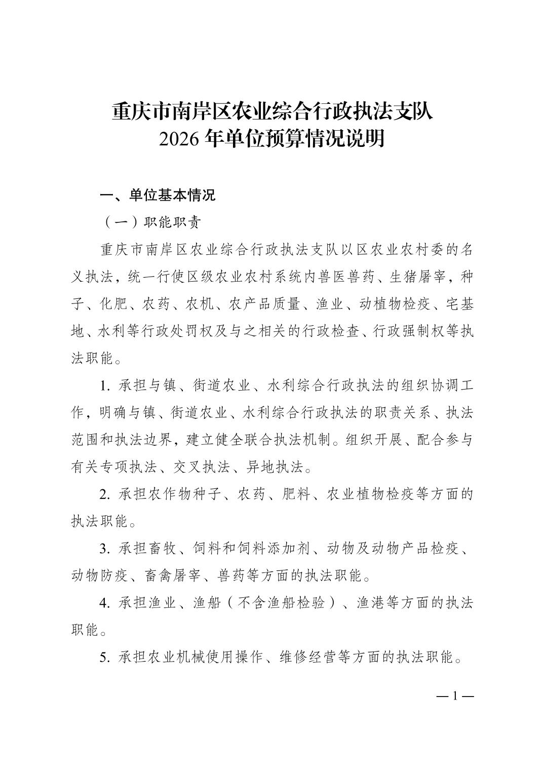 重庆市南岸区农业综合行政执法支队2026年单位预算情况说明