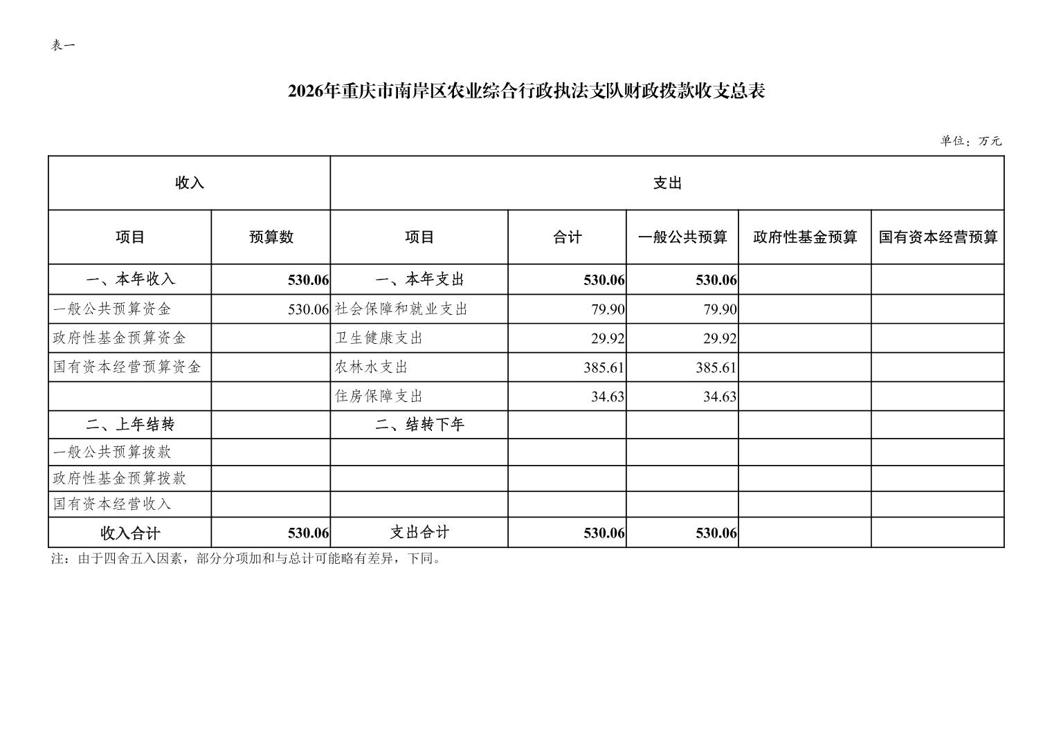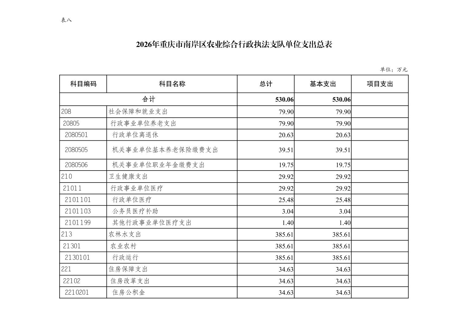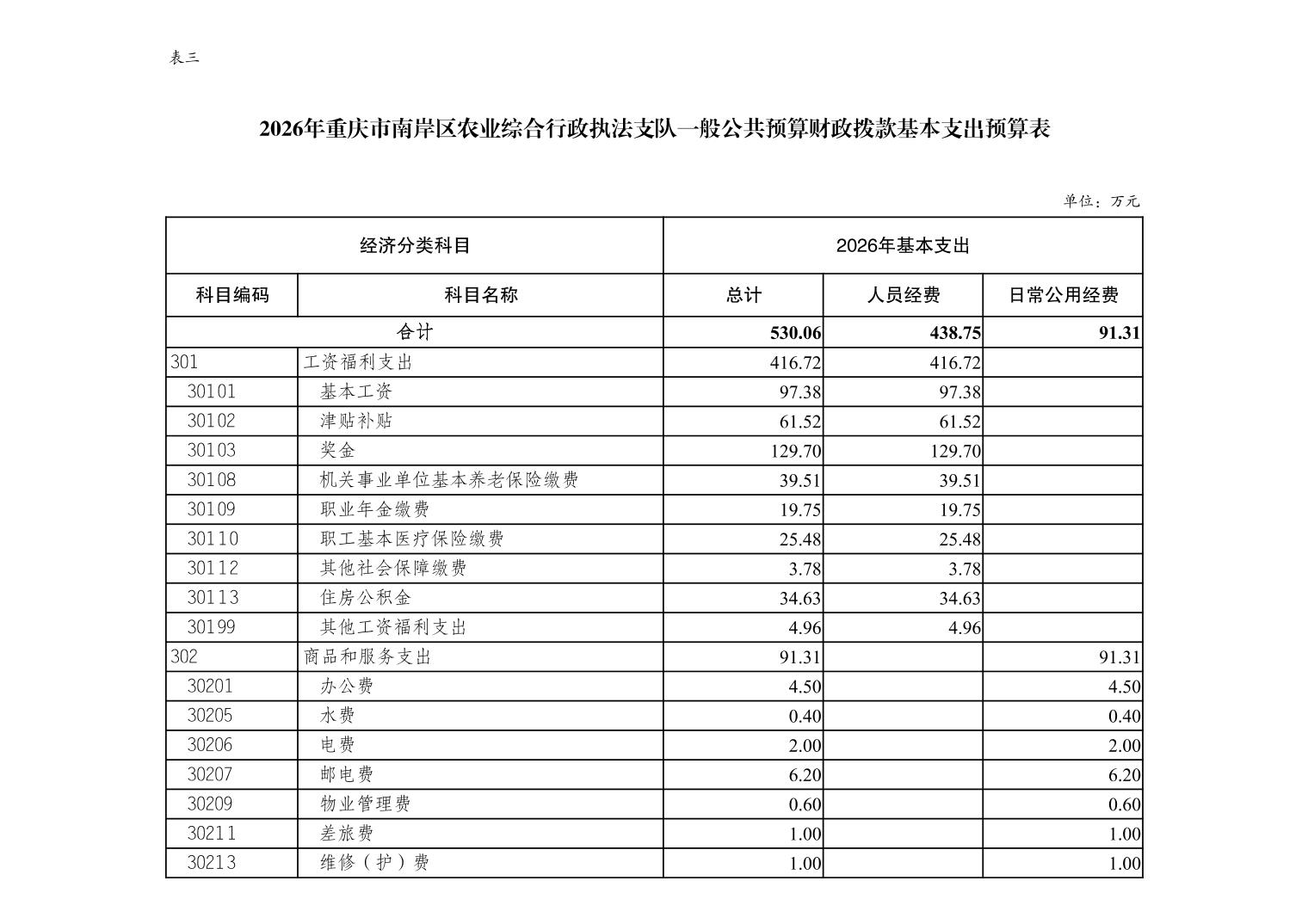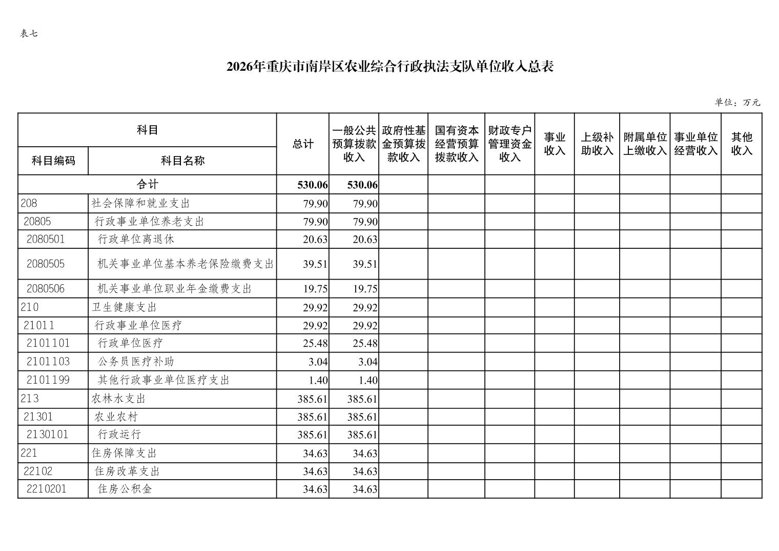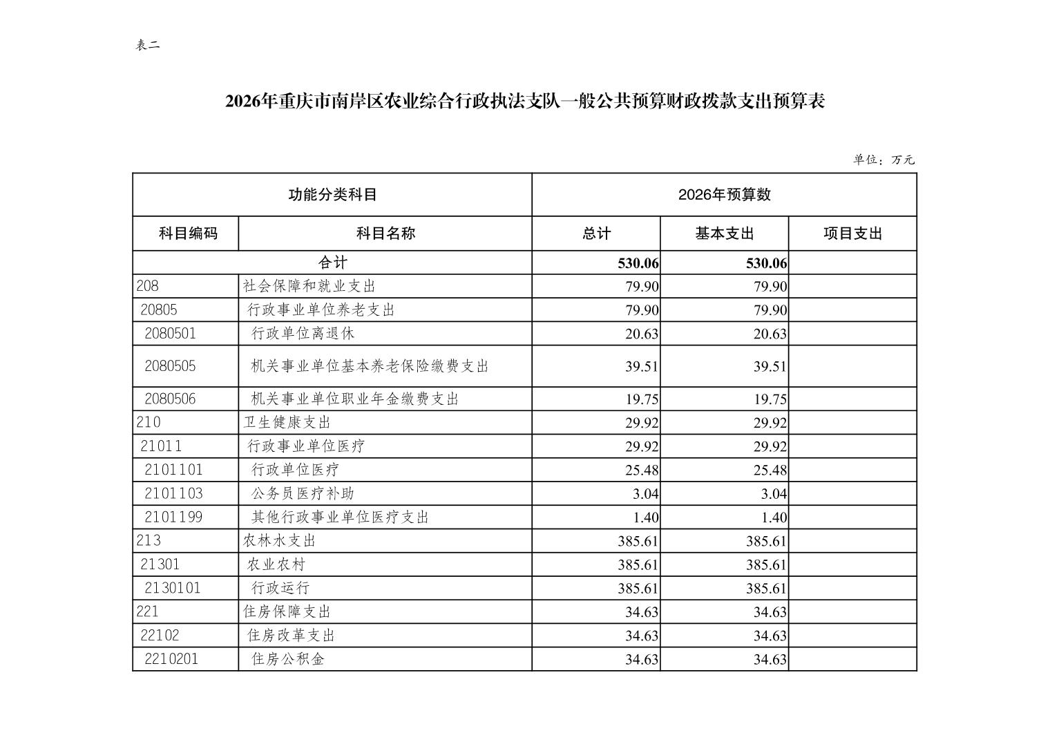 重庆市南岸区农业综合行政执法支队2026年单位预算情况说明