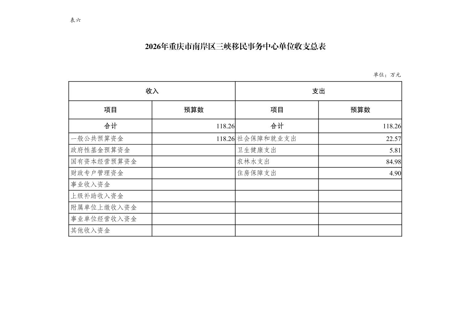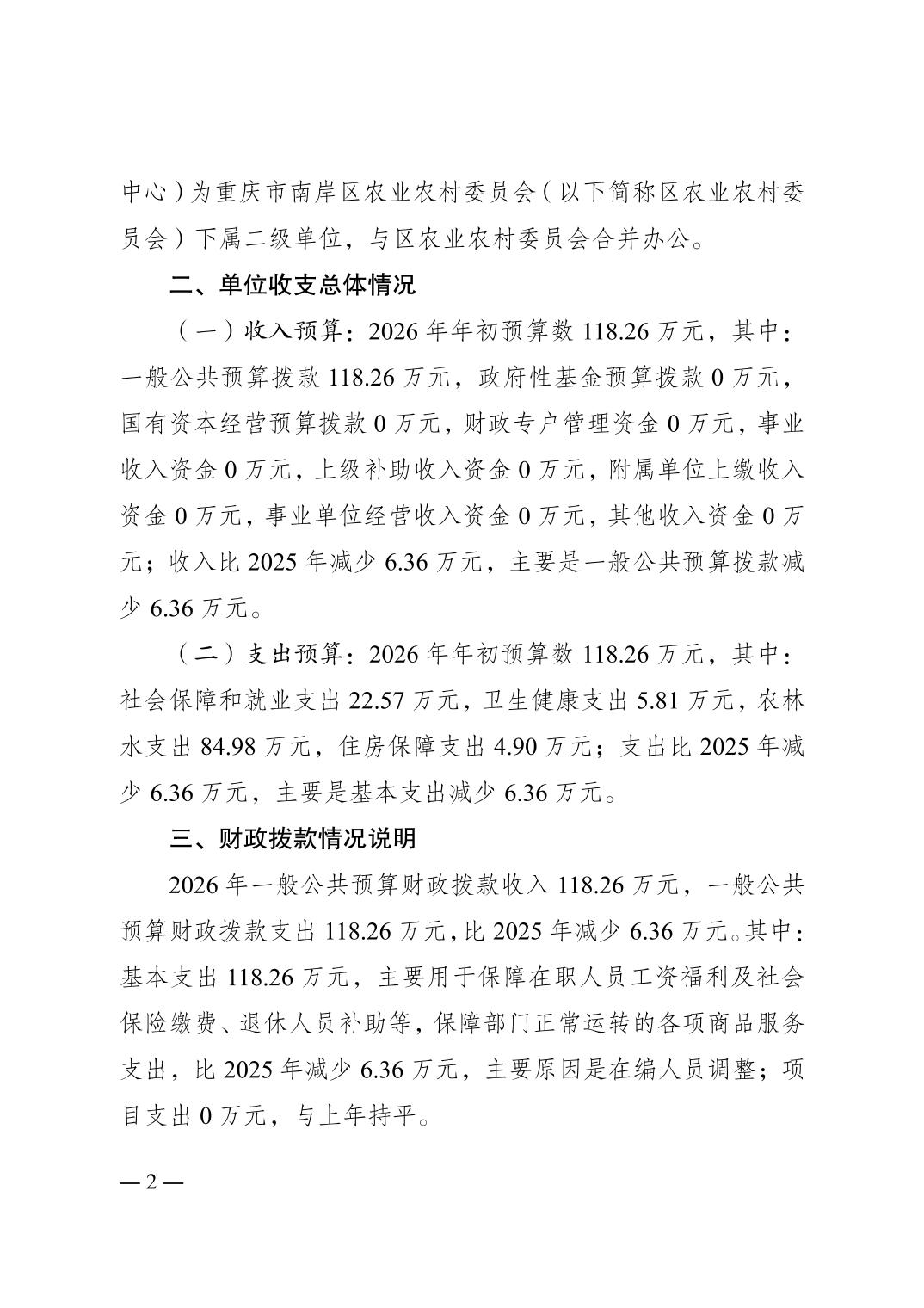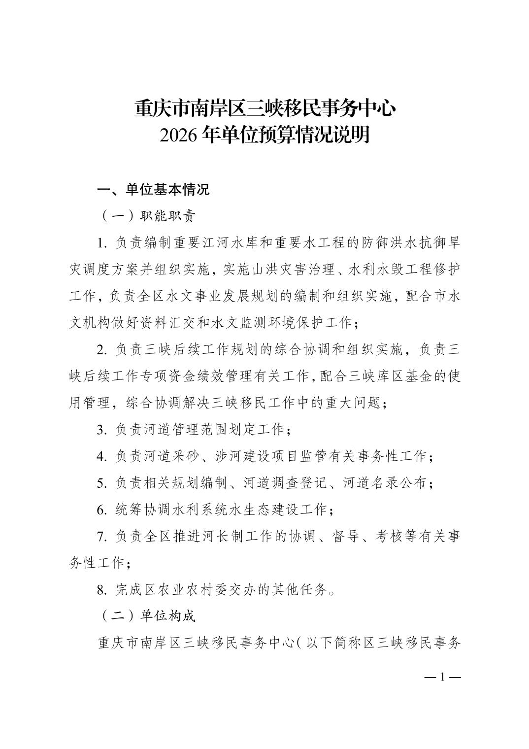 重庆市南岸区三峡移民事务中心2026年单位预算情况说明