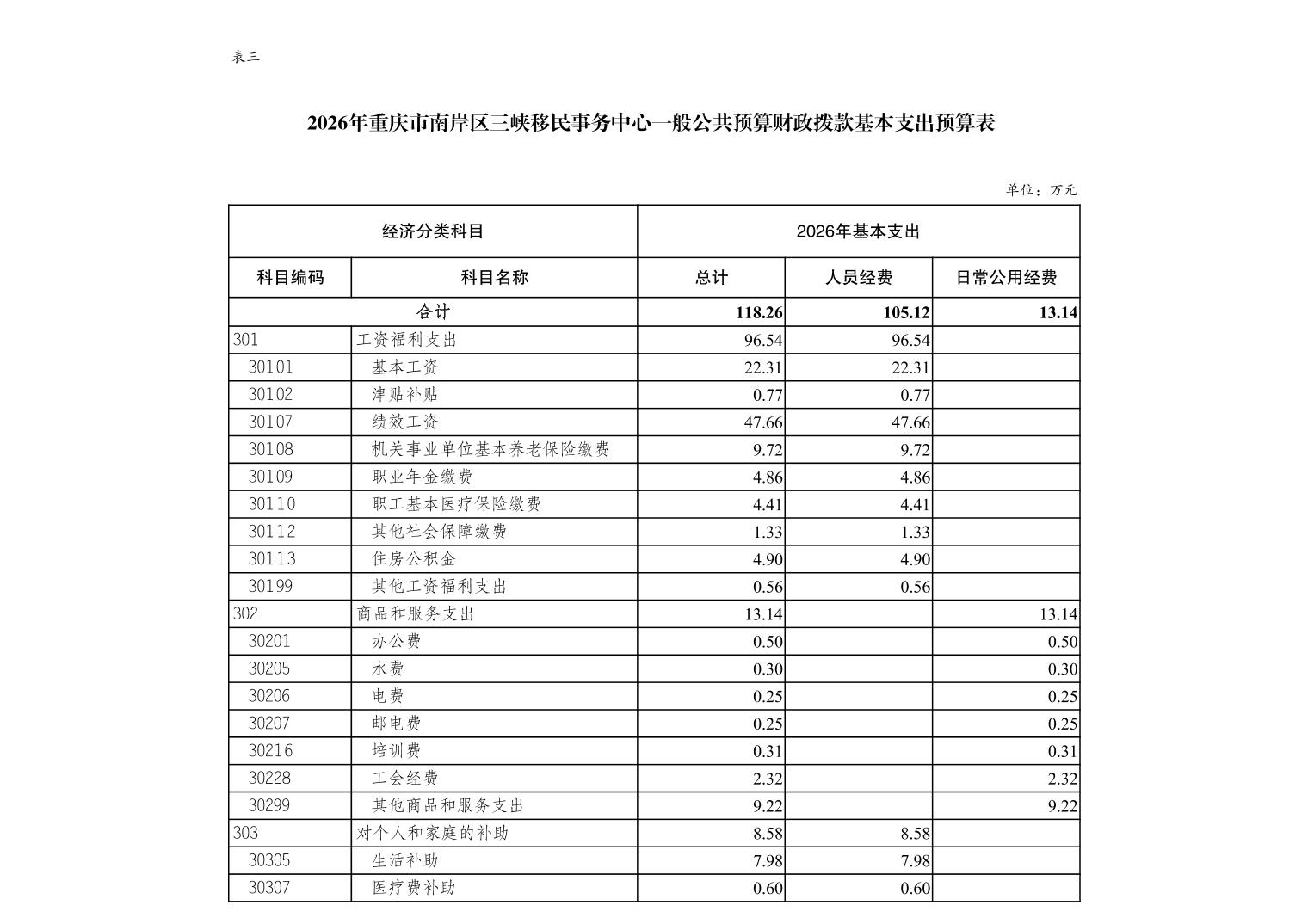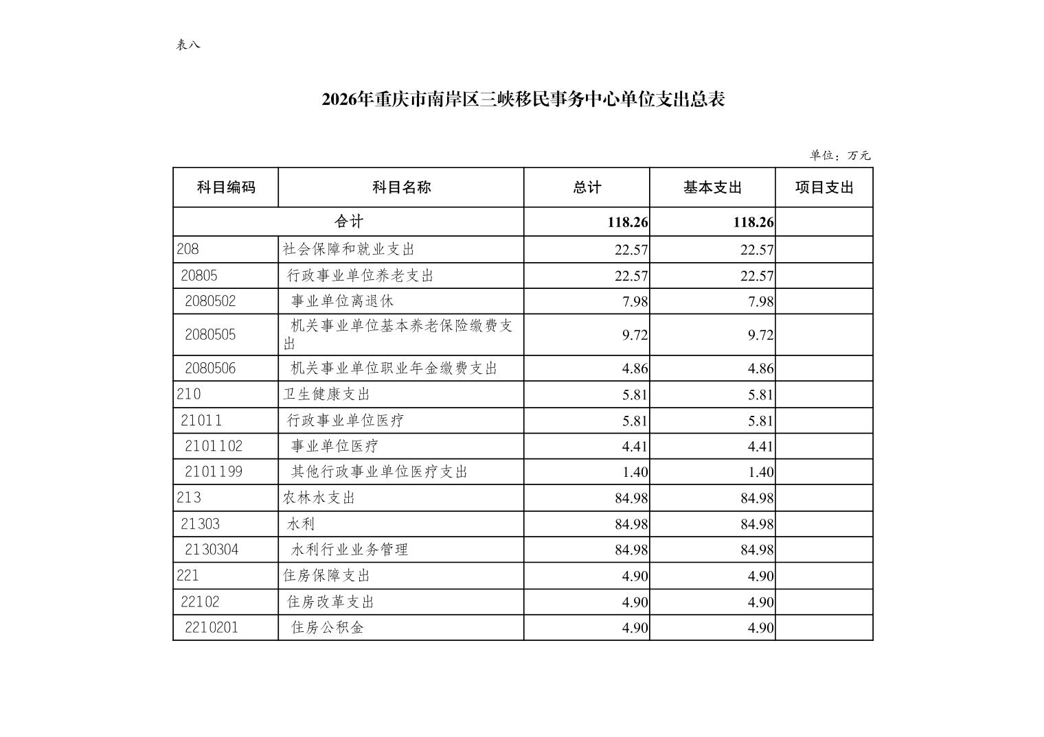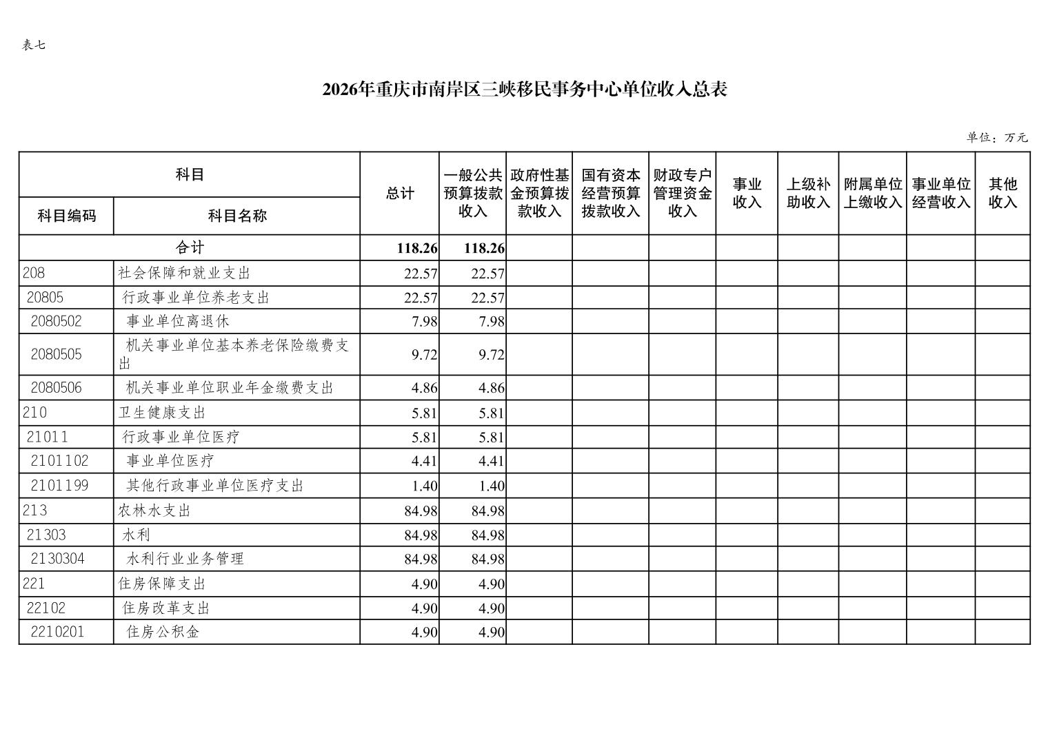 重庆市南岸区三峡移民事务中心2026年单位预算情况说明