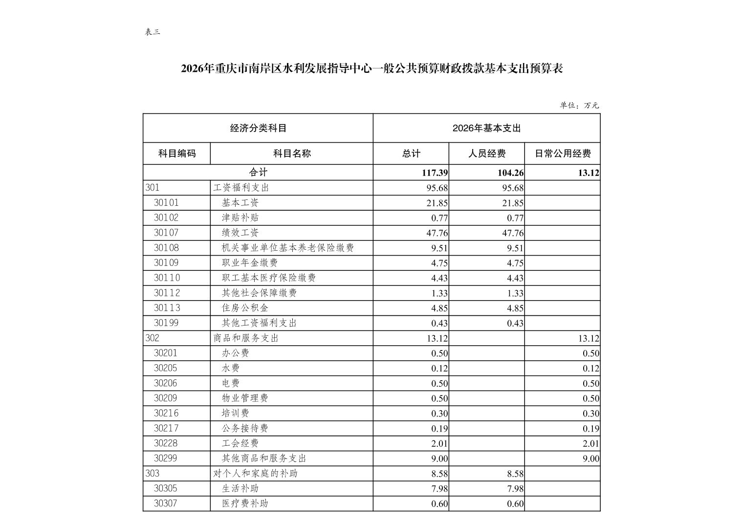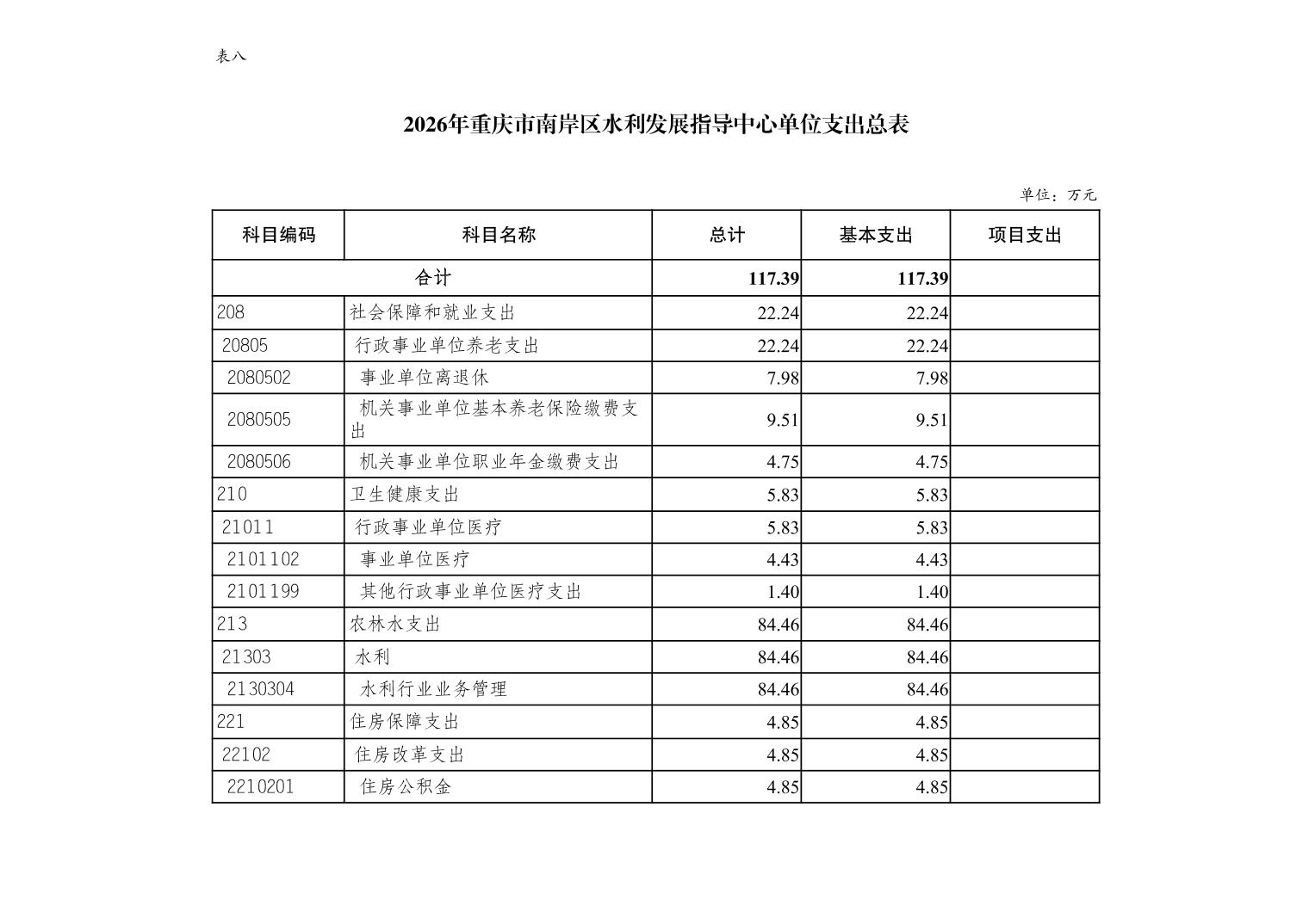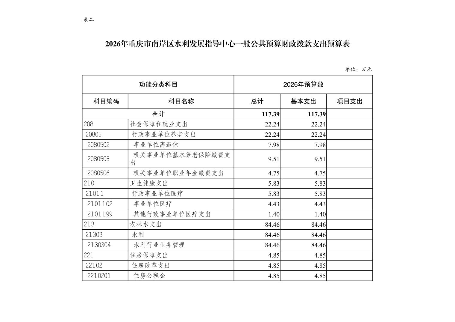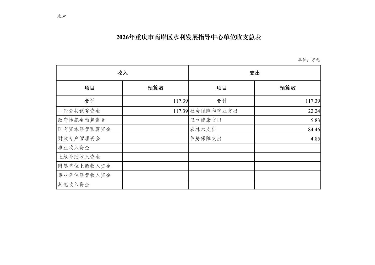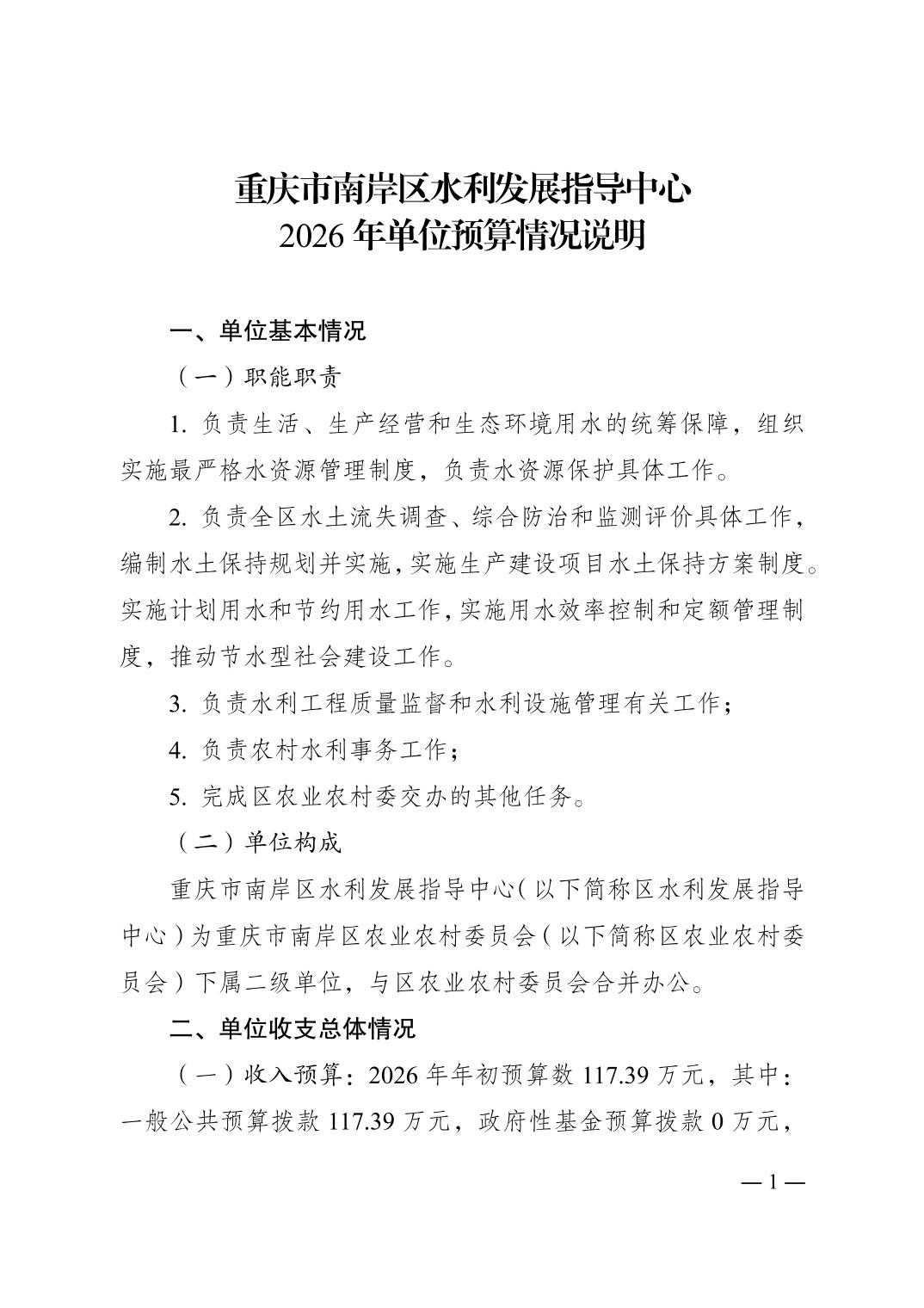 重庆市南岸区水利发展指导中心2026年单位预算情况说明