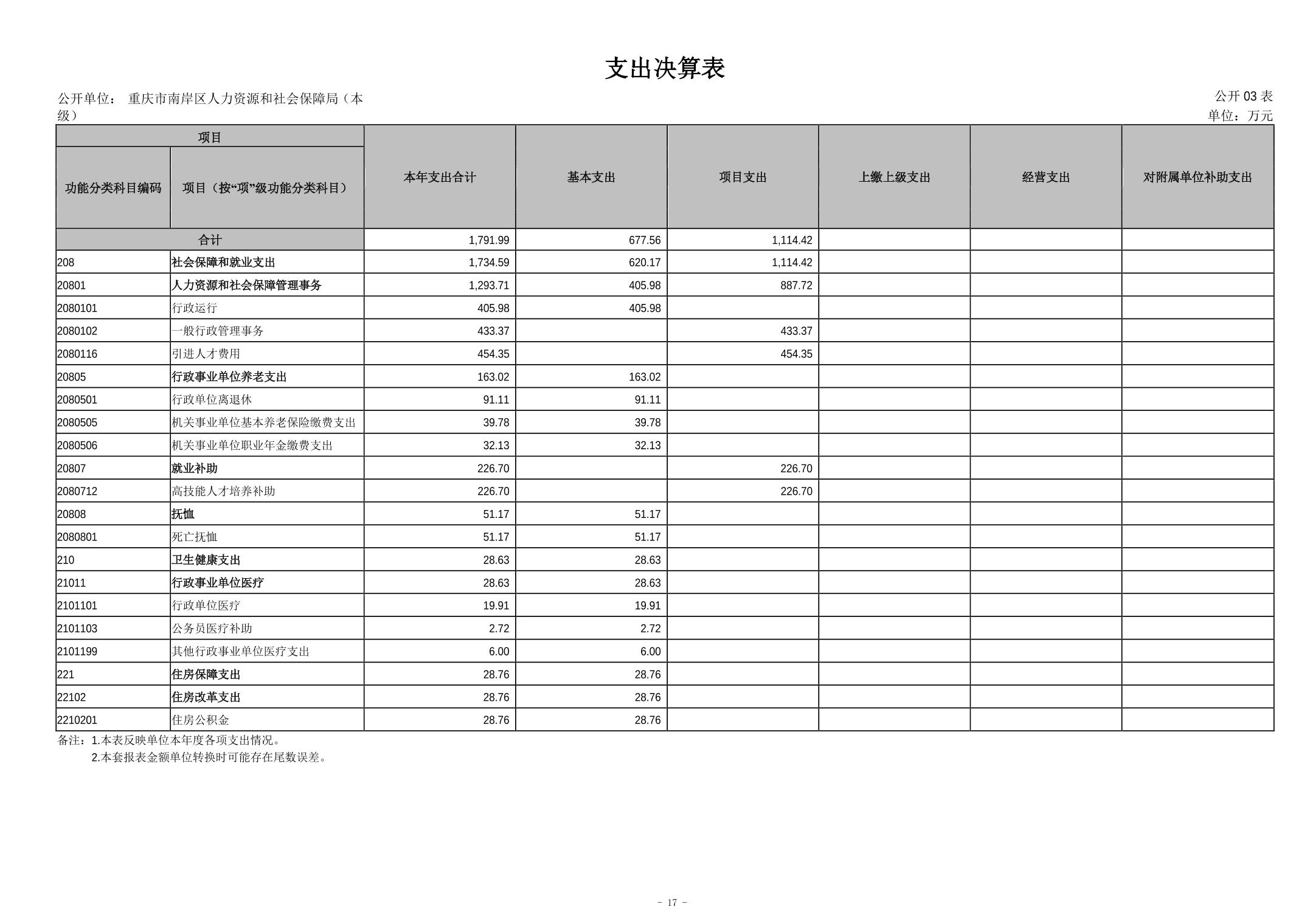区人力社保局>政务公开>法定主动公开内容>预算/决算>财政决算
