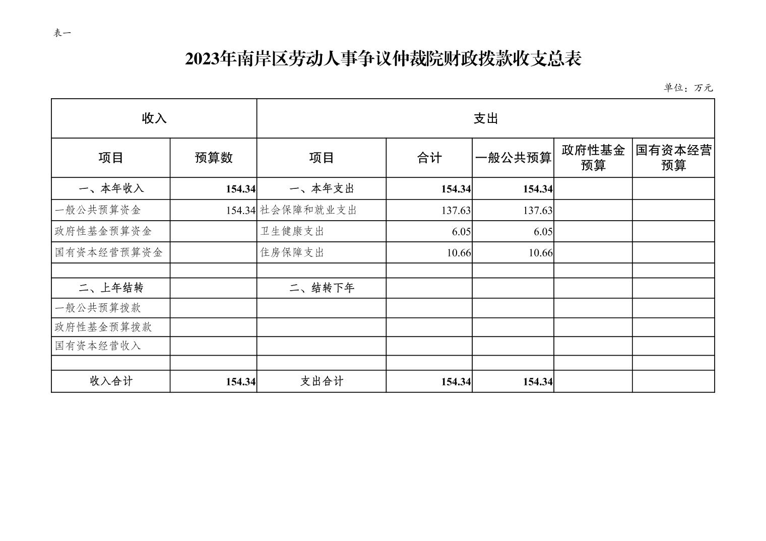 重庆市南岸区劳动人事争议仲裁院2023年单位预算公开说明