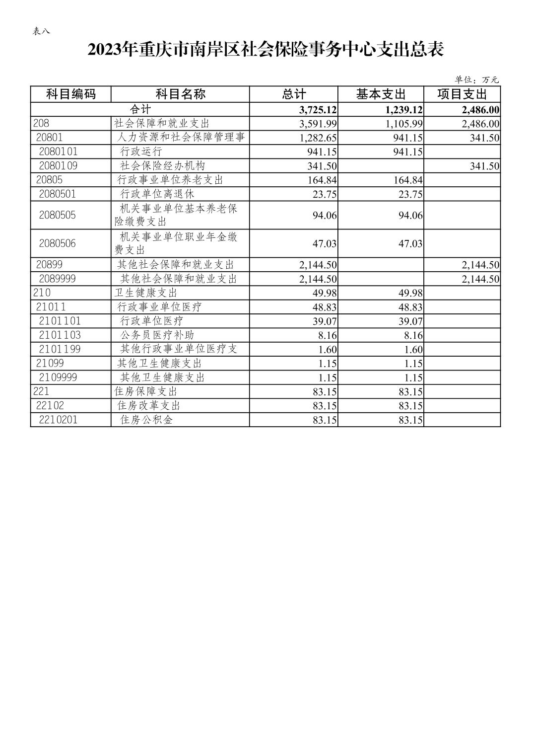 重庆市南岸区社会保险事务中心2023年单位预算公开说明