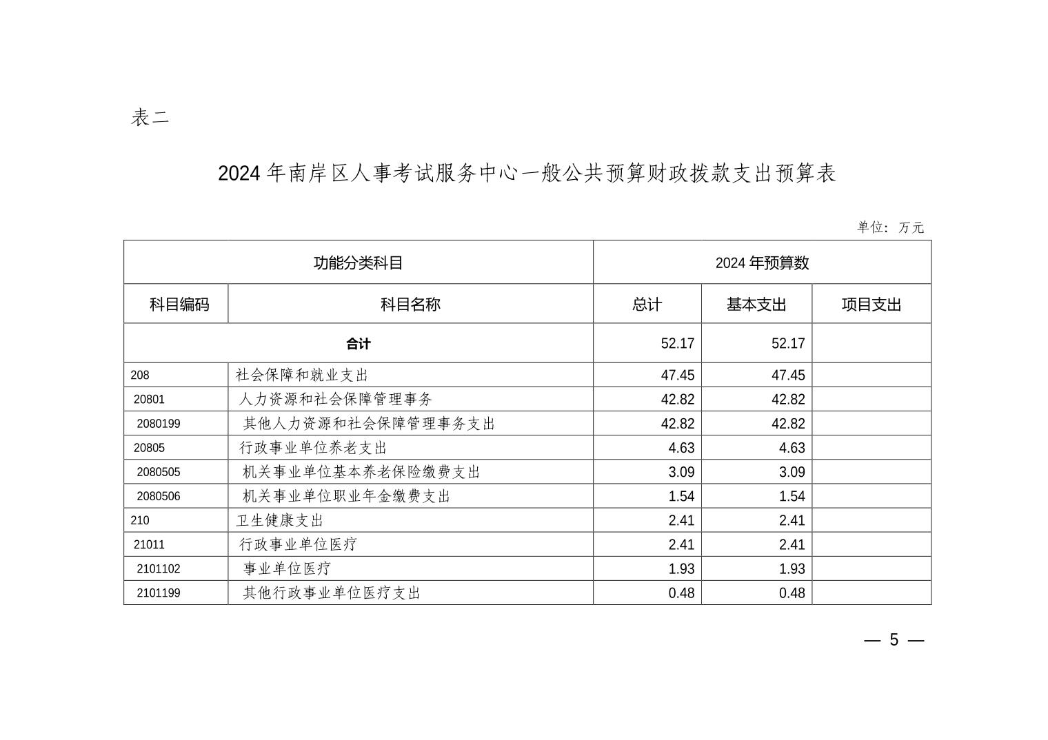重庆市南岸区人事考试服务中心2024年单位预算情况说明