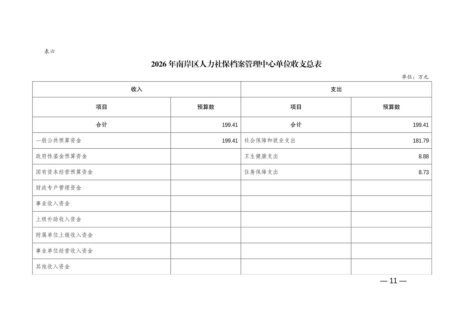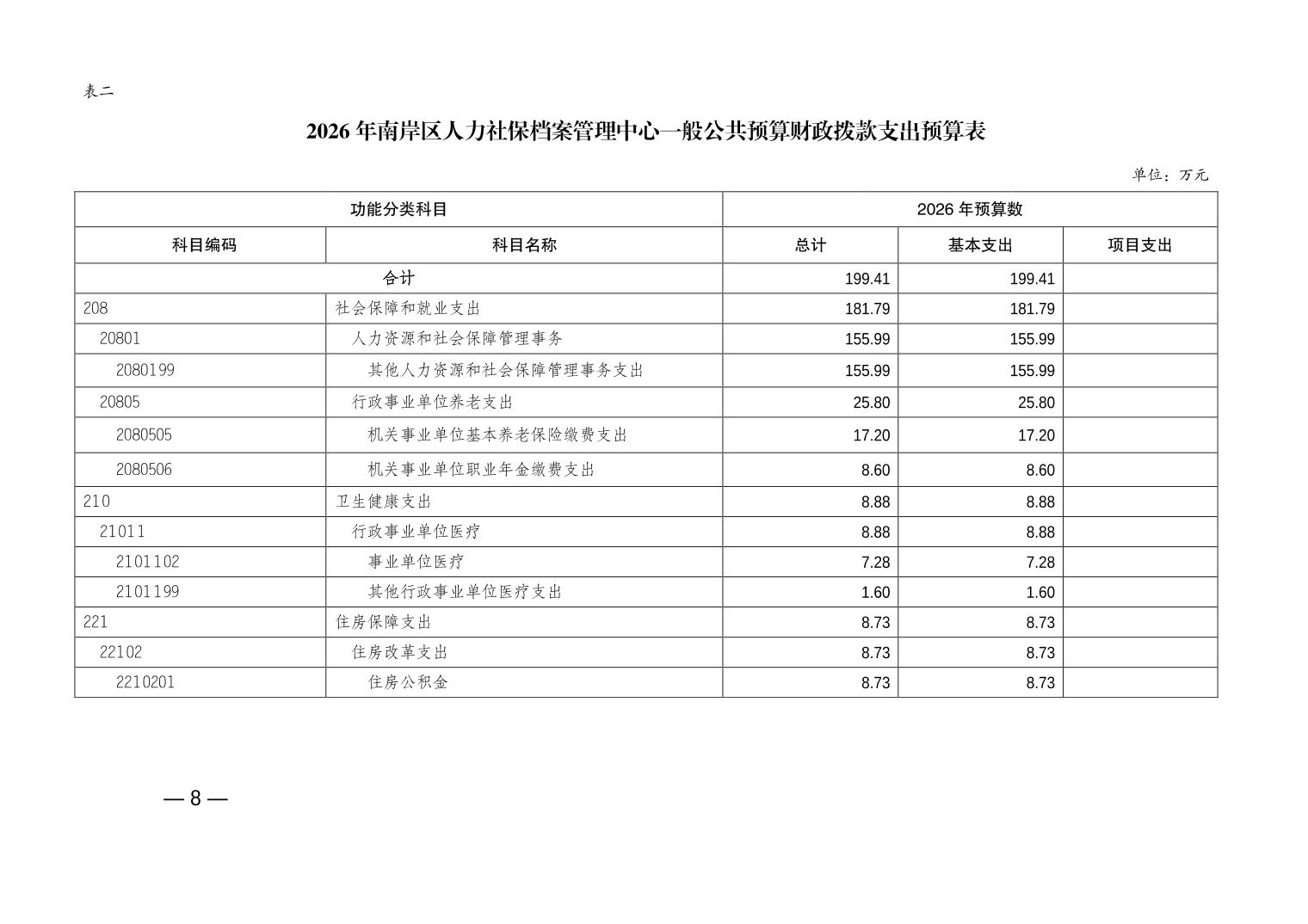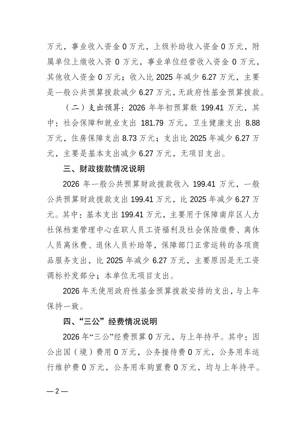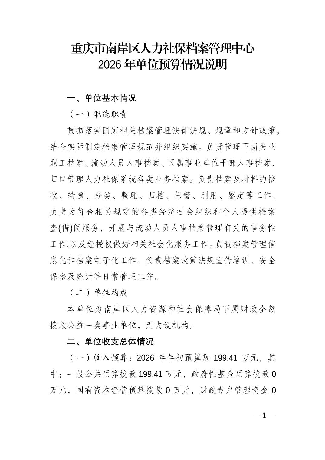 重庆市南岸区人力社保档案管理中心2026年单位预算情况说明