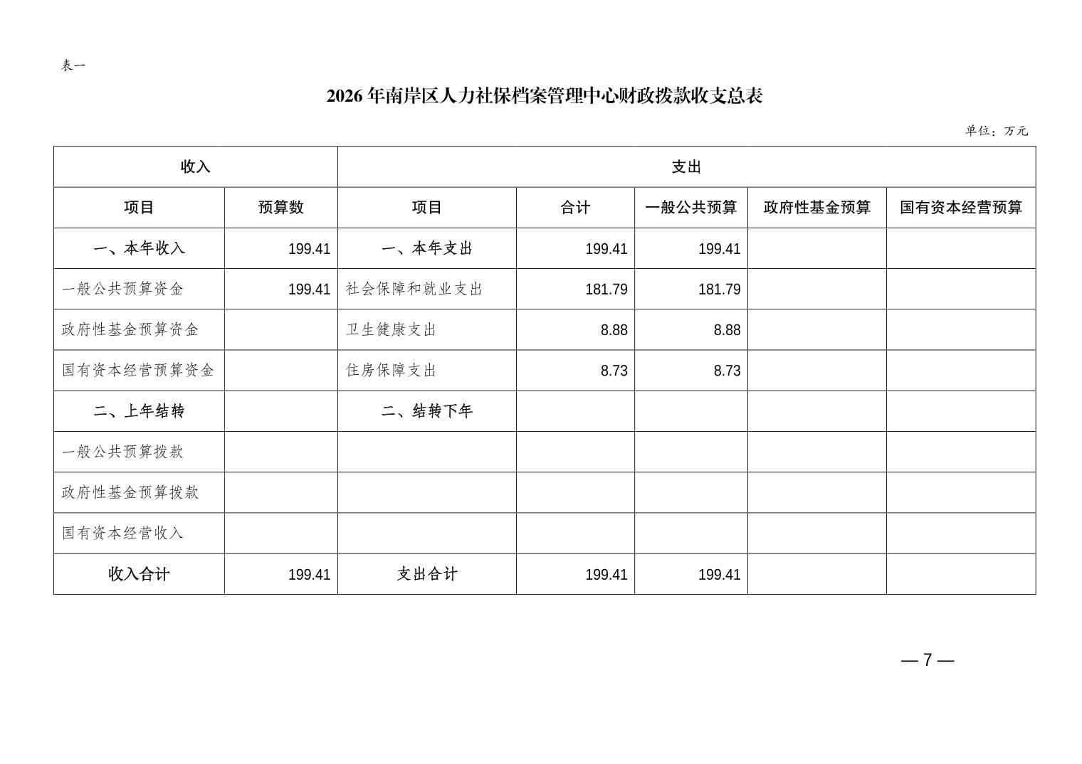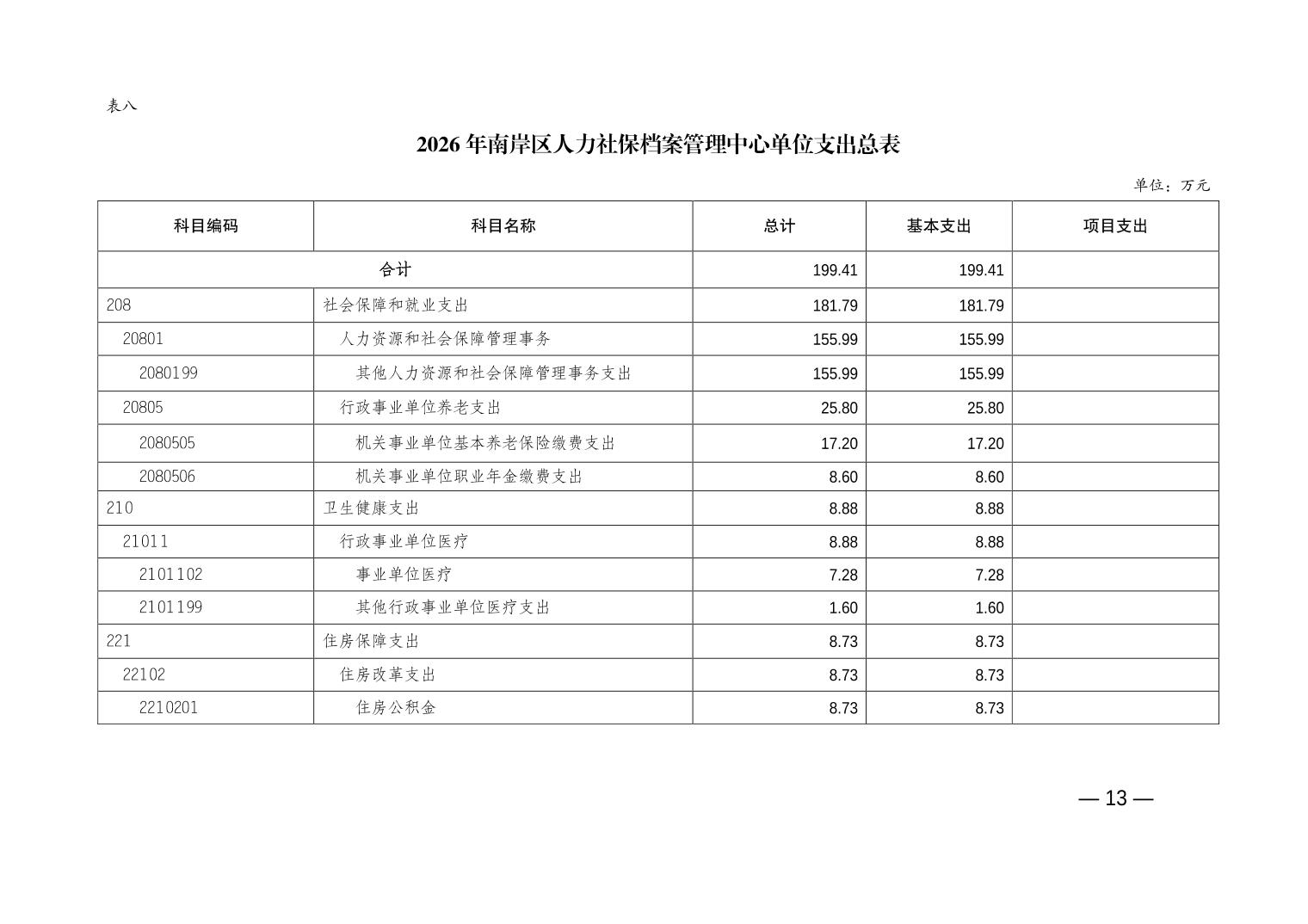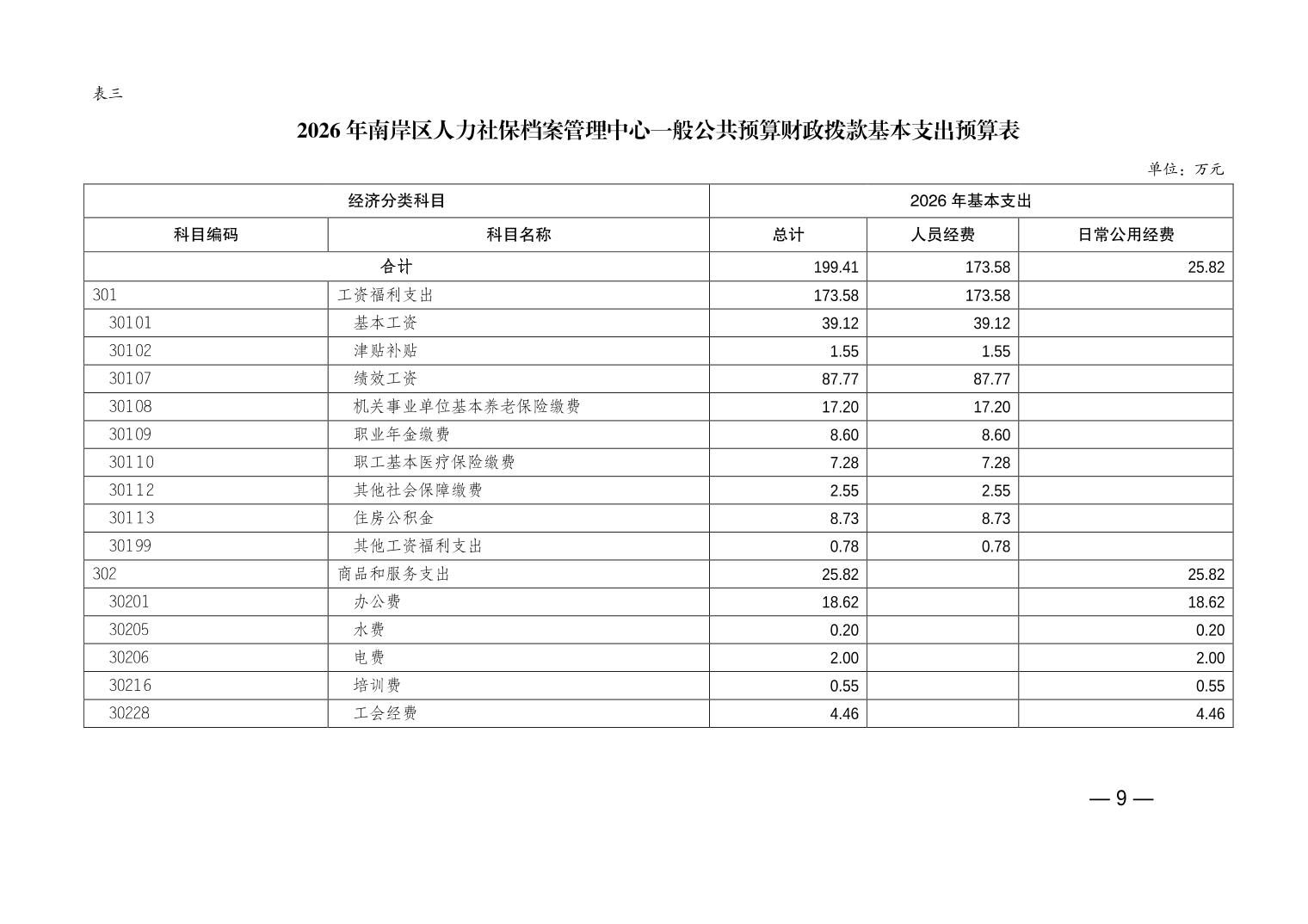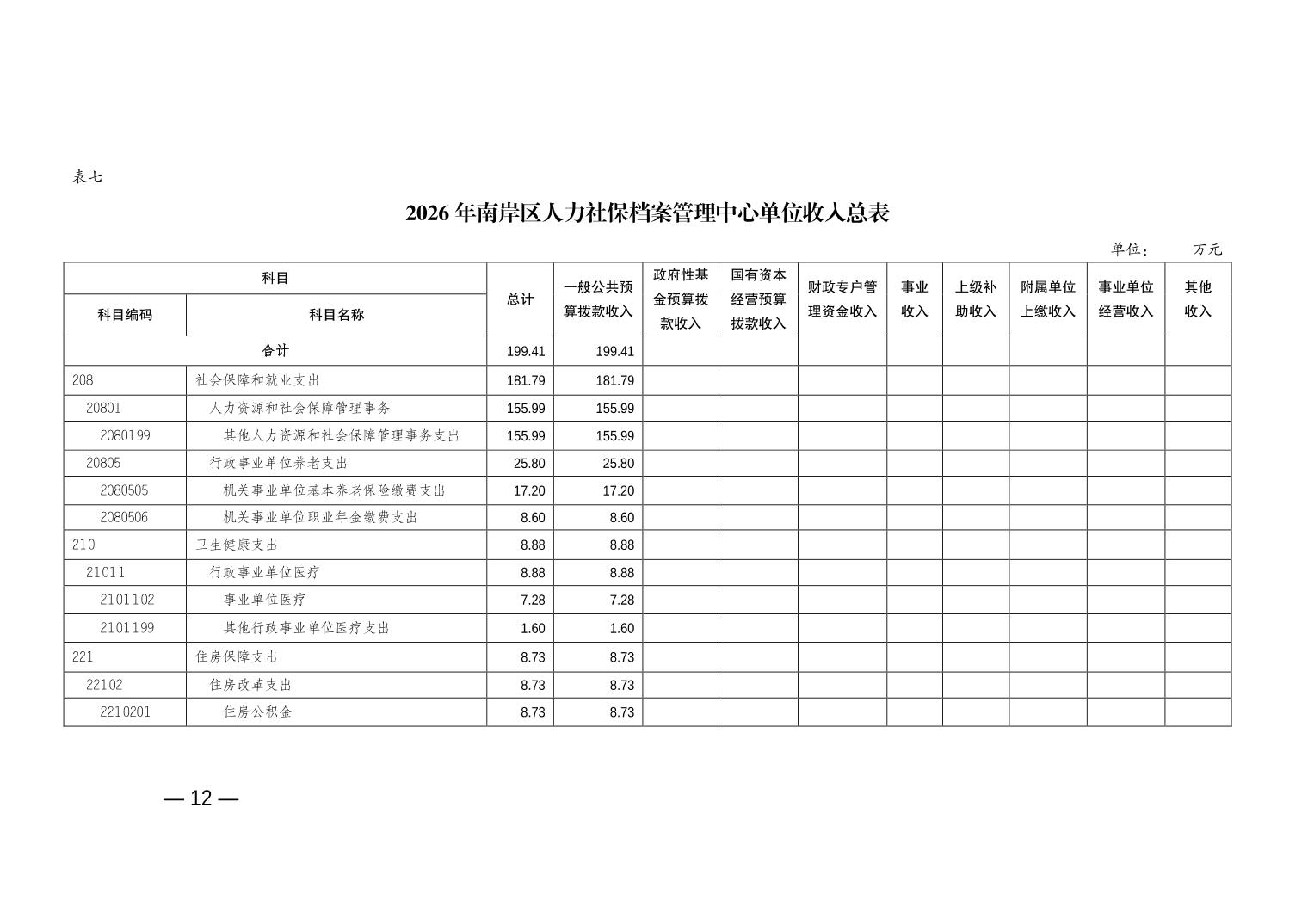 重庆市南岸区人力社保档案管理中心2026年单位预算情况说明