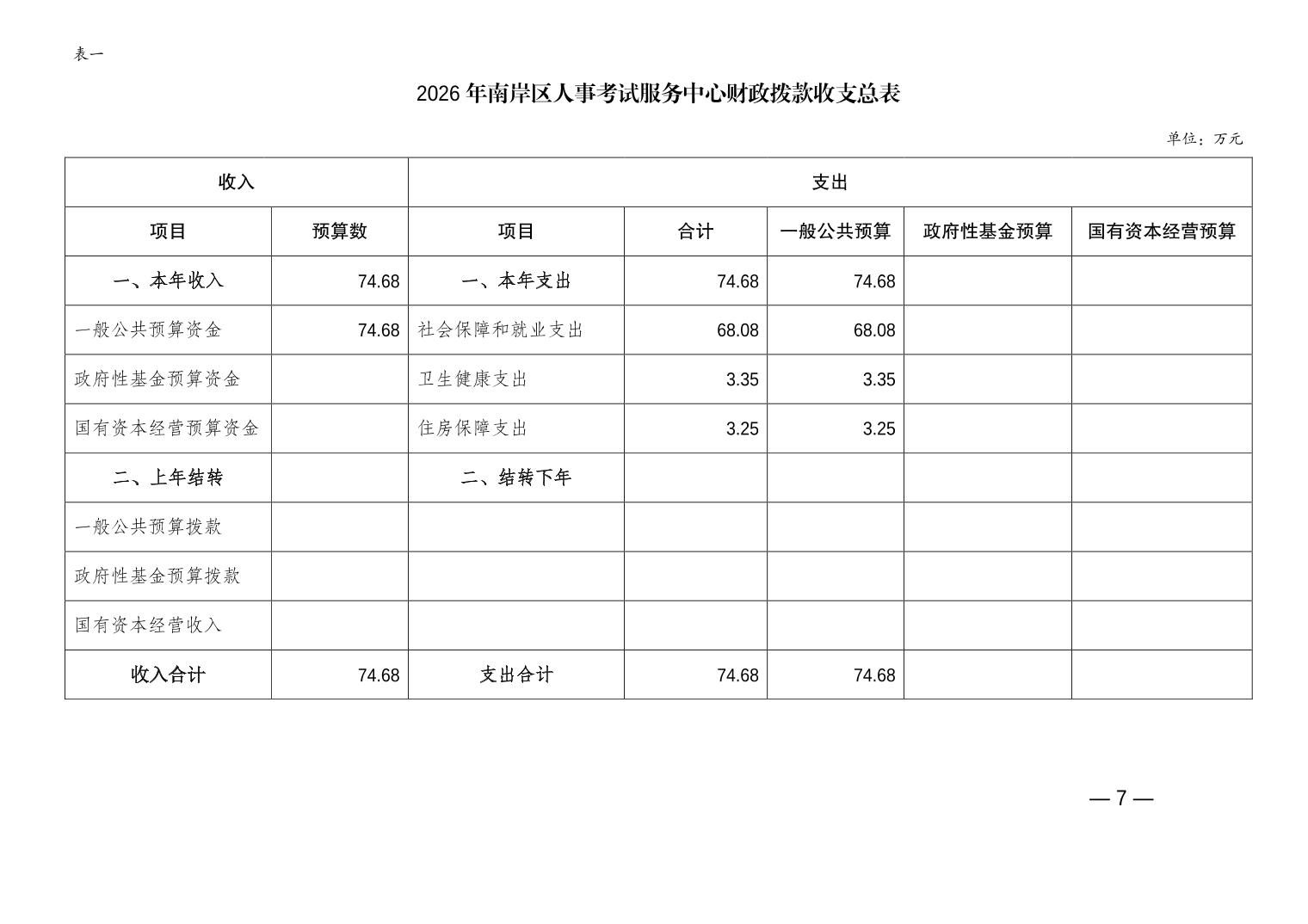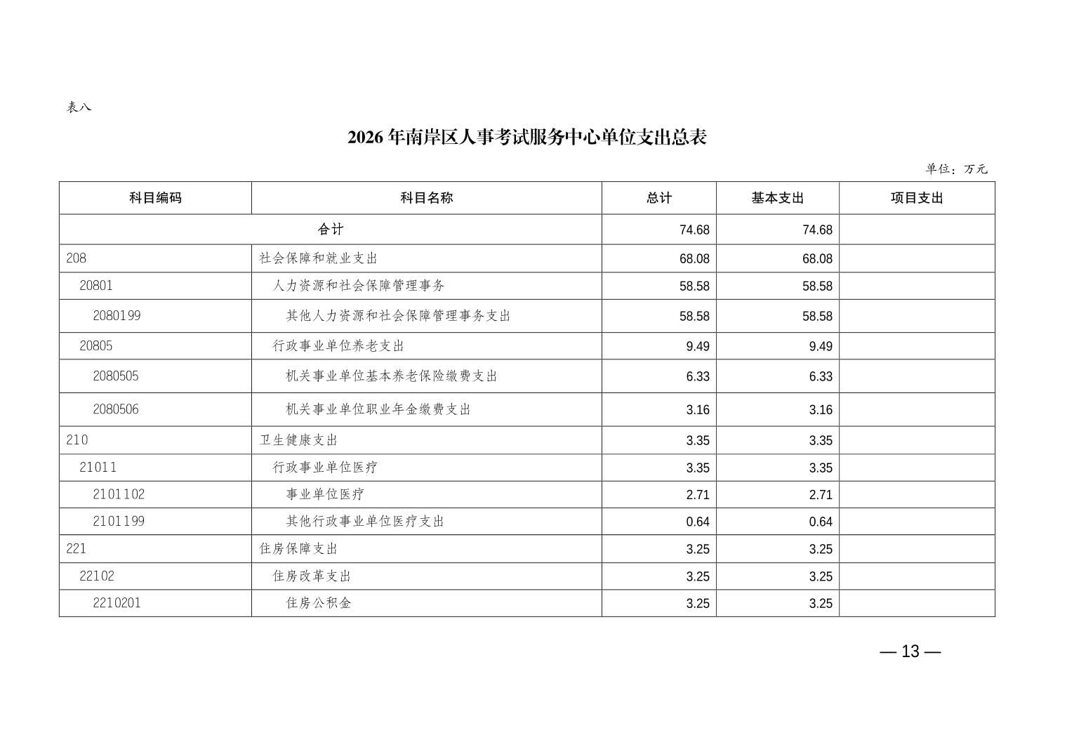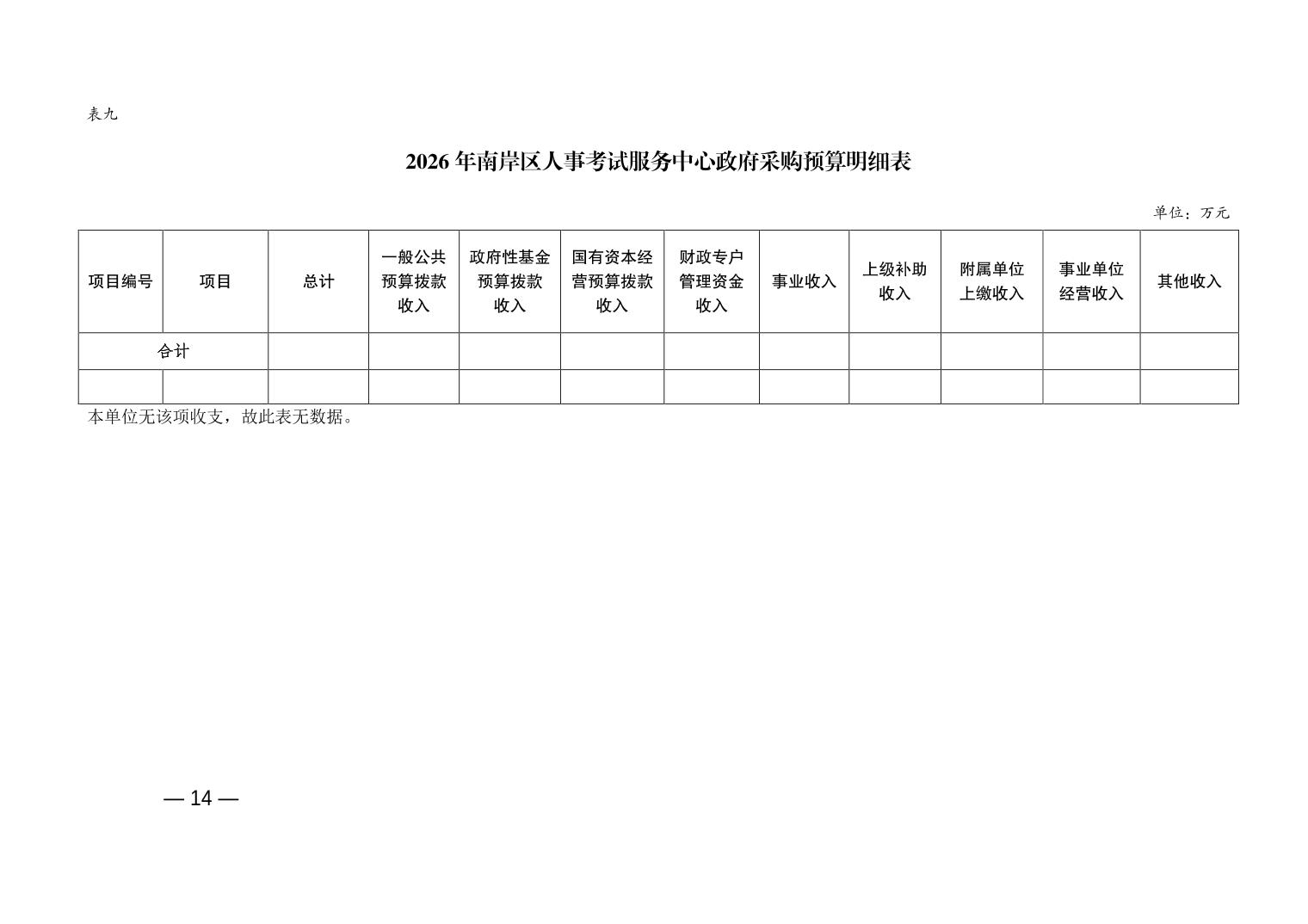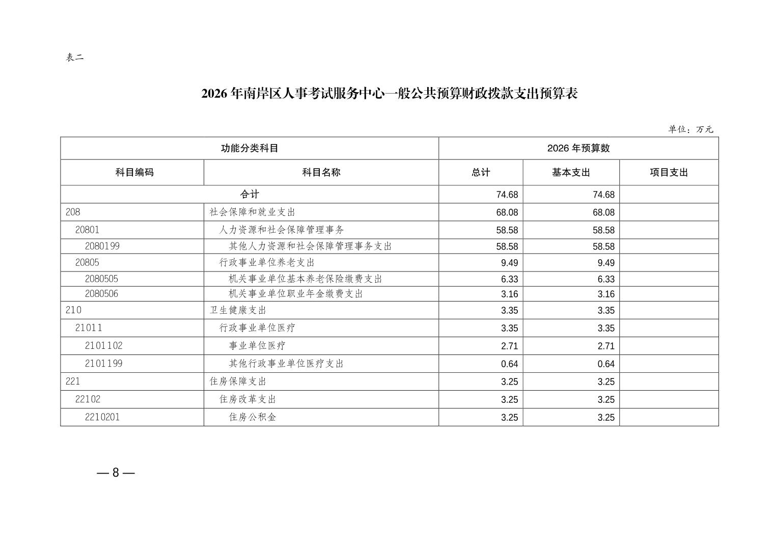 重庆市南岸区人事考试服务中心2026年单位预算情况说明